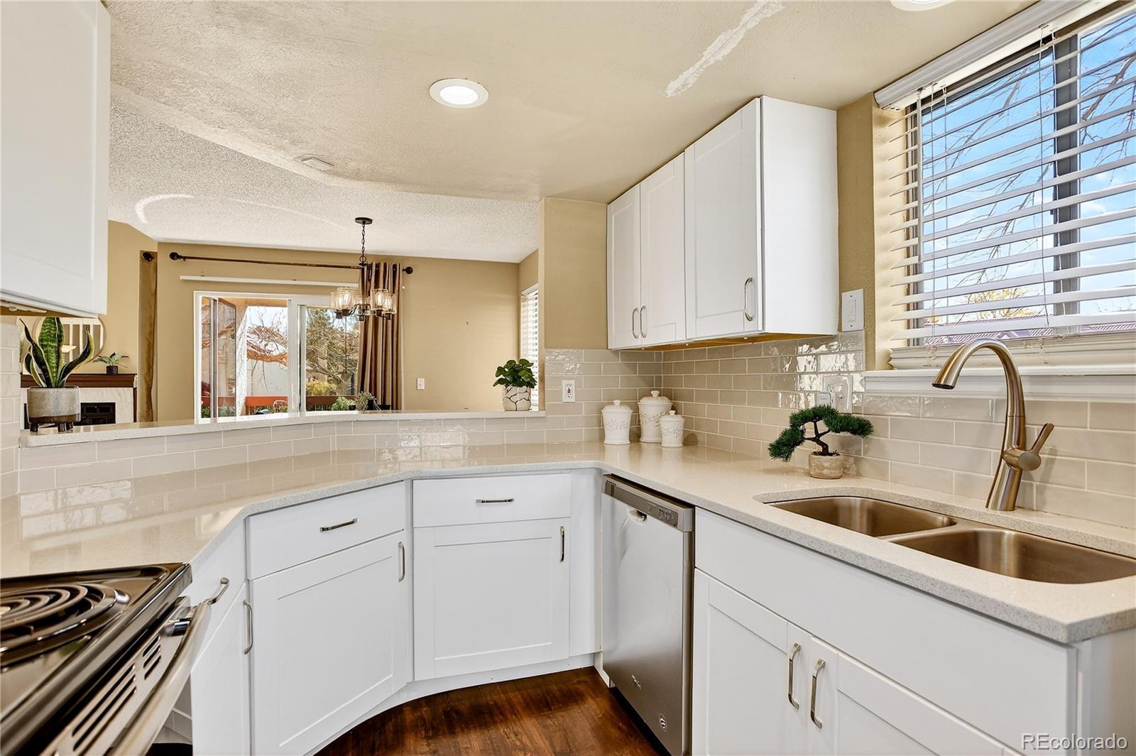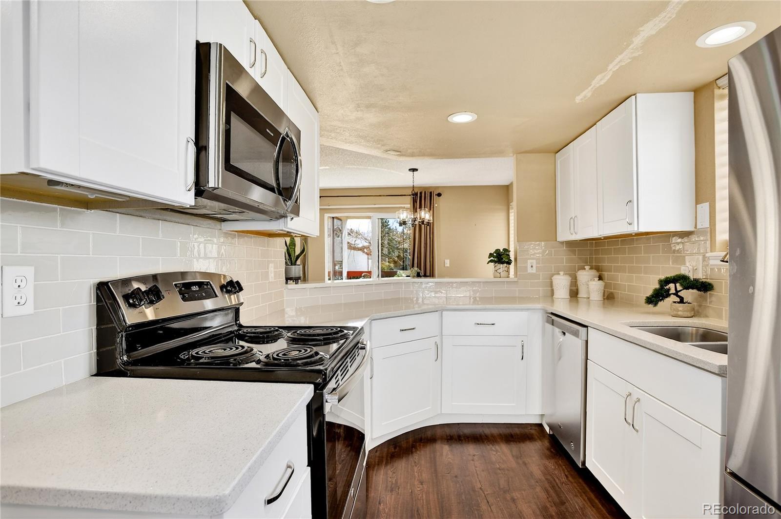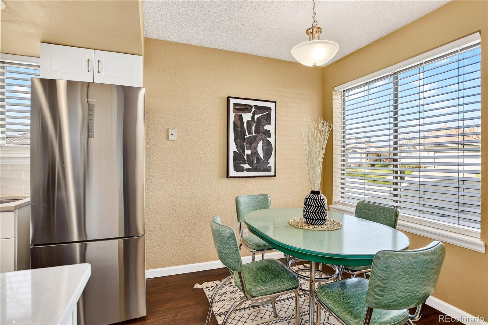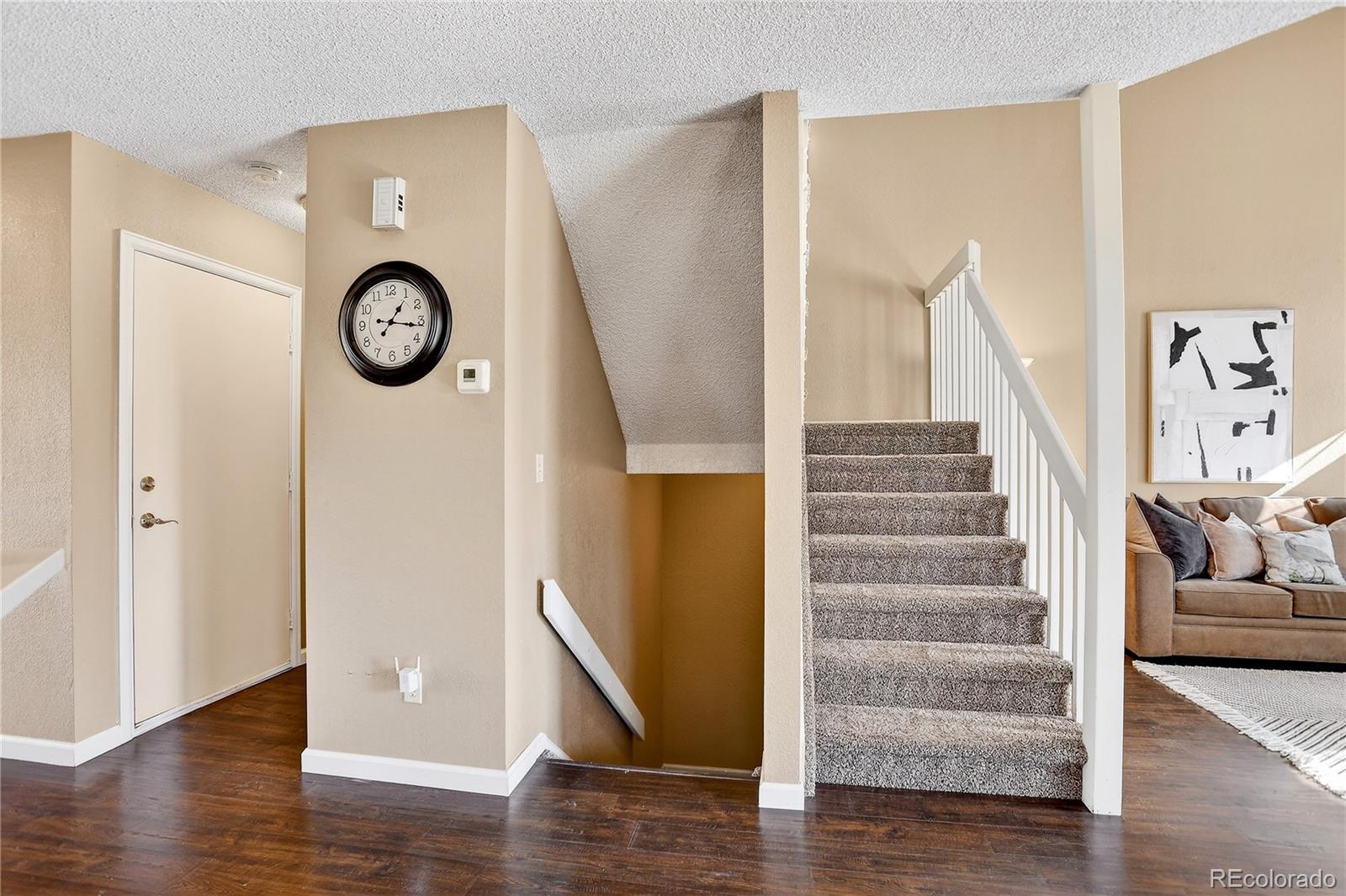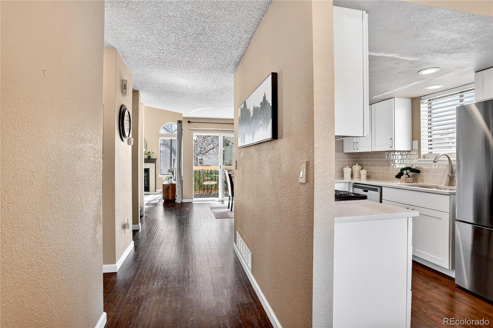 Stunning End-Unit on a Quiet Cul-de-Sac. Step into this Spanish-style, sun-soaked, townhouse that hits all the right notes for today’s buyers. Thoughtfully updated, effortlessly chic and built for an active lifestyle near outdoor adventures. Open-concept kitchen with quartz countertops and stainless-steel appliances. Vaulted ceiling in the living area for that magazine-worthy, airy feel. Wood burning fireplace adds warmth & character. Off the dining room, step out to your private deck and enjoy the Colorado sunshine. There is also a half-bath on the main level. On the upper level is the primary suite with private bath, two extra bedrooms, full hall bath and laundry area. Unfinished basement ready for your flex space, dream workshop, gym, media or storage. One car attached garage for convenience and security. Update-to-date community improvements: new roof (2024), exterior paint (2022), pool refinishing & equipment (2023), fence repairs & paint (2025) and street repaving (2025). Close to Stanley Lake, Dry Creek Trail, and Michael Northey Park, with easy access to urban amenities.
