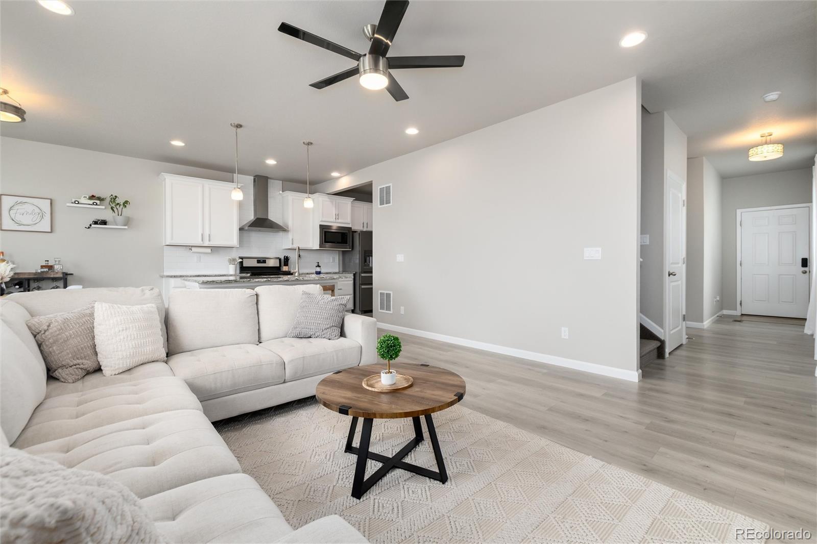 **Lives Like a Single-Family Home in Founders!** This stunning end-unit townhouse, built in 2020 and backing to open space, offers the room and feel of a single-family home with the convenience of low-maintenance living. This home features a modern open floor plan with gorgeous LVP flooring throughout the main level. The spacious living, dining, and kitchen areas flow seamlessly together, ideal for entertaining or everyday living. The kitchen is a true highlight with granite countertops, stainless steel appliances—including a gas stove/oven, and hood vent—and contemporary finishes that elevate the space. A large pantry, a mudroom off the attached 2-car garage, and a convenient powder bath add to the main level’s functionality. Step from the dining area onto the back patio, perfect for relaxing or grilling. Upstairs, you'll find a large open loft with plenty of room for a play area, media space, or home office, along with extra nooks perfect for desks or reading corners. Three generously sized bedrooms include a spacious primary suite with a walk-in closet and a private ensuite bath with a sizable shower and double sinks. The secondary bath also features dual sinks for added convenience, and most bedrooms have ceiling fans for year-round comfort. The laundry room is also conveniently located on the upper level with smart washer and dryer that are only 1 year old. The walk-out basement with an abundance of natural light features tall ceilings and is ready for your finishing touches—whether it's more living space, a home gym, or a guest suite. Enjoy the additional lower patio and serene views of open space beyond. Additional features: tankless water heater, smart lock, smart doorbell. With all landscaping maintenance handled by the HOA, you can enjoy more time doing what you love. Don’t miss this beautiful blend of style, space, and easy living in Castle Rock!