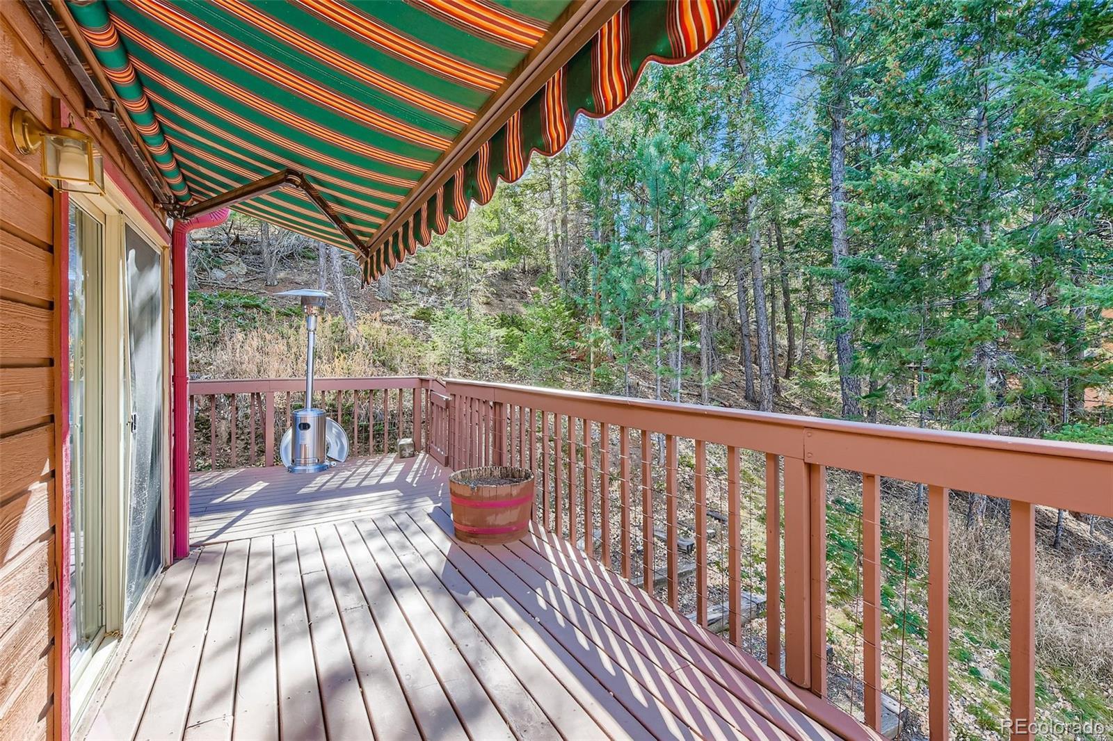 Make this gorgeous mountain home yours! Enjoy the serene peacefulness of country living and the convenience of easy access to everything you need! Just 6 minutes to quaint Evergreen with restaurants, shopping, & trails enroute. 8 min to Bergen Park. Easy access to schools. Hop on I-70 to go ski, camp, or hike; or to Denver for work or play. World-famous Red Rocks Amphitheatre is just 18 minutes away! Visit nearby Evergreen Lake to fish, hike or jog around, or ice skate in the winter! Elk Meadow is just across the road for hiking/biking. There is no traffic on Bronco Rd. Like horses? Lucky you! Aptly named Bronco Rd is home to the Evergreen Rodeo grounds. Indoors: the vaulted ceilings and open floor plan feel grand and lofty, and yet the home is cozy with 2 FPs! Enjoy meal prep on expansive granite countertops and serve it up to family and friends in the inviting dining room. Doing the dishes is more fun when you can watch chippies and birds and other wildlife just outside the window. The wrap-around deck provides that "indoor-outdoor" lifestyle that Colorado is famous for. There are 3 bedrooms and 2 full bathrooms, plus laundry on the main level. The primary suite has brand new carpet, an attached full bath, & a sliding door for private access to the secluded hot tub area. With no neighbors and a sloped, wooded hillside on undeveloped land behind, the privacy and serenity of this home is unsurpassed! Downstairs there's much more to love... A large den with the second stone fireplace, many windows and a separate entry door make this level almost feel like a downstairs apartment. There's a fourth bedroom, 3/4 bathroom and a cool flex space that could work as a craft room, home office, music studio, game space, yoga room, workout space and so much more. Carpet and paint downstairs was new in 2024. The attached one-car garage is handy for winter parking, and the outdoor shed gives the extra storage everyone needs! Hurry! This one won't last!
