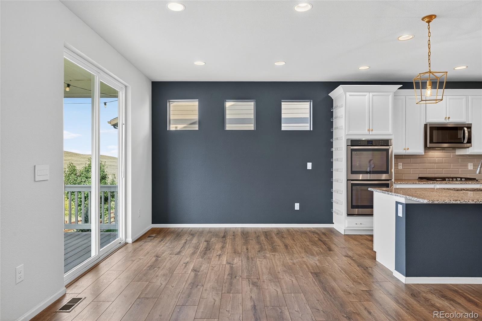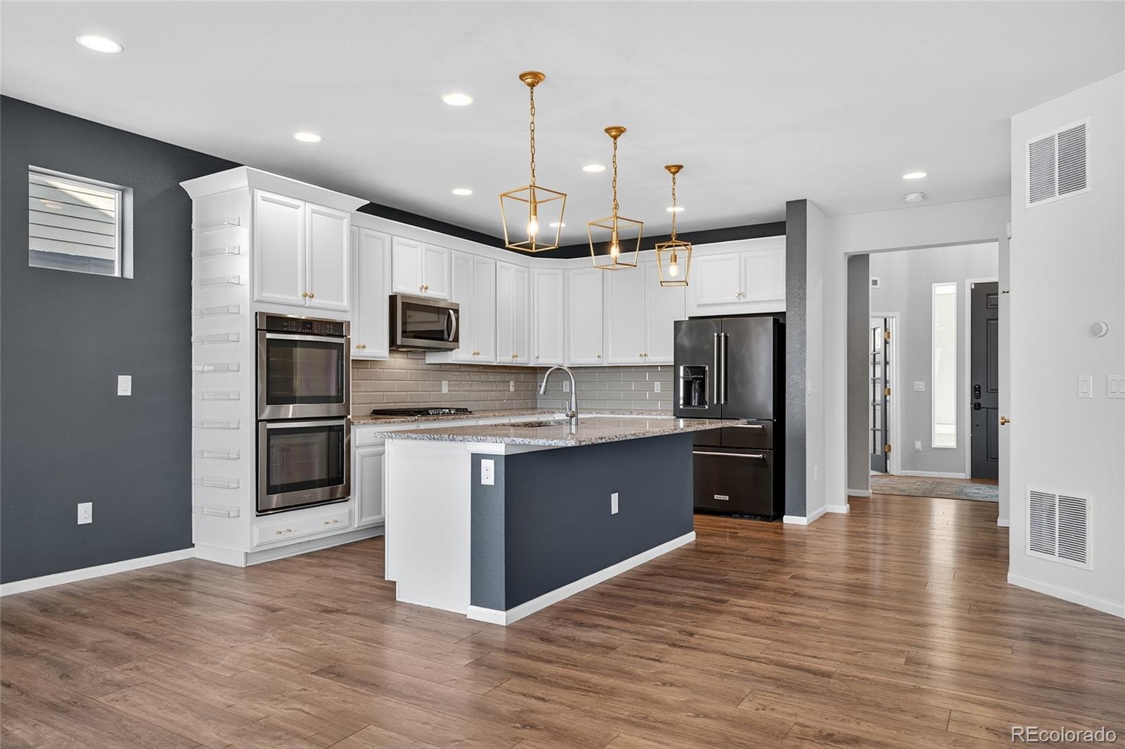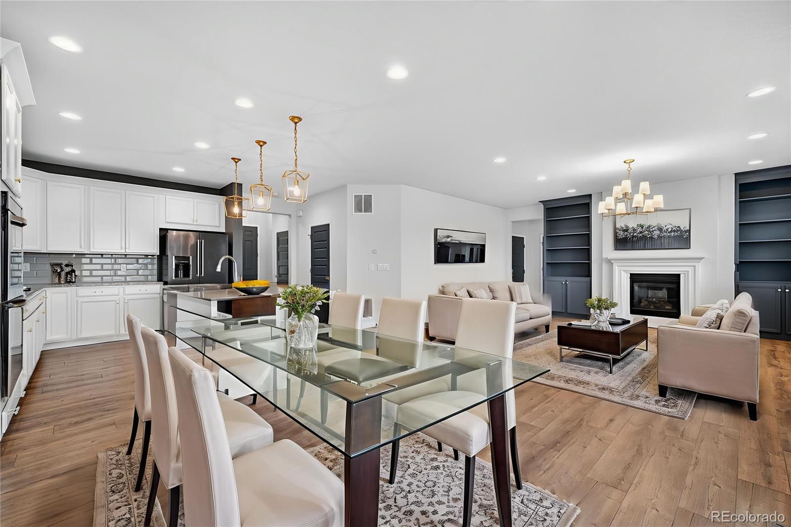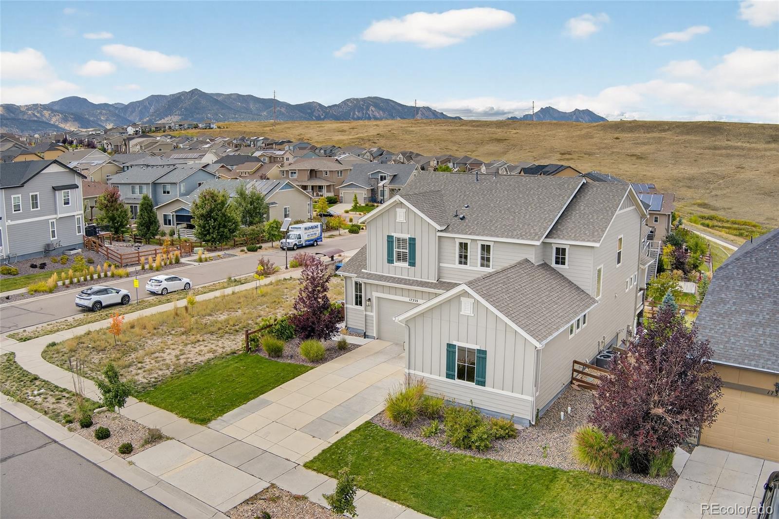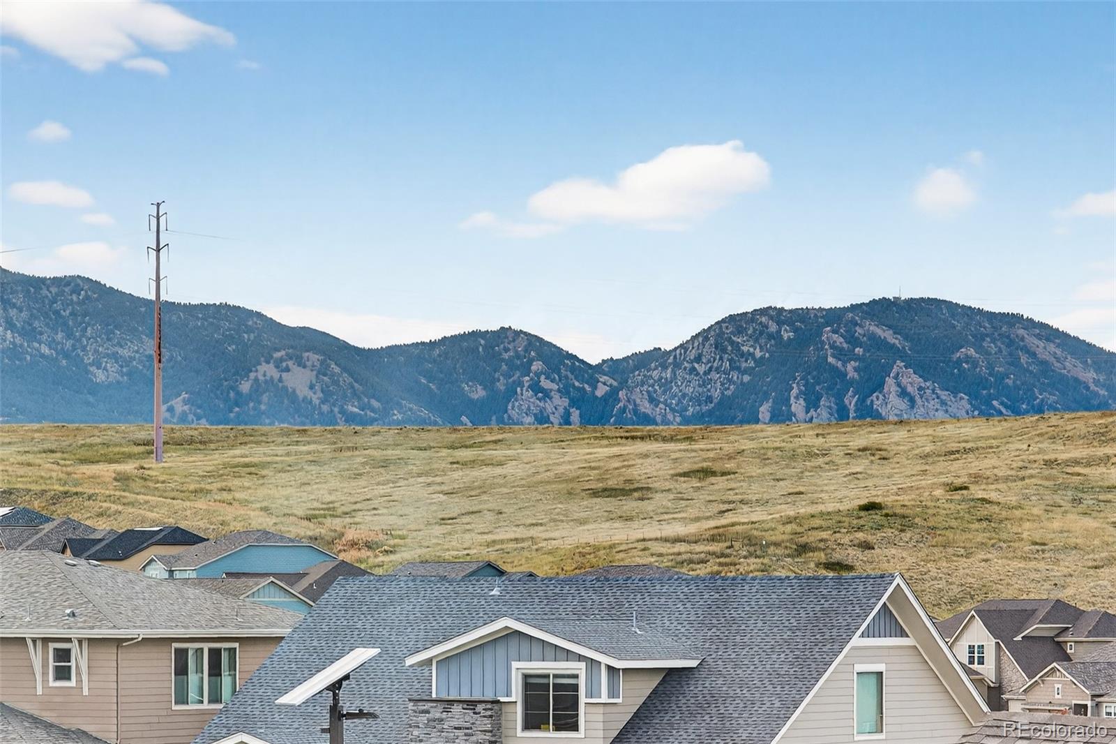 Gorgeous Candelas gem situated on a desirable corner lot backing to open space, offering striking views of the foothills and Boulder Flatirons. Beautiful landscaping sets the tone with impressive curb appeal, welcoming you into a thoughtfully designed home. The main level showcases a grand open layout with a seamless flow between the living room, dining area, and chef’s kitchen. Enhanced with durable LVP flooring and a fresh gray and white color palette, the space is filled with bright natural light streaming through oversized windows. The chef’s kitchen boasts an abundance of 42" white cabinets with crown molding, a large eat-in island, and high-end stainless steel appliances. The dining area opens to an upper deck where you can enjoy unobstructed views of the open space and trails. A dedicated home office with built-ins and a mudroom with bench and storage off the garage add convenience to daily living. Upstairs, you’ll find three generously sized bedrooms, a versatile loft, and a luxurious primary retreat complete with a large walk-in closet and spa-inspired bath featuring an impressive walk-in shower. An upper-level laundry room makes chores effortless. The finished basement expands the living space with a large family room, a wet bar perfect for entertaining, and an additional bedroom and bath. The three-car garage with professional floor coating adds both functionality and style. This home is filled with thoughtful upgrades, including Hunter Douglas shutters throughout, new fixtures, backyard leveling with functional improvements, sump pump, dual AC units, a new tankless hot water heater, humidifier, and more. The Candelas community is known for its active lifestyle amenities with two recreation centers, pools, gyms, playgrounds, parks, and miles of hiking and biking trails. With easy access to both Boulder and downtown Denver, this home blends modern comfort with unmatched location. Welcome home!