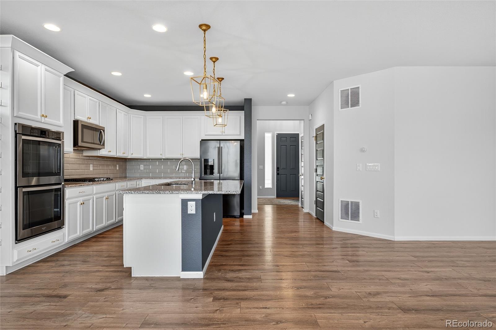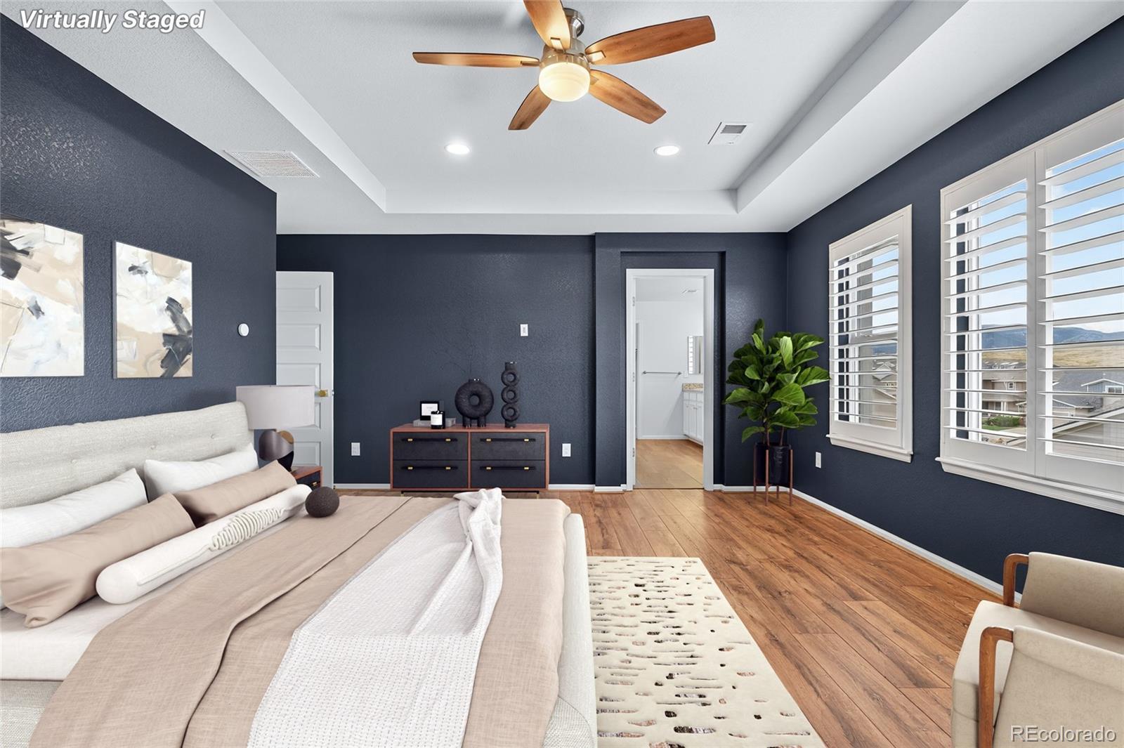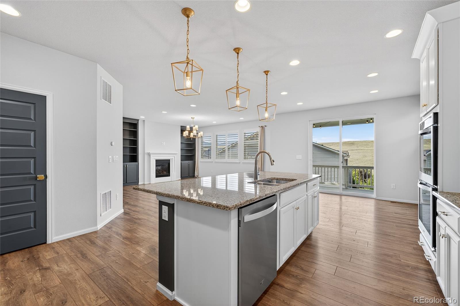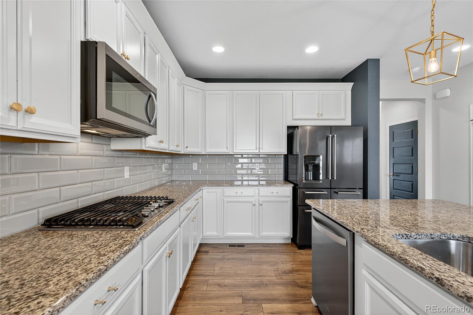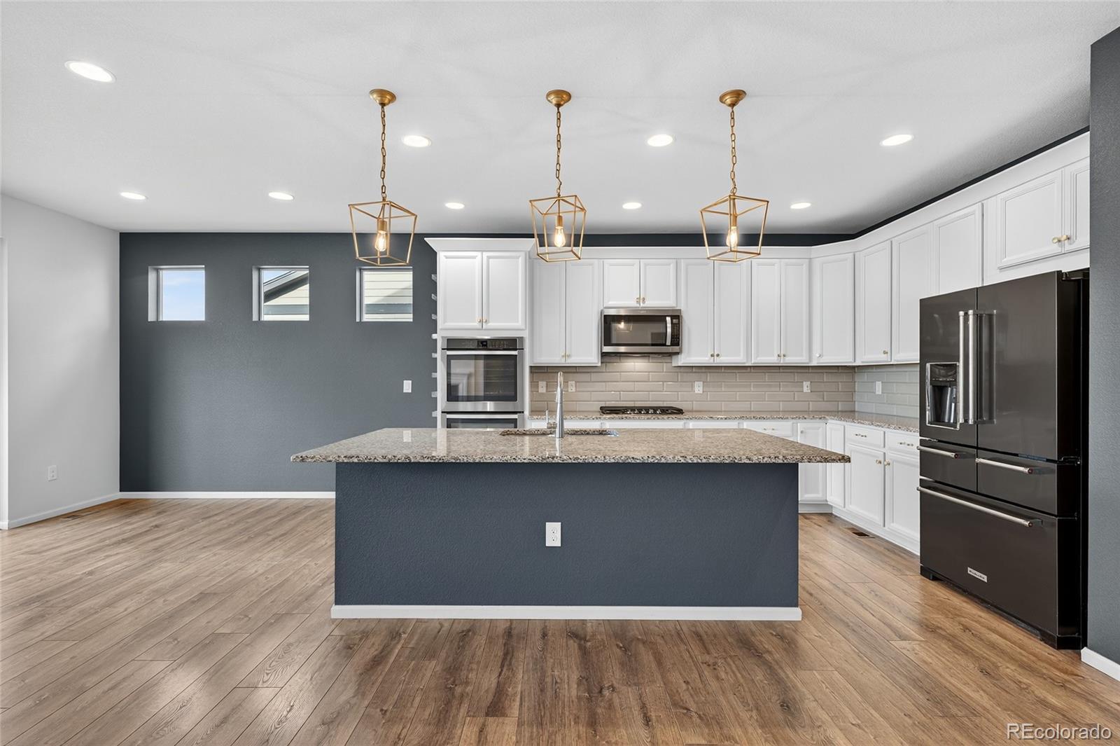 Gorgeous Candelas gem situated on a desirable corner lot backing to open space, offering striking views of the foothills and Boulder Flatirons. Beautiful landscaping sets the tone with impressive curb appeal, welcoming you into a thoughtfully designed home. The main level showcases a grand open layout with a seamless flow between the living room, dining area, and chef’s kitchen. Enhanced with durable LVP flooring and a fresh gray and white color palette, the space is filled with bright natural light streaming through oversized windows. The chef’s kitchen boasts an abundance of 42" white cabinets with crown molding, a large eat-in island, and high-end stainless steel appliances. The dining area opens to an upper deck where you can enjoy unobstructed views of the open space and trails. A dedicated home office with built-ins and a mudroom with bench and storage off the garage add convenience to daily living. Upstairs, you’ll find three generously sized bedrooms, a versatile loft, and a luxurious primary retreat complete with a large walk-in closet and spa-inspired bath featuring an impressive walk-in shower. An upper-level laundry room makes chores effortless. The finished basement expands the living space with a large family room, a wet bar perfect for entertaining, and an additional bedroom and bath. The three-car garage with professional floor coating adds both functionality and style. This home is filled with thoughtful upgrades, including Hunter Douglas shutters throughout, new fixtures, backyard leveling with functional improvements, sump pump, dual AC units, a new tankless hot water heater, humidifier, and more. The Candelas community is known for its active lifestyle amenities with two recreation centers, pools, gyms, playgrounds, parks, and miles of hiking and biking trails. With easy access to both Boulder and downtown Denver, this home blends modern comfort with unmatched location. Welcome home!