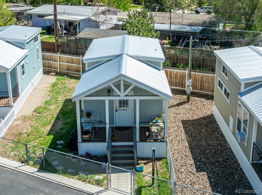 Welcome to this gorgeous 1-bed, 1-bath Tiny home in Colorado Springs Estates! This home is full of thoughtful touches and modern updates. Enter onto the inviting covered front porch, perfect for sipping coffee or enjoying your favorite book and enjoying the breathtaking views of Pikes Peak. Inside, you’ll love the vaulted ceilings, rich flooring, and bright windows that flood the space with natural light. The kitchen is fully equipped with upgraded cabinetry, full-size appliances, and sleek countertops. A spacious loft adds flexible living or sleeping space, and the bedroom is cozy yet functional, with built-ins for storage. The bathroom features a full walk-in shower with dual seats and updated vanity, while a stacked washer/dryer offers convenience without sacrificing space. This home is move-in ready and divinely located just a short distance to Garden of the Gods, Manitou Springs and Cave of the Winds Mountain Park. Plus there is shopping, dining and parks very close and quick access to I-25.