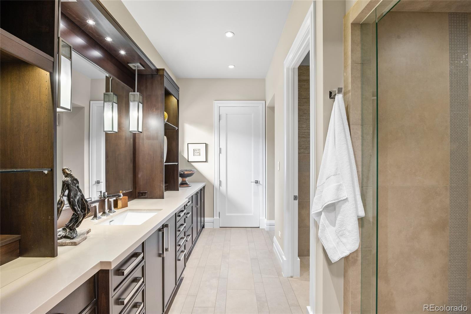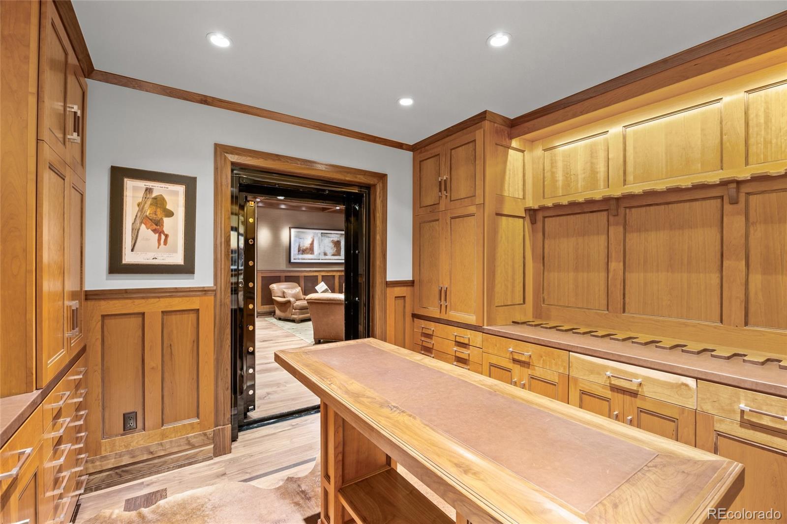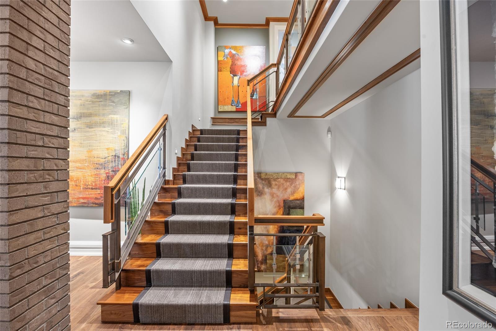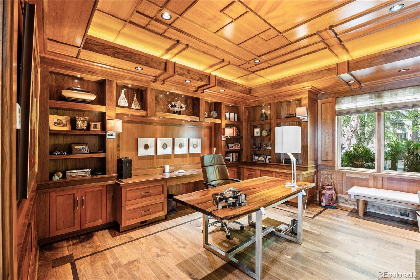 Nestled on a quiet, tree-lined street in the heart of Belcaro, 825 South Adams is a rare architectural masterpiece. Custom built by KZ Smith Construction and designed by renowned architect R.Lubischer as an estate of enduring quality and sophistication. Spanning nearly 10,000 sq feet of exquisitely finished living space, across three well composed levels, this stunning residence blends timeless design with contemporary details in one of Denver’s most coveted communities. A breathtaking foyer reveals 14 foot ceilings and interiors defined by European walnut wood floors embellished with African Wenge inlays, 5 handcrafted masonry fireplaces and custom built William Ohs cabinetry throughout. At the center, a bespoke, chef worthy kitchen with one of a kind details including a stunning, built-in walnut table, imported from Finland. Expertly designed for both grand entertaining and intimate everyday living, the main level includes both formal and informal dining areas and a richly appointed study with extensive custom millwork. The spectacular primary suite features dual en-suite bathrooms, private dressing rooms and expansive walk-in shower. The upper level features two generously sized bedroom suites with walk-in closets and private en-suite bathrooms. The lower level offers exceptional entertaining spaces: a fireside living area, billiards room, fully appointed bar, and floor-to-ceiling windows that frame a striking Japanese maple. A stately leather-wrapped lounge leads to a secured safe room-currently designed for the firearm enthusiast but easily convertible into a world-class wine cellar. Private, meticulously curated grounds create an outdoor oasis with multiple patios and lush gardens, featured in recent magazine publications. Just minutes from the boutiques and restaurants of Cherry Creek, while also quietly removed within the elegance of Belcaro, this property is a rare and timeless offering for those who value elegance, privacy, and enduring craftsmanship.