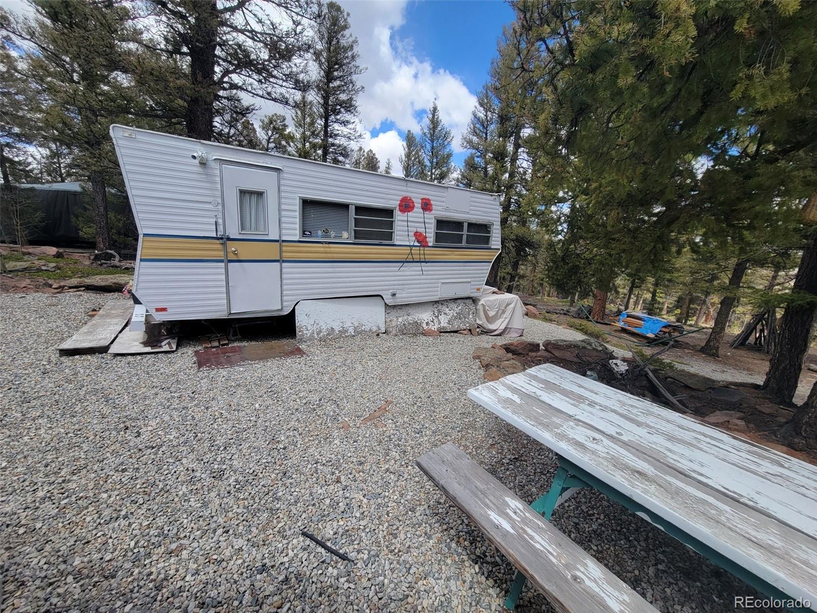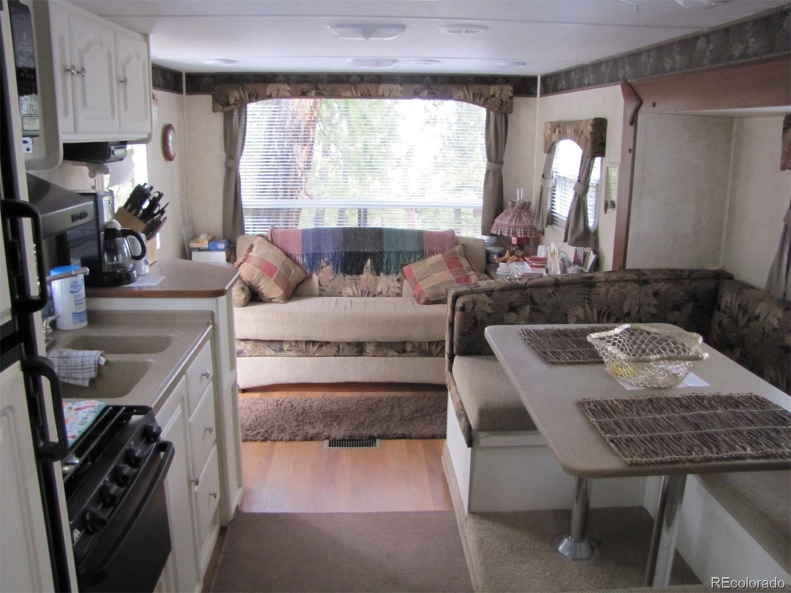 Hard to find lot that backs to open space area with amazing views in Campground of the Rockies. Gated community in the heart of Colorado. Indoor seasonal heated pool, private fishing lake, tennis/pickleball courts, archery range, volleyball, community center with laundry and shower facilities. No need to try to find a campsite all summer. Leave your RV's here all year. Property features aspen and pine trees, views and privacy. Sale includes an adorable vintage camper that has been remodeled plus a 2007 trail. Beautifully landscaped lot with firepit. Priced to sell at $68,000!!!!