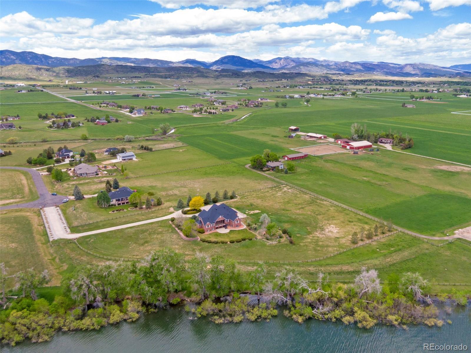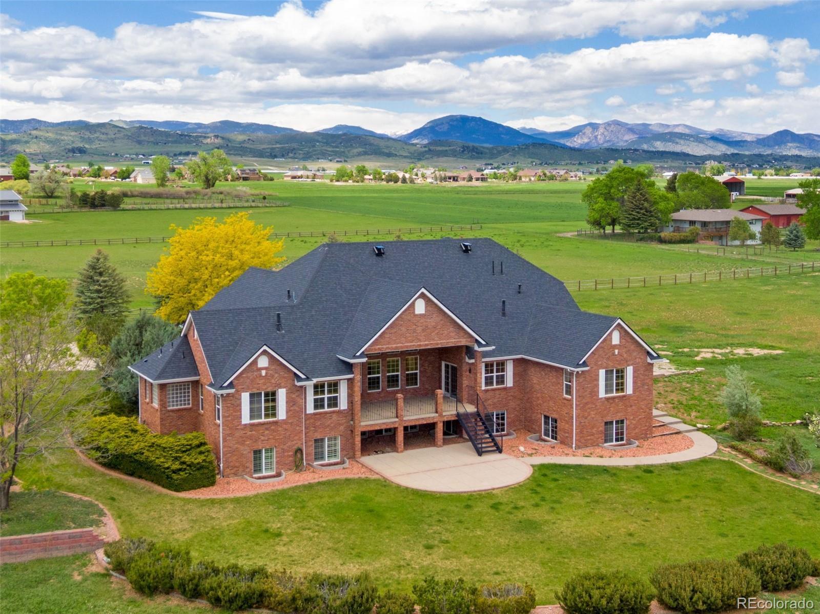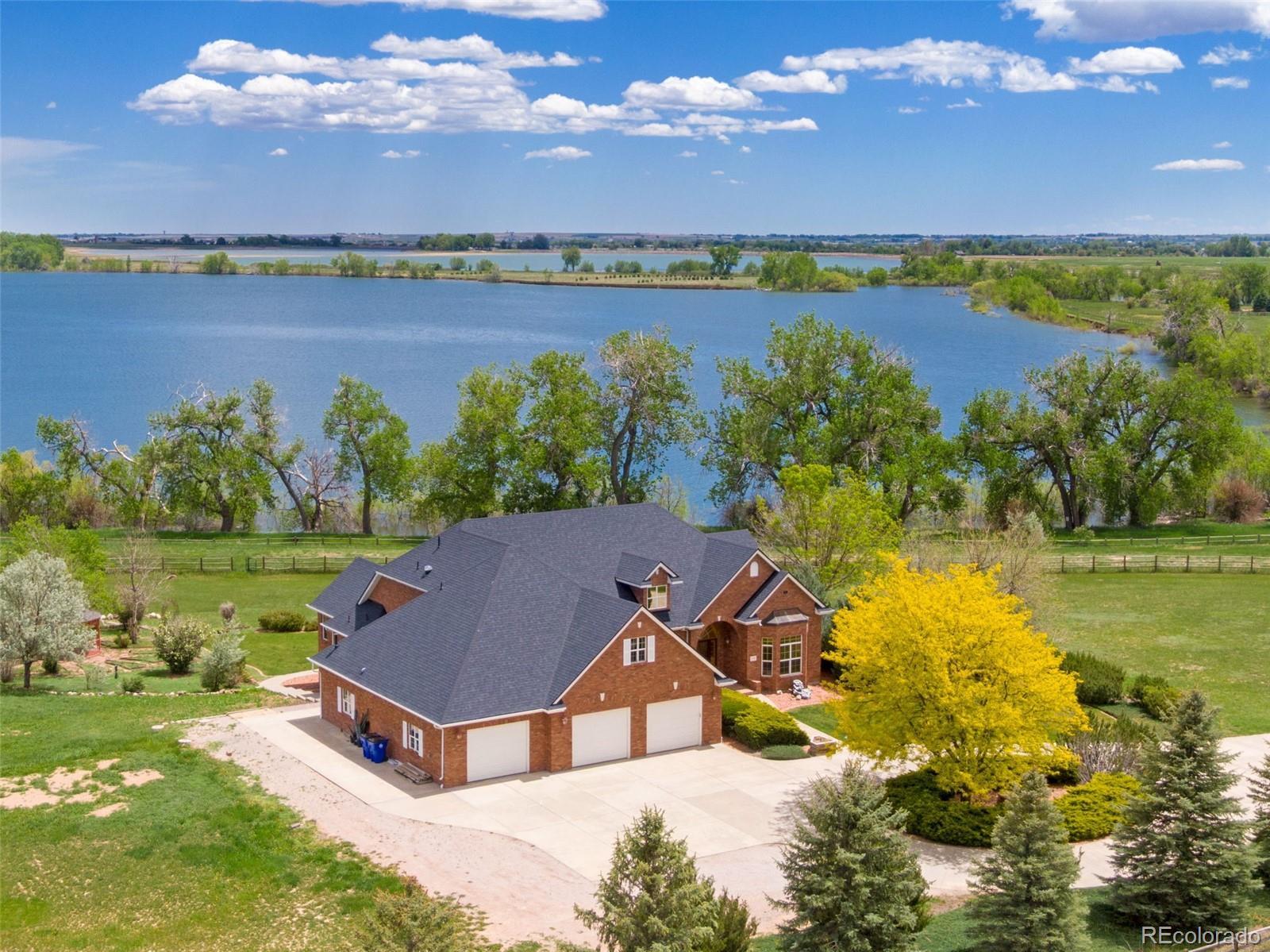 A True Equestrian Waterfront Estate in Paradise Valley. Set on a 4.25 ac. lot w/2 primary suites on main living level, 2 additional bedrooms in Garden level basement in this 7,000+ sq ft. brick ranch w/ garden level basement. Offers a beautiful setting to enjoy Rocky Mountains sunsets t& stunning lakefront sunrises. This is a unique private lot, that allows horses/lg. animals & the opportunity to join Lonetree Lake Club at Heron Lakes TPC golf community. Whether you're enjoying the tranquility, open space, future opportunity for an equestrian barn, a day on the water, fishing, boating or teeing off at TPC Colorado Championship Golf Course just across the lake, this estate offers an unparalleled opportunity to enjoy everything that northern colorado offers in close proximity. The balance of elegance, space, and outdoor adventures. The home is designed w/ both grandeur & functionality in mind, the main floor living home features soaring ceilings, wood floors, premium custom woodworking & 3 fireplaces. The gourmet kitchen boasts high-end appliances, spacious island, walk-in pantry & butlers pantry to the formal dining room. Ideal for entertaining. The primary suite serves as a true retreat w/cozy gas fireplace, sitting area, cedar-finished walk-in closet, & five-piece bath w/ luxurious finishes. Additional highlights include a private office w/ custom built-in shelves, trim & paneling. Plus a custom inlaid compass design on floor. The functionally finished garden-level basement w/ high ceilings offers 2 bedrooms, family room & ample space for future expansion. Oversized heated 4-car garage w/ 220V power and above garage loft is perfect for hobbyists or those needing extra workspace. With close proximity to the TPC Heron Lakes golf course, (yearly stop for the Korn Ferry Tournaments), local dining, shopping, festivals, entertainment, & wonderful school districts. This is not in a Metro Tax District.
