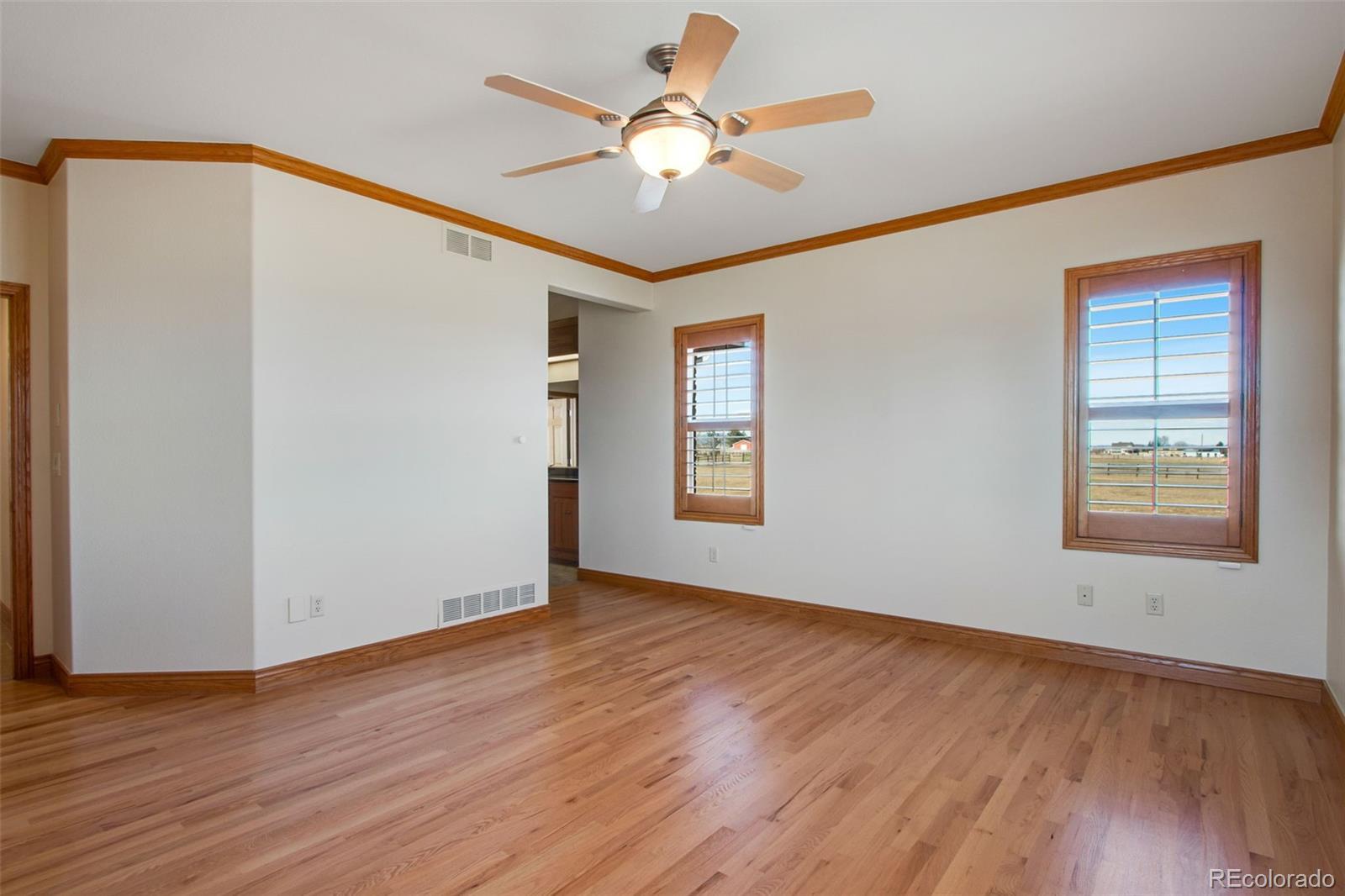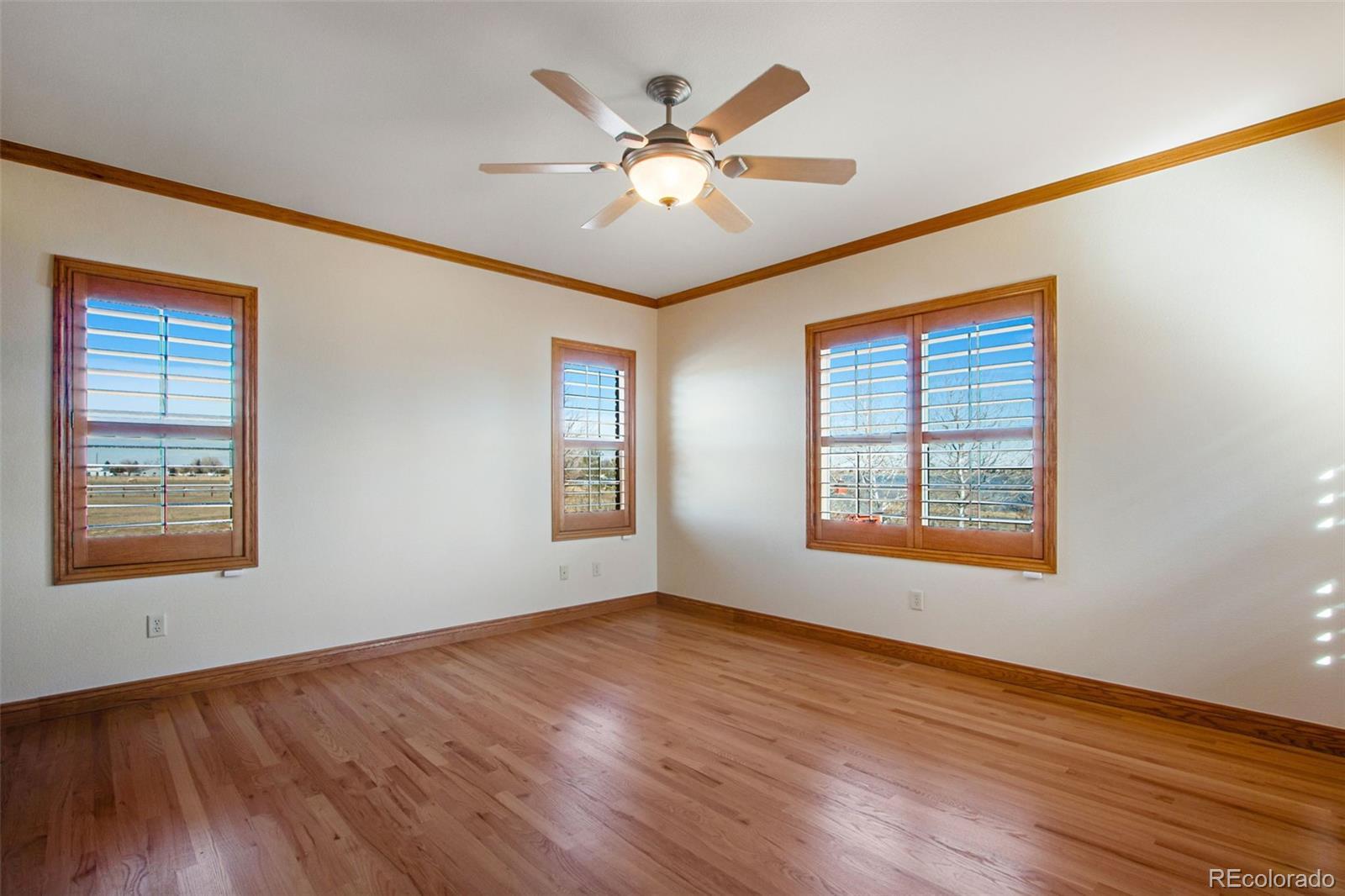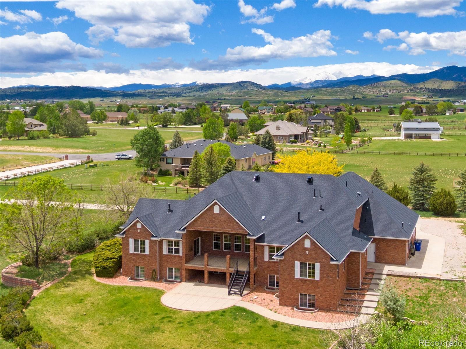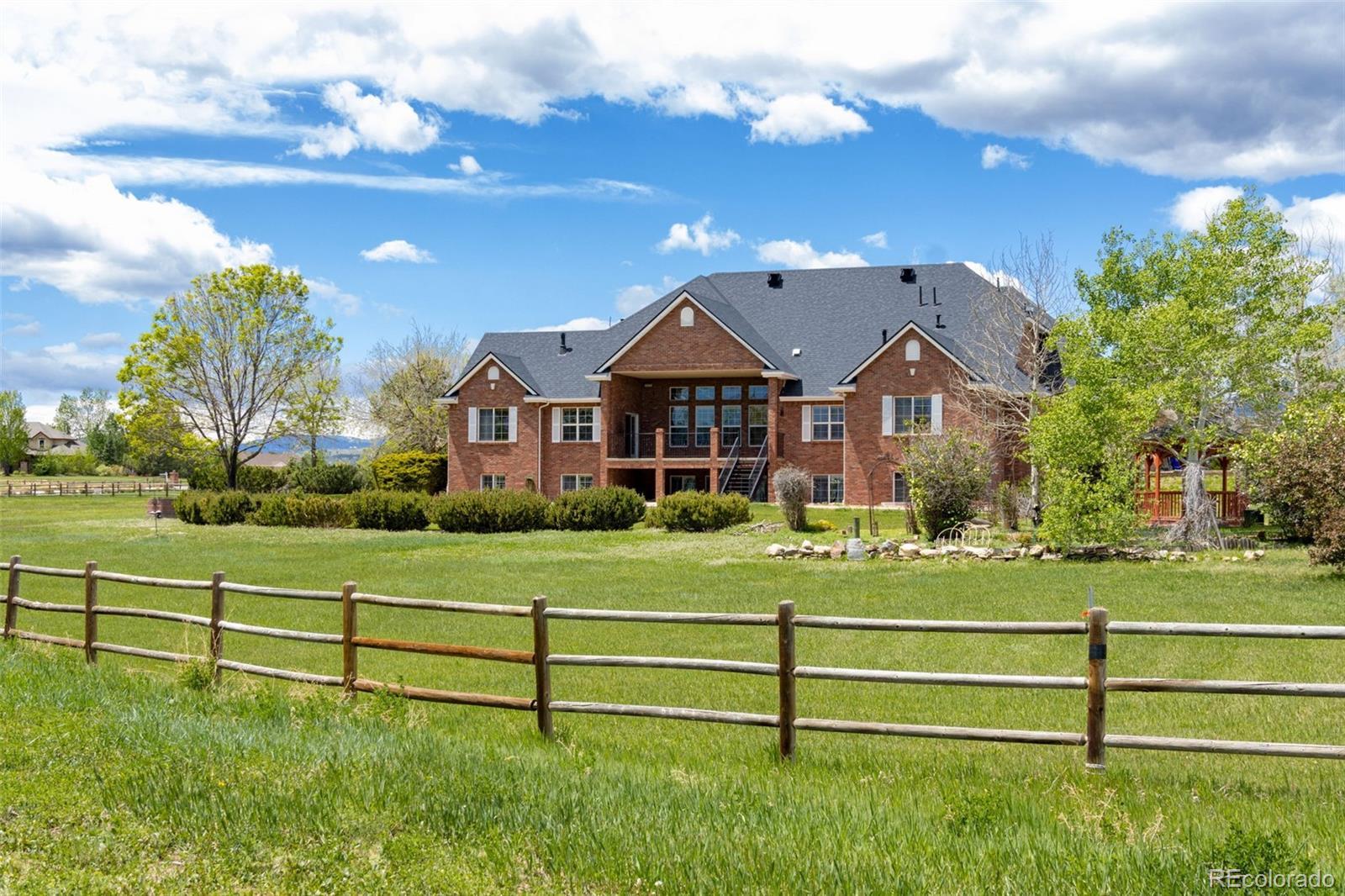 A True Equestrian Waterfront Estate in Paradise Valley. Set on a 4.25 ac. lot w/2 primary suites on main living level, 2 additional bedrooms in Garden level basement in this 7,000+ sq ft. brick ranch w/ garden level basement. Offers a beautiful setting to enjoy Rocky Mountains sunsets t& stunning lakefront sunrises. This is a unique private lot, that allows horses/lg. animals & the opportunity to join Lonetree Lake Club at Heron Lakes TPC golf community. Whether you're enjoying the tranquility, open space, future opportunity for an equestrian barn, a day on the water, fishing, boating or teeing off at TPC Colorado Championship Golf Course just across the lake, this estate offers an unparalleled opportunity to enjoy everything that northern colorado offers in close proximity. The balance of elegance, space, and outdoor adventures. The home is designed w/ both grandeur & functionality in mind, the main floor living home features soaring ceilings, wood floors, premium custom woodworking & 3 fireplaces. The gourmet kitchen boasts high-end appliances, spacious island, walk-in pantry & butlers pantry to the formal dining room. Ideal for entertaining. The primary suite serves as a true retreat w/cozy gas fireplace, sitting area, cedar-finished walk-in closet, & five-piece bath w/ luxurious finishes. Additional highlights include a private office w/ custom built-in shelves, trim & paneling. Plus a custom inlaid compass design on floor. The functionally finished garden-level basement w/ high ceilings offers 2 bedrooms, family room & ample space for future expansion. Oversized heated 4-car garage w/ 220V power and above garage loft is perfect for hobbyists or those needing extra workspace. With close proximity to the TPC Heron Lakes golf course, (yearly stop for the Korn Ferry Tournaments), local dining, shopping, festivals, entertainment, & wonderful school districts. This is not in a Metro Tax District.