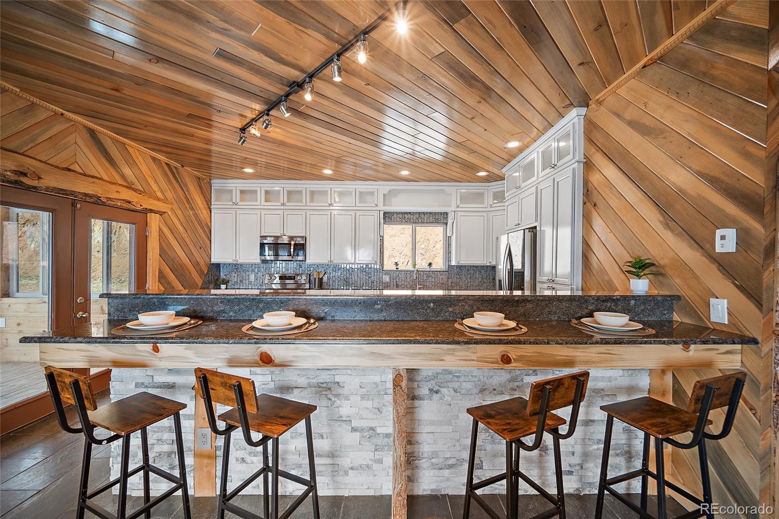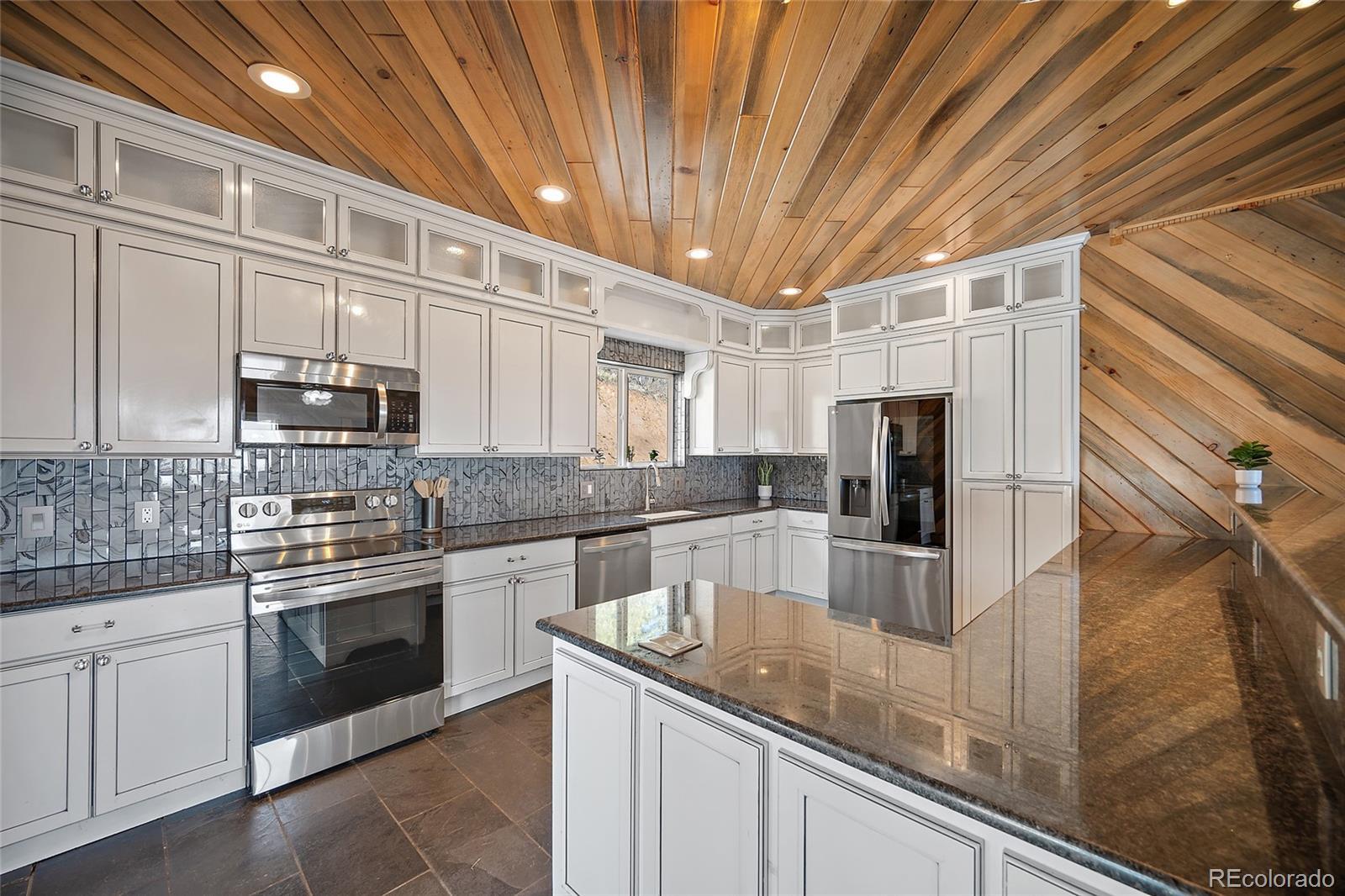 Imagine waking up to hearing nothing but the birds chirping, wild turkeys gobbling, and little else than the breeze in the trees... Welcome to your dream mountain retreat in the serene foothills of Rye, Colorado. Nestled on 6.7 beautifully private wooded acres, this stunning custom mountain home is Colorado living at its finest. With hiking trails right on the property and Beckwith Reservoir just minutes away, it’s the perfect balance of adventure and serenity. Step inside this extraordinary home to find exquisite craftsmanship throughout—detailed tongue-and-groove wood ceilings, rich slate flooring, and high-end finishes in every room. The main level features a luxurious primary suite with beautiful mountainside views and access to the private covered wrap-around patio—perfect for sipping your morning coffee will watching the sunrise. It boasts a cedar-lined walk-in closet and spa-like en suite bath. When you walk into the bath the first thing you are greeted by are the magnificent stone walls that extend all the way through the ceiling. The large luxury granite double vanity provides ample storage and adds to the natural elegant beauty of the primary bath. Next, step inside the stone encased walk-in shower with a dramatic overhead waterfall shower-head and side body jets for a true immersive, retreat-like experience. The main floor is made complete with two additional bedrooms with custom built-in armoires and a generously sized full bath. All main living is conveniently located on the main floor of this beautiful home. Upstairs, you’ll find the third bedroom which opens onto a large deck with breathtaking views of the countryside below, as well as the third full bath and a large open family room & seating area complete with an additional deck to sit and enjoy the breathtaking views. A 4-car heated detached garage/workshop completes this incredible property. Peaceful, private, and beautifully built—this is the Colorado mountain lifestyle you’ve been dreaming of.