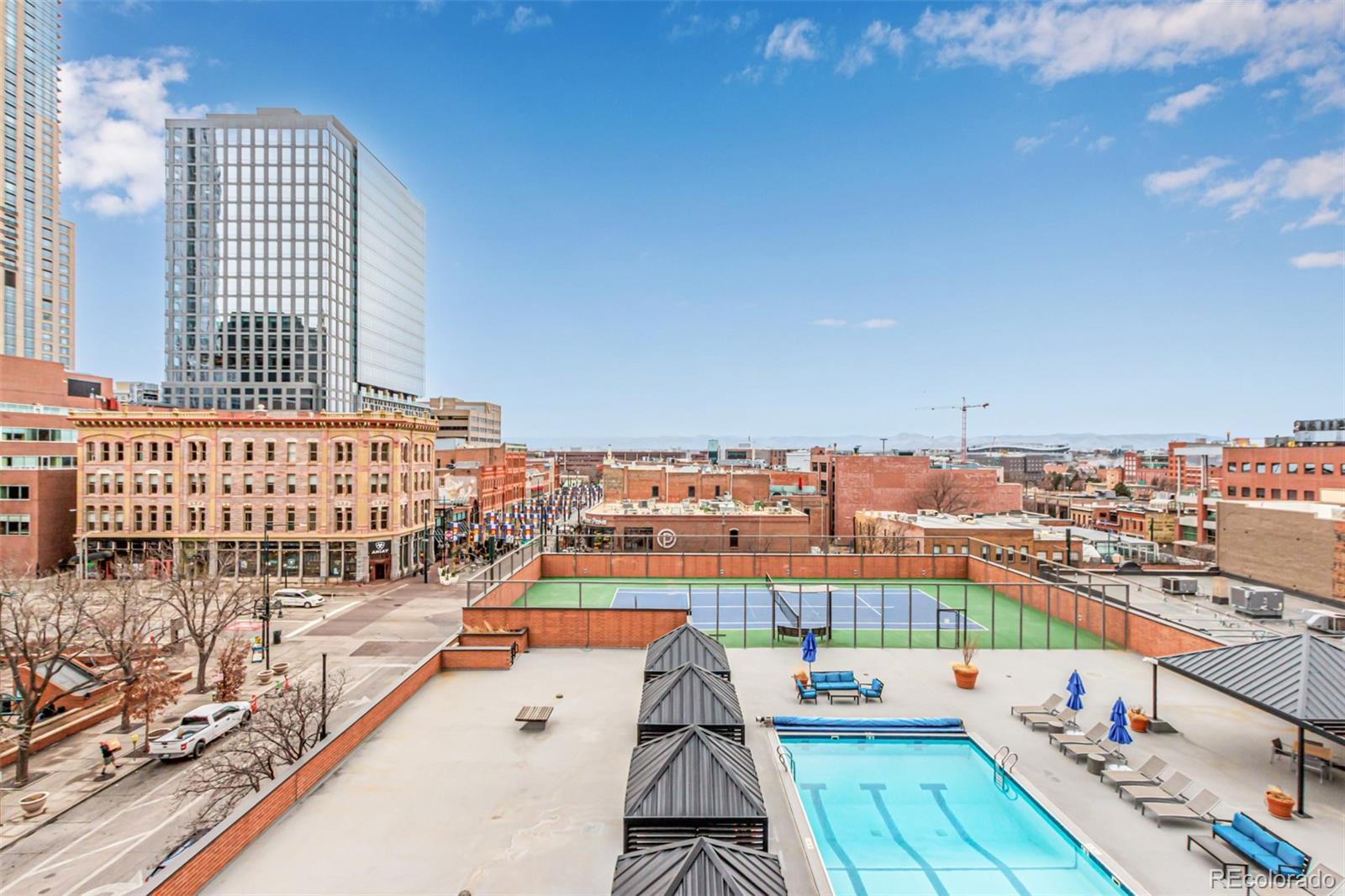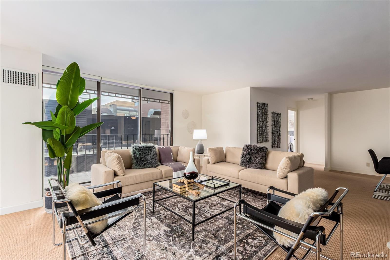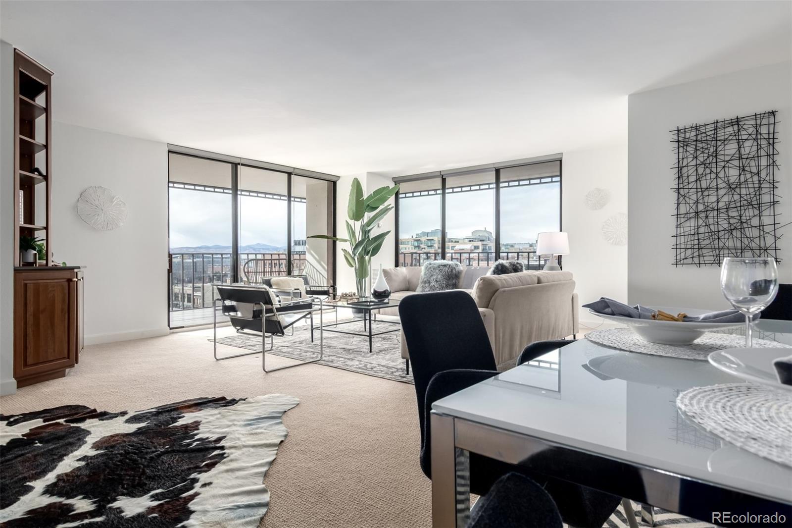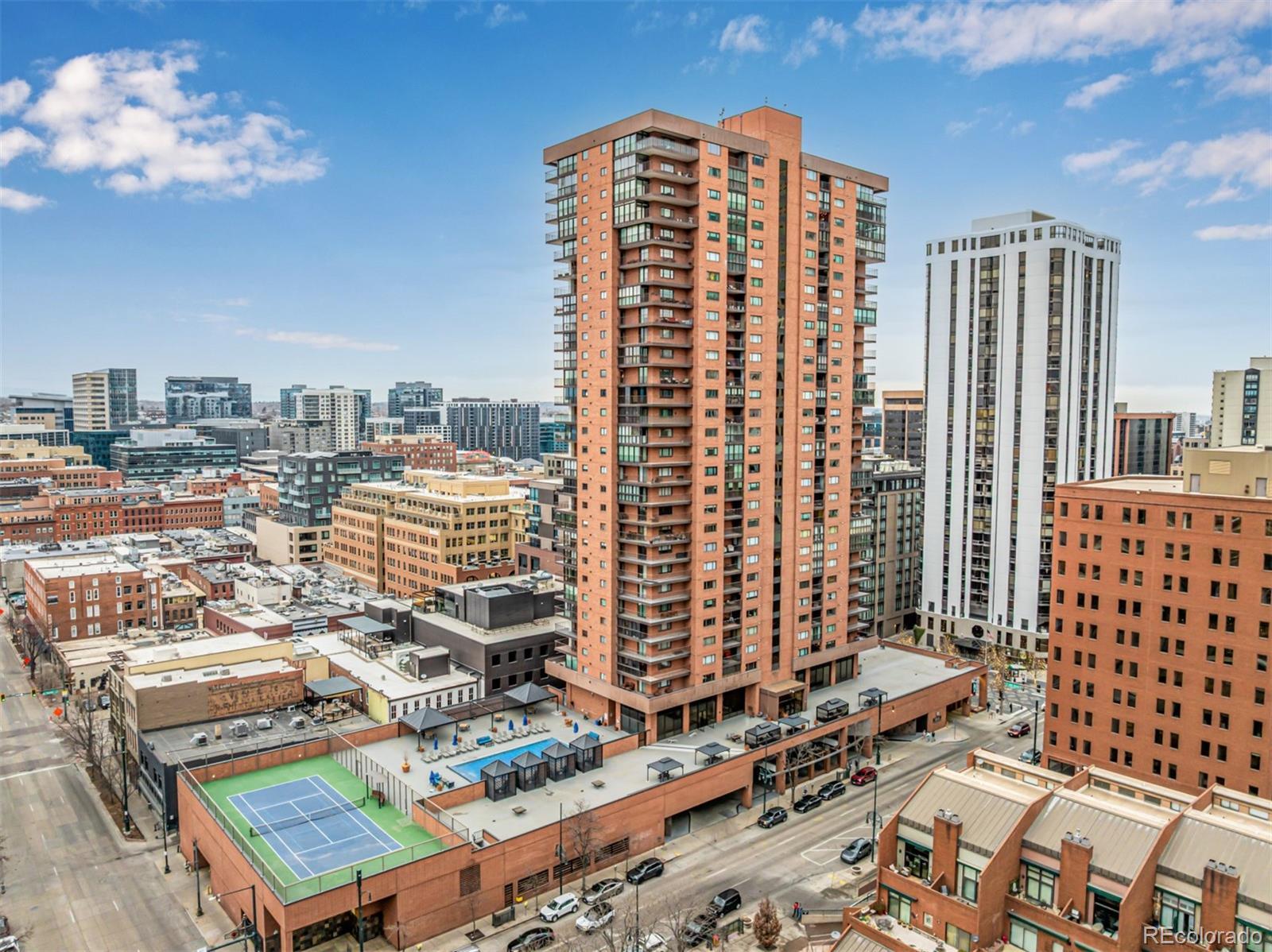 Wake up to sweeping city and mountain views from one of downtown Denver’s most iconic addresses, Larimer Place. This exceptional 3-bedroom, 3-bath residence spans 2,313 square feet and offers a rare combination of expansive living space, refined design, and premier LoDo positioning. Floor-to-ceiling windows frame both the Denver skyline and distant mountain views, filling the open-concept living and dining areas with natural light throughout the day. The layout is equally suited for elevated entertaining and comfortable everyday living. A standout feature of the home is its two private balconies, providing distinct outdoor vantage points to enjoy morning coffee against the mountains or unwind in the evening with city lights as your backdrop. The thoughtfully designed kitchen blends style and function with quality appliances, sleek countertops, and generous cabinetry, ideal for both daily use and hosting. The spacious primary suite offers a true retreat with ensuite bath and walk-in closet. A secondary ensuite bedroom provides privacy for guests or multigenerational living, while the third bedroom offers flexibility for a home office or additional guest space. A well-appointed third full bath completes this layout. Larimer Place delivers a full-service lifestyle with an outdoor pool, fitness center, tennis courts, sauna, spa facilities with indoor hot tub, clubhouse, and 24-hour concierge. One deeded garage parking space and guest parking adds convenience and security. With a Walk Score of 96, you are steps from Larimer Square, Union Station, the Denver Performing Arts Complex, acclaimed dining, boutique shopping, and vibrant nightlife. The best of Denver is right outside your door.
