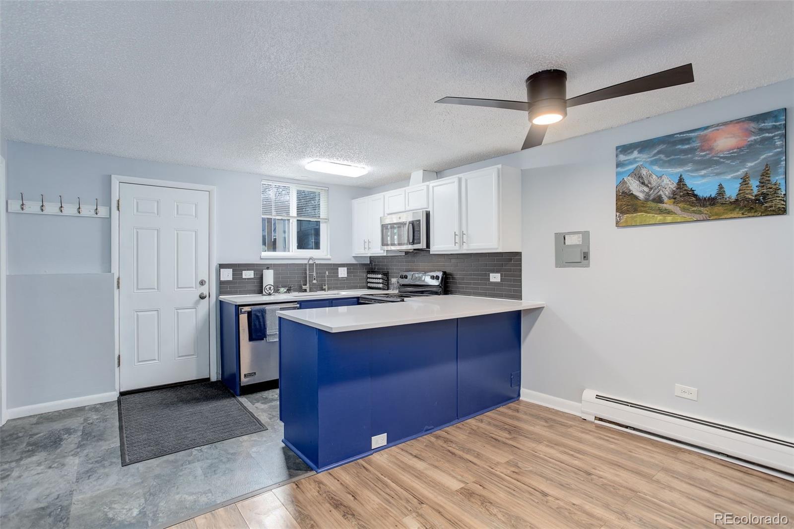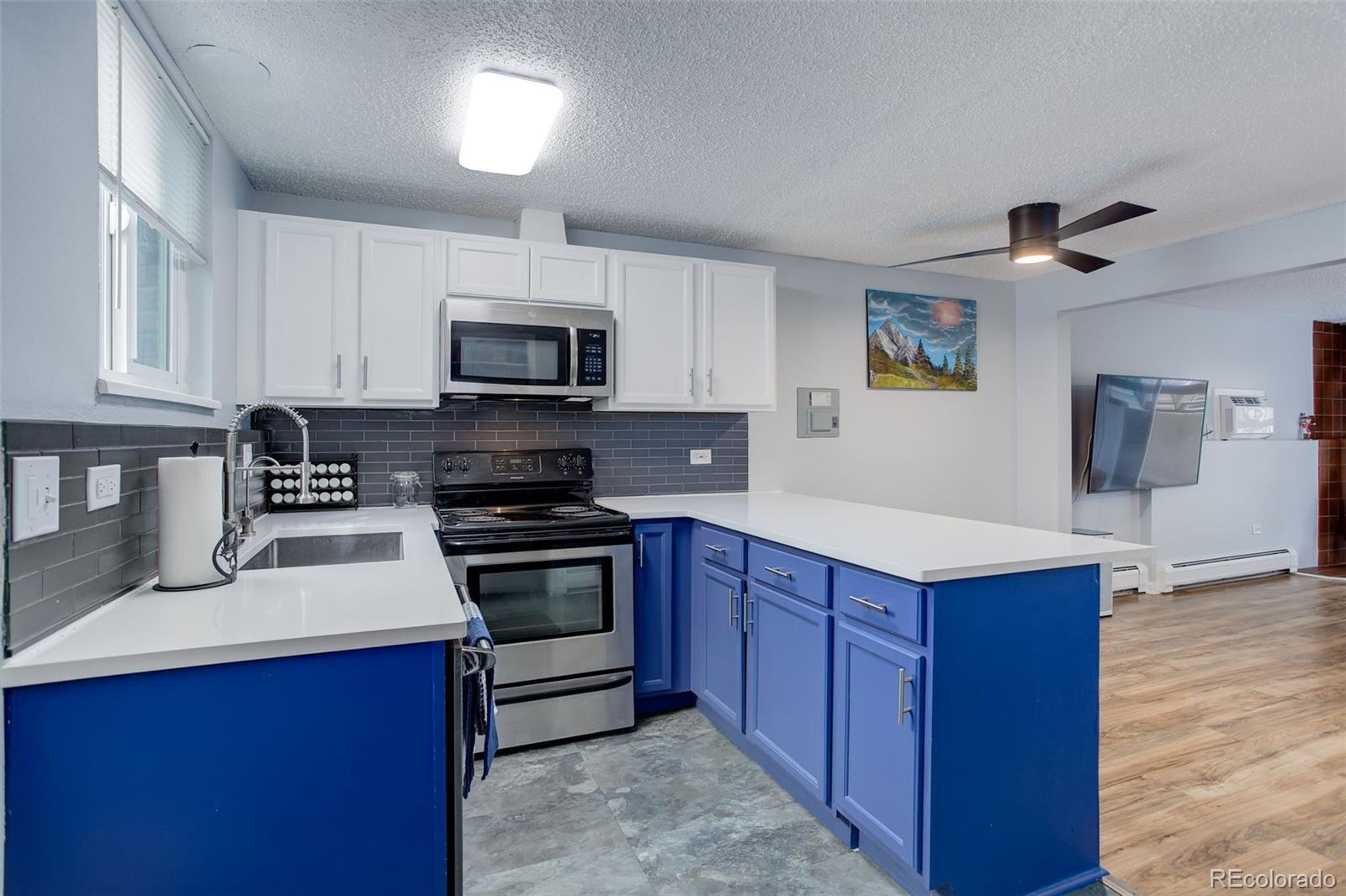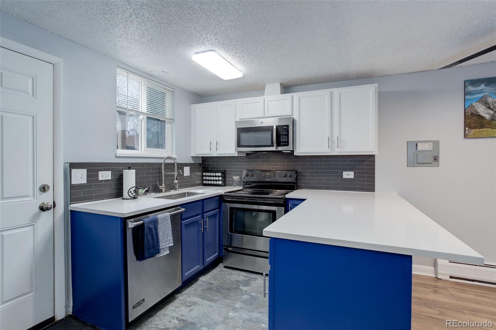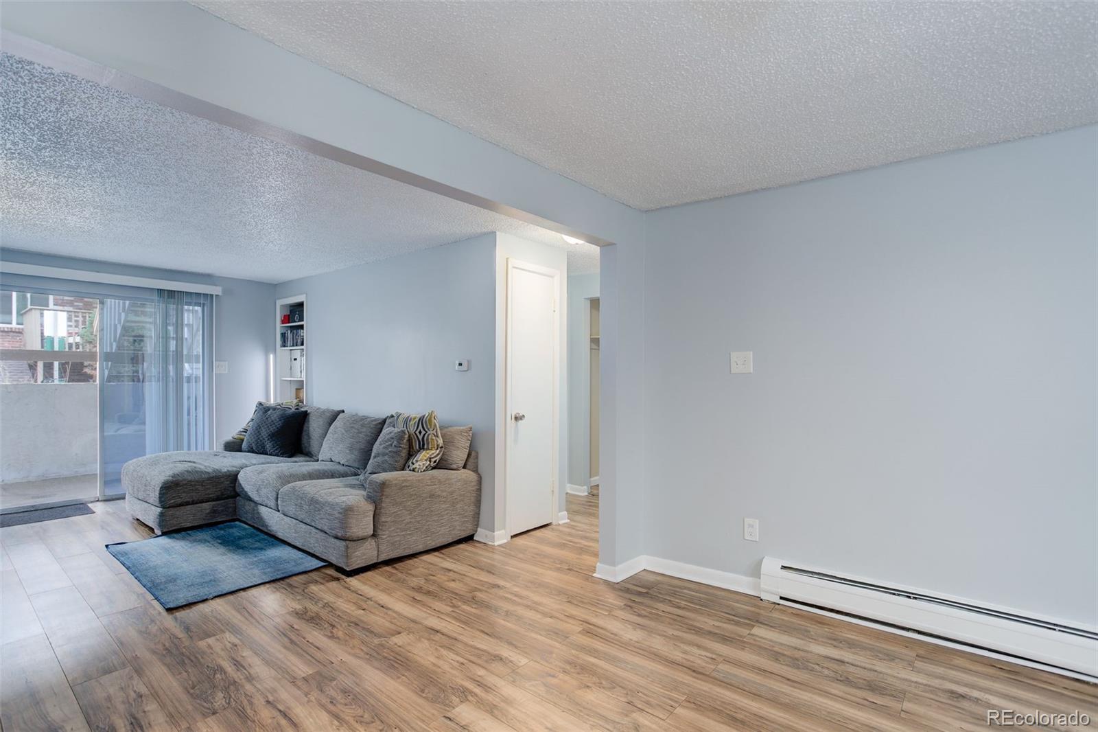 Back on the market because the buyers financing fell through. Welcome to this beautifully updated 2-bedroom, 1-bathroom condominium in the desirable Lexington Square Community in Denver! This charming home offers a perfect combination of modern updates, functional living space, and a peaceful setting, making it an ideal place to call home. Step into the open floorplan that flows seamlessly, creating a spacious and inviting atmosphere. The updated kitchen is a standout feature, complete with elegant stone countertops and brand-new cabinets, providing both beauty and ample storage space for all your culinary needs. The remodeled bathroom boasts sleek, modern finishes that elevate the home’s overall style. For added convenience, the unit includes an in-unit laundry hookup, and the updated electrical panel wiring ensures safety and peace of mind. The new double-pane windows throughout offer enhanced energy efficiency and a quiet, comfortable environment, while the new A/C unit keeps you cool during the warmer months. Relax and unwind on your private patio, offering a peaceful outdoor space to enjoy fresh air and tranquility. The beautifully maintained courtyard adds to the charm of the community, creating an inviting area to enjoy the outdoors. Plus, a dedicated covered parking spot ensures that you always have a secure place to park. This condominium combines comfort, modern upgrades, and a fantastic location in the Lexington Square Community. Don't miss the opportunity to own this turnkey home—schedule a tour today!