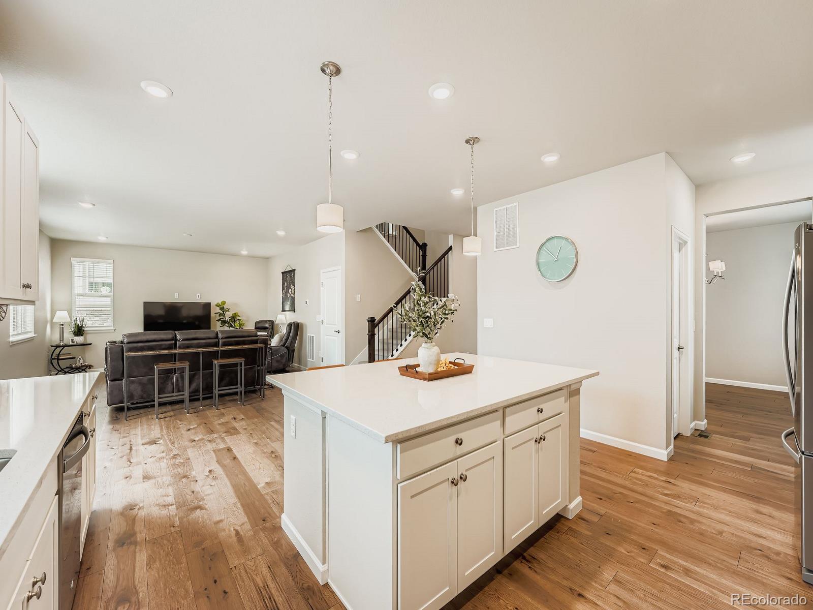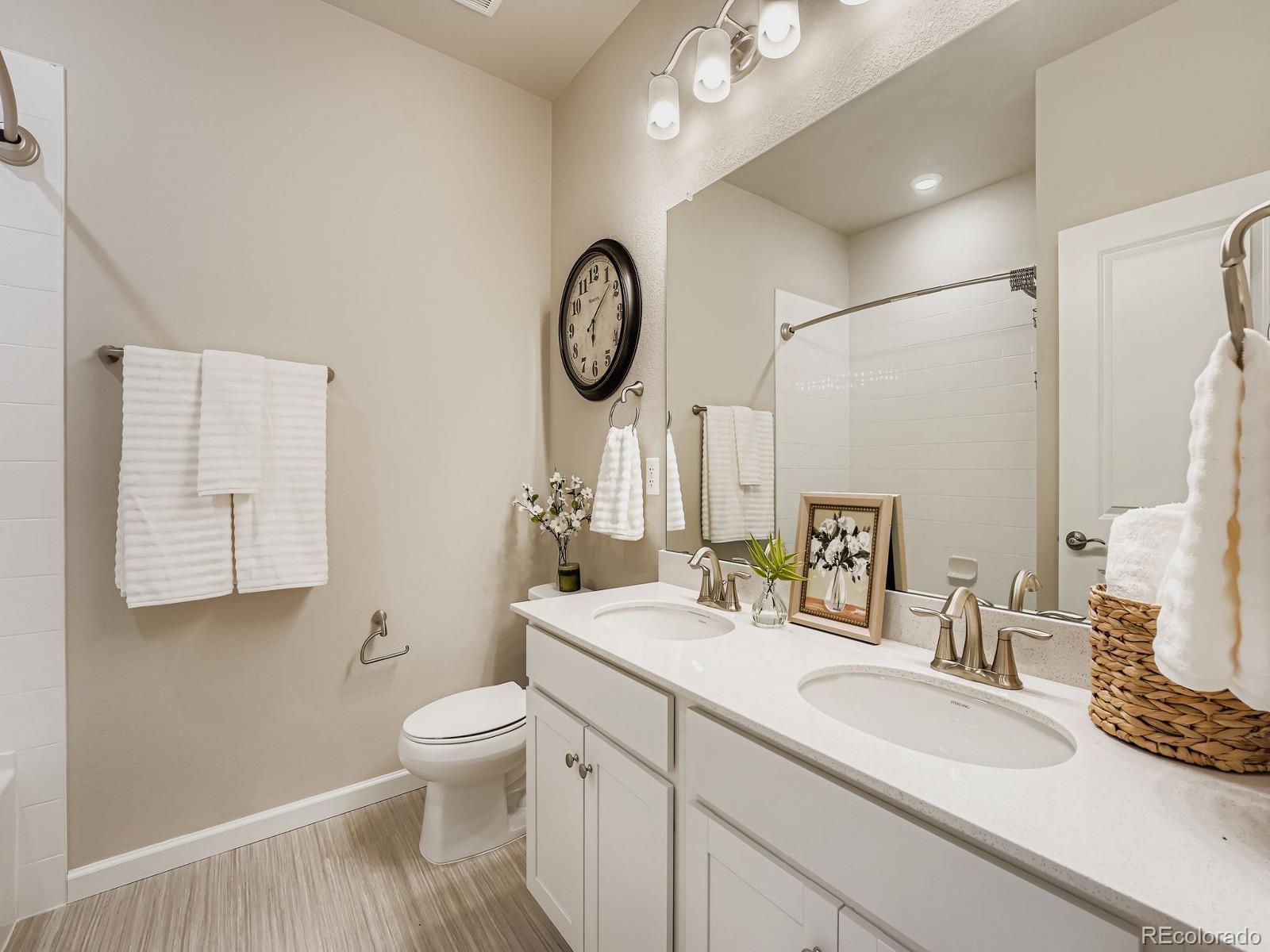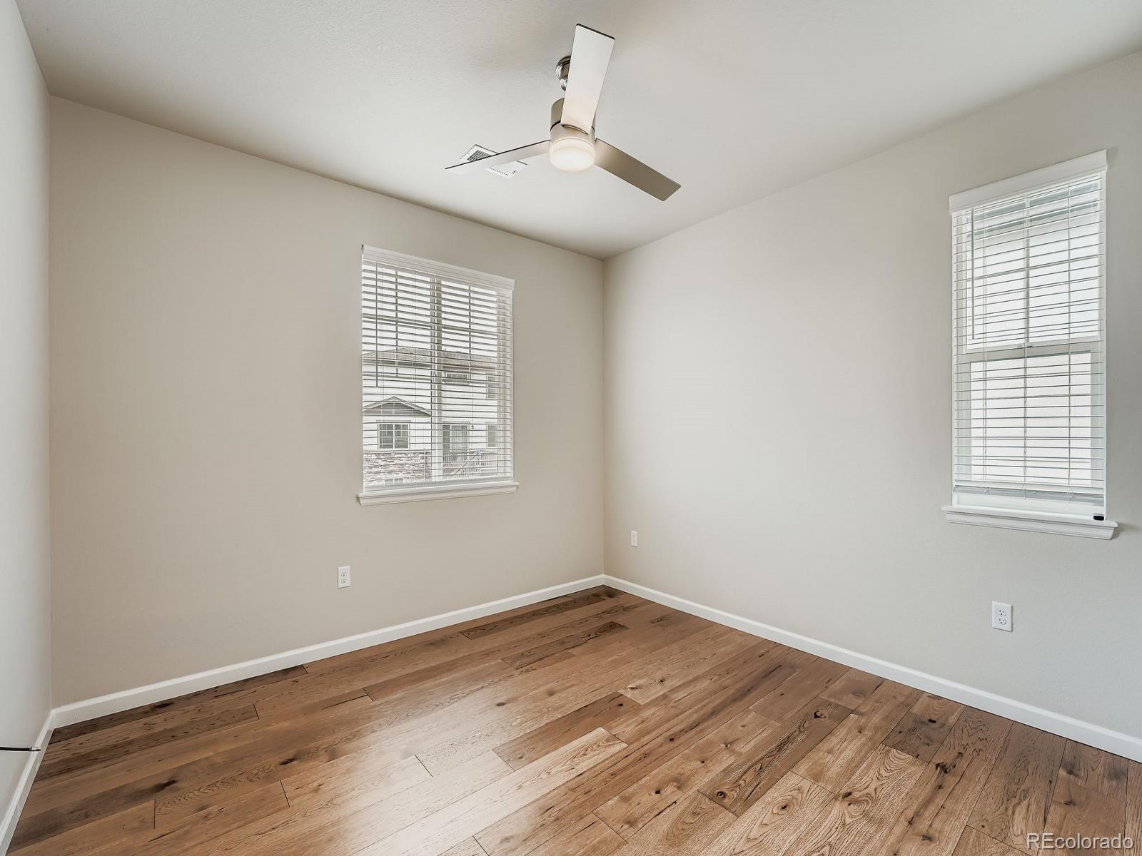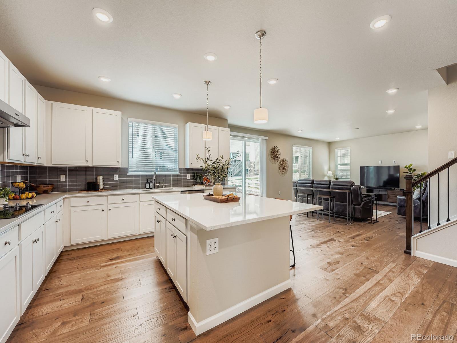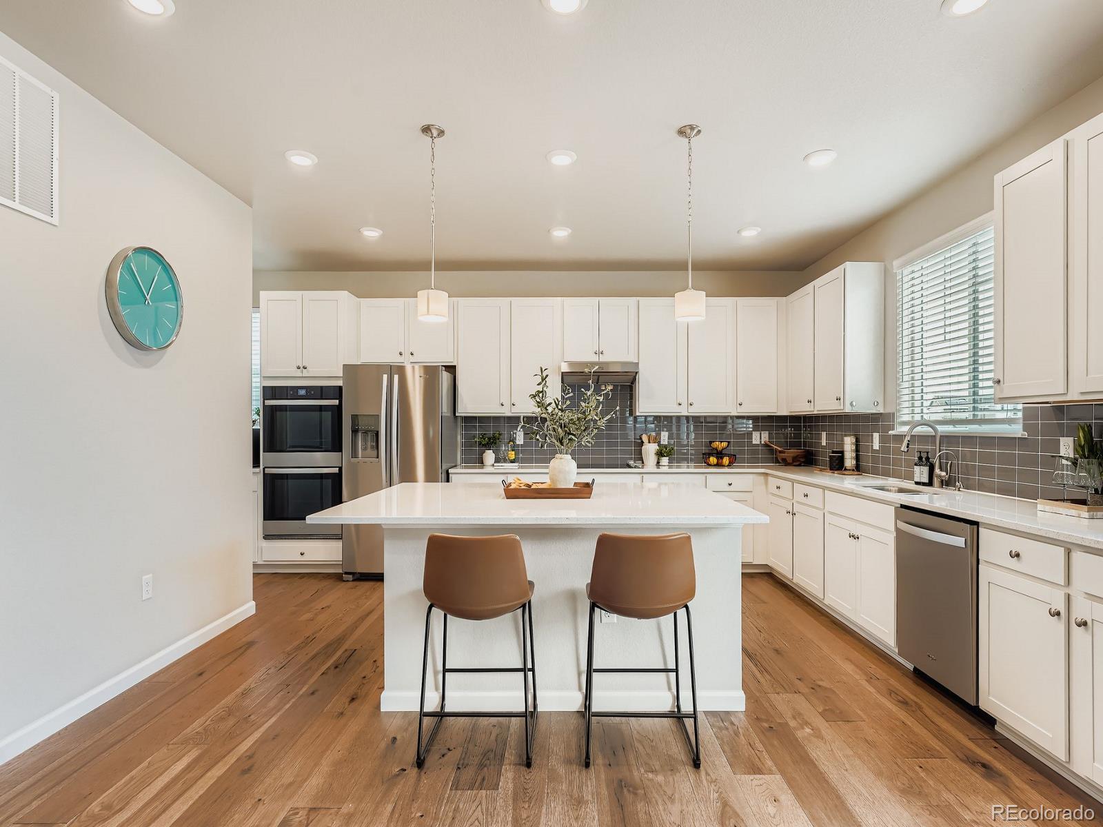 Stunning home with loft, office & high-end upgrades in Cherry Creek School District! Welcome to this beautiful, nearly new 4-bedroom, 4-bathroom home featuring a spacious loft, dedicated office and separate guest room on the main level. Luxurious upgrades throughout. From the moment you step inside, you’ll notice the attention to detail - engineered hardwood flooring extends throughout the entire home, including all bedrooms and closets, while bathrooms are finished with eco-friendly Marmoleum flooring. The gourmet kitchen is a chef’s dream, complete with double ovens, a French door refrigerator, a professionally installed external vent hood above the cooktop, and an under-sink water filtration system with a dedicated dispenser. Modern convenience is built-in with USB-A and USB-C outlets in the kitchen. While the cooktop is currently electric, a gas line is already in place for easy conversion to a gas range. Additional interior upgrades include: Custom, professionally installed vertical blinds at the patio door. Stylish lever door handles, stained rails with square iron spindles on the staircase, two upgraded HVAC systems designed to accommodate 2” thick filters for improved air quality, complete with Scorpion IAQ air cleaners. The professionally landscaped backyard is enclosed with professionally installed fencing—perfect for relaxing or entertaining and don’t forget the full, unfinished basement—an open canvas ready for your personal touch, whether it’s a home theater, gym, or guest suite. Located in the highly sought-after Southshore community, offering two community centers with pools, miles of trails and 120 acres of public open space.this home is just minutes from shopping, dining, the new YMCA, E-470, Southlands Mall, and more. This home truly has it all—schedule your showing today!
