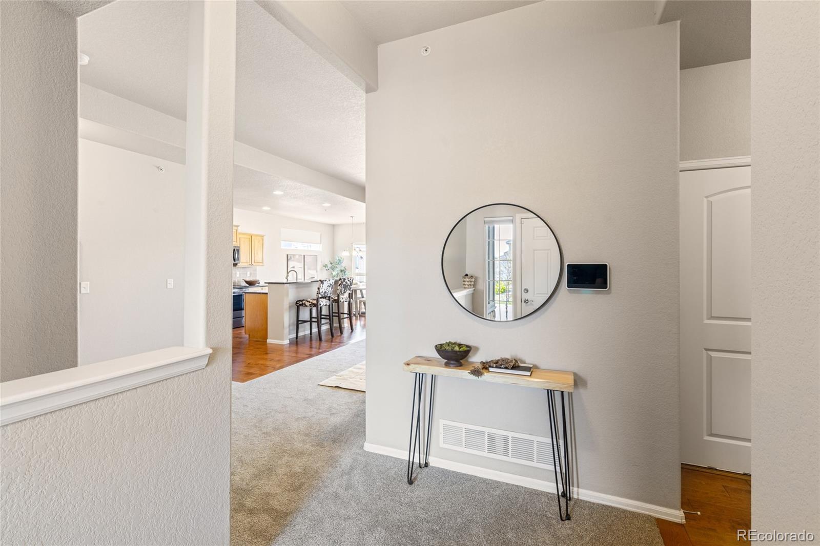 SOLAR PANELS - fully paid off and owned free and clear! No lease, no loan, no hassle. Enjoy reduced electric bills with this energy-efficient, eco-friendly upgrade. Discover your new low-maintenance lifestyle in this gorgeous 3 bed, 3 bath ranch-style paired home. This home was thoughtfully designed with 1,672 sq ft of main level living and is highlighted by newly upgraded carpet throughout. Boasting an additional 1,672 sq ft full unfinished basement, the unique expansive space is ready for your custom touches. Situated in a quiet and desirable neighborhood, this home boasts an open and airy layout perfect for everyday living and entertaining. Step inside to find a light-filled living and dining area with high ceilings and an effortless flow into the kitchen. The kitchen features ample cabinetry, a large center island, stainless steel appliances, and plenty of counter space. The spacious primary suite includes a private 4-piece bath and a generous walk-in closet. Two additional bedrooms and bathrooms, along with a convenient main-level laundry room, provide plenty of space and flexibility. Outside, enjoy a private fenced yard and covered patio—perfect for morning coffee or evening gatherings. The oversized 2-car garage offers extra storage space, and the full unfinished basement provides incredible future potential for added bedrooms, a rec room, or a home gym. Ideally located near community open space and trails with easy access to I-25, schools, parks, shopping, and dining. This is main-level living at its finest with room to grow—don’t miss it!