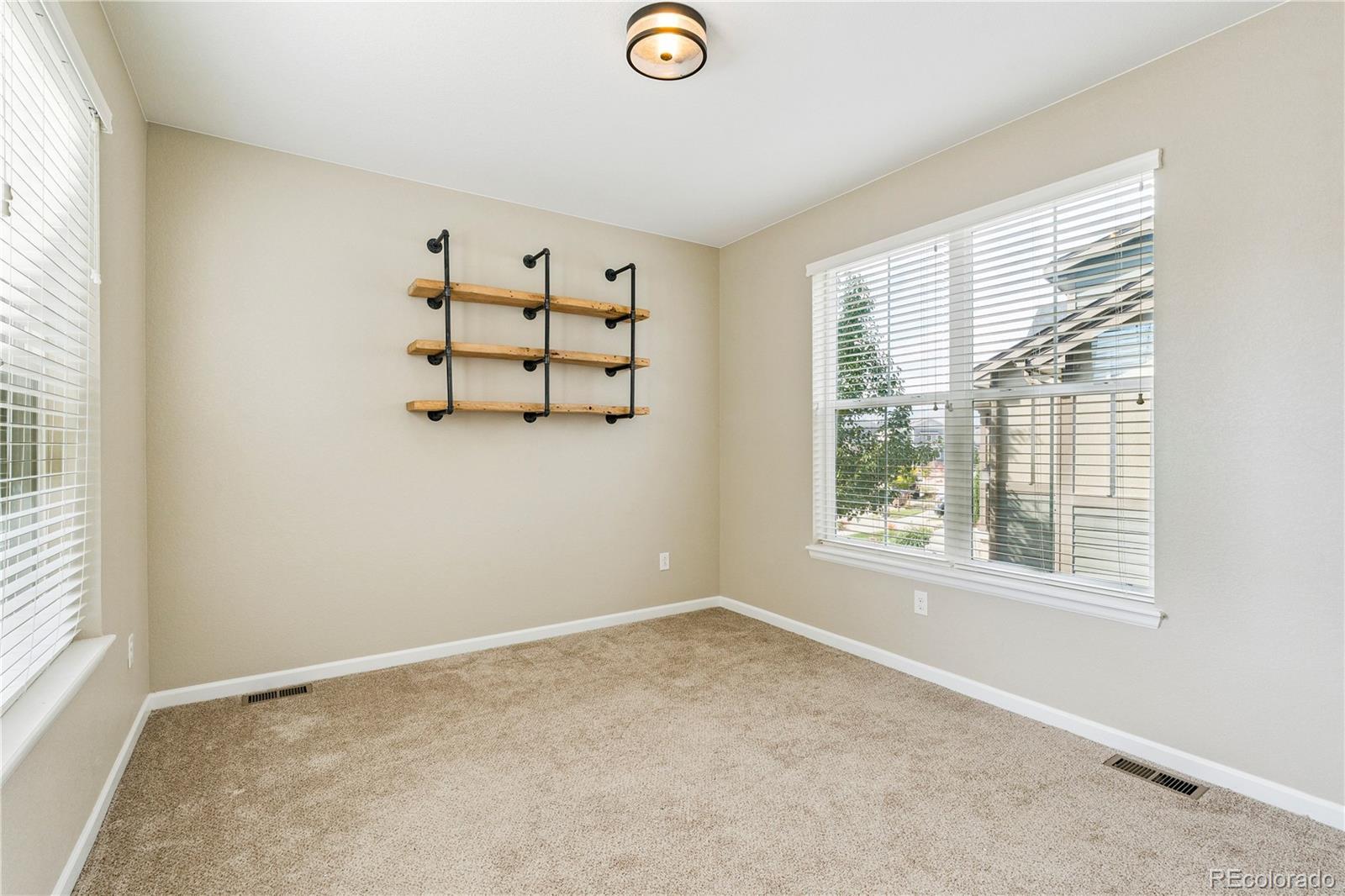 This large single family home has plenty of room to live, work, and play. Ground floor includes a large kitchen with great cabinet storage space, a large walk in pantry, and mud-room. Gather around the granite island and create memories. Just off the dining room is a dedicated office space, perfect for work, homework, or gaming. The living room is wide open and is visible from the kitchen. Ground floor also has a flex space that could be used as a play room, library, an additional office, or a craft room. The upper floor holds four bedrooms and the walk-in laundry room. The basement has a 5th bedroom, full finished bar with kegorator and fridges, lots of storage, and a gym area. This home is ready for you to move right in and start enjoying the Sterling Ranch Life. Sterling Ranch is close to Roxborough State Park, Chatfield State Park, and Lockheed Martin.