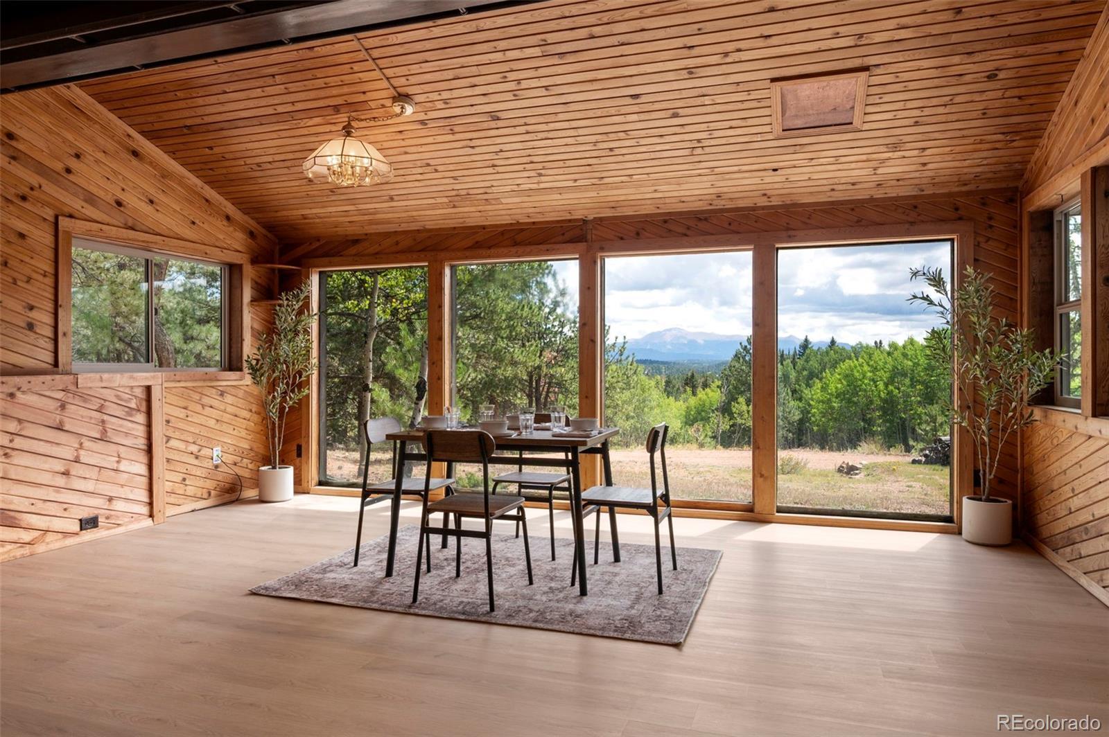 Discover mountain living with sweeping views of Pikes Peak, in this beautifully remodeled 2 bedroom, 2.5 bathroom Florissant home, set in the peaceful Indian Creek community. Close enough to main roads for practicality, yet tucked back enough to enjoy quiet surroundings, vibrant aspen groves, and unforgettable sunrises over the mountains. Inside, nearly every surface has been refreshed - new countertops, cabinets with hardware, sinks, and vanities bring a fresh feel to the kitchen and baths, while new laminate flooring, soft carpet, and crisp paint create a bright, inviting flow throughout. Outside, a spacious barn offers plenty of room for storage, projects, or animals. The newly finished driveway and road make access simple year-round. The voluntary HOA supports three community properties, annual BBQ, Halloween event, contributions to local services, and a warming hut. Whether you’re dreaming of a full-time residence, a weekend retreat, or a place with space for your projects and passions, this home blends thoughtful updates with a true Colorado lifestyle.