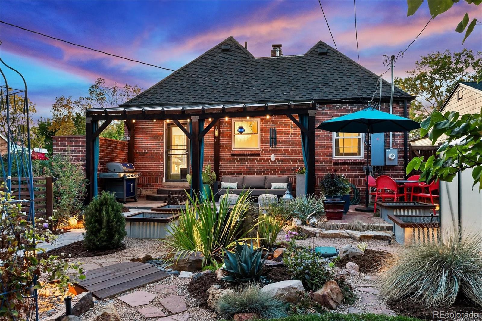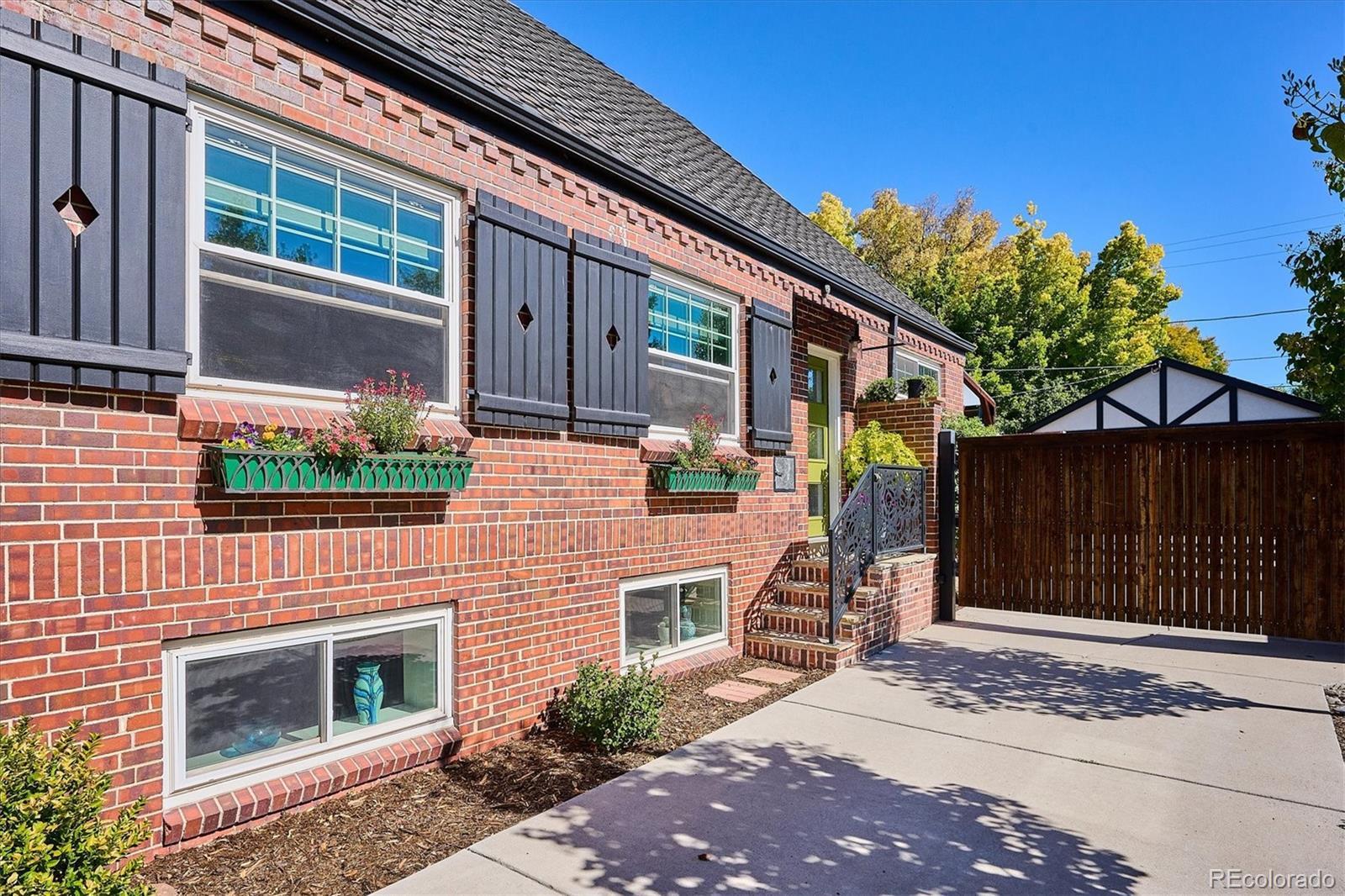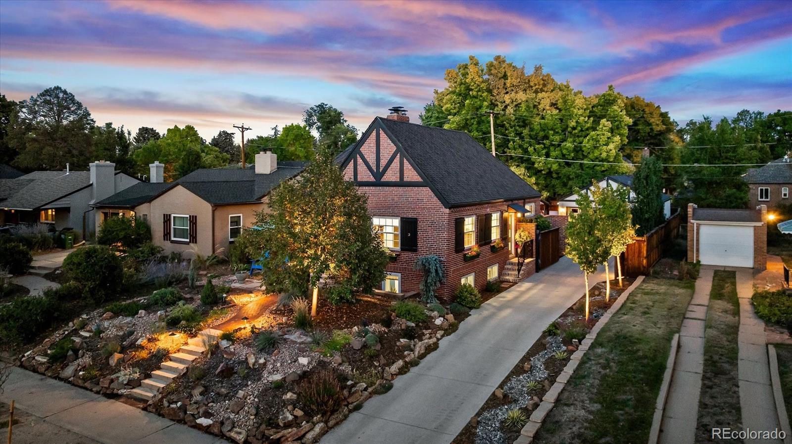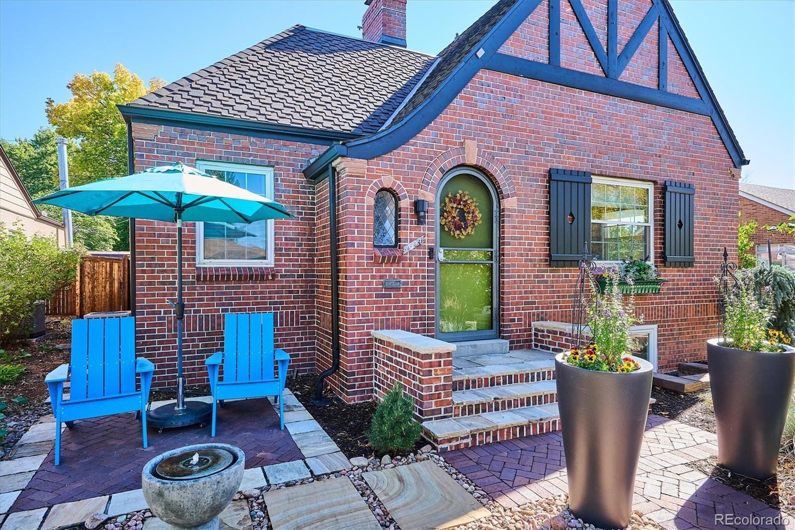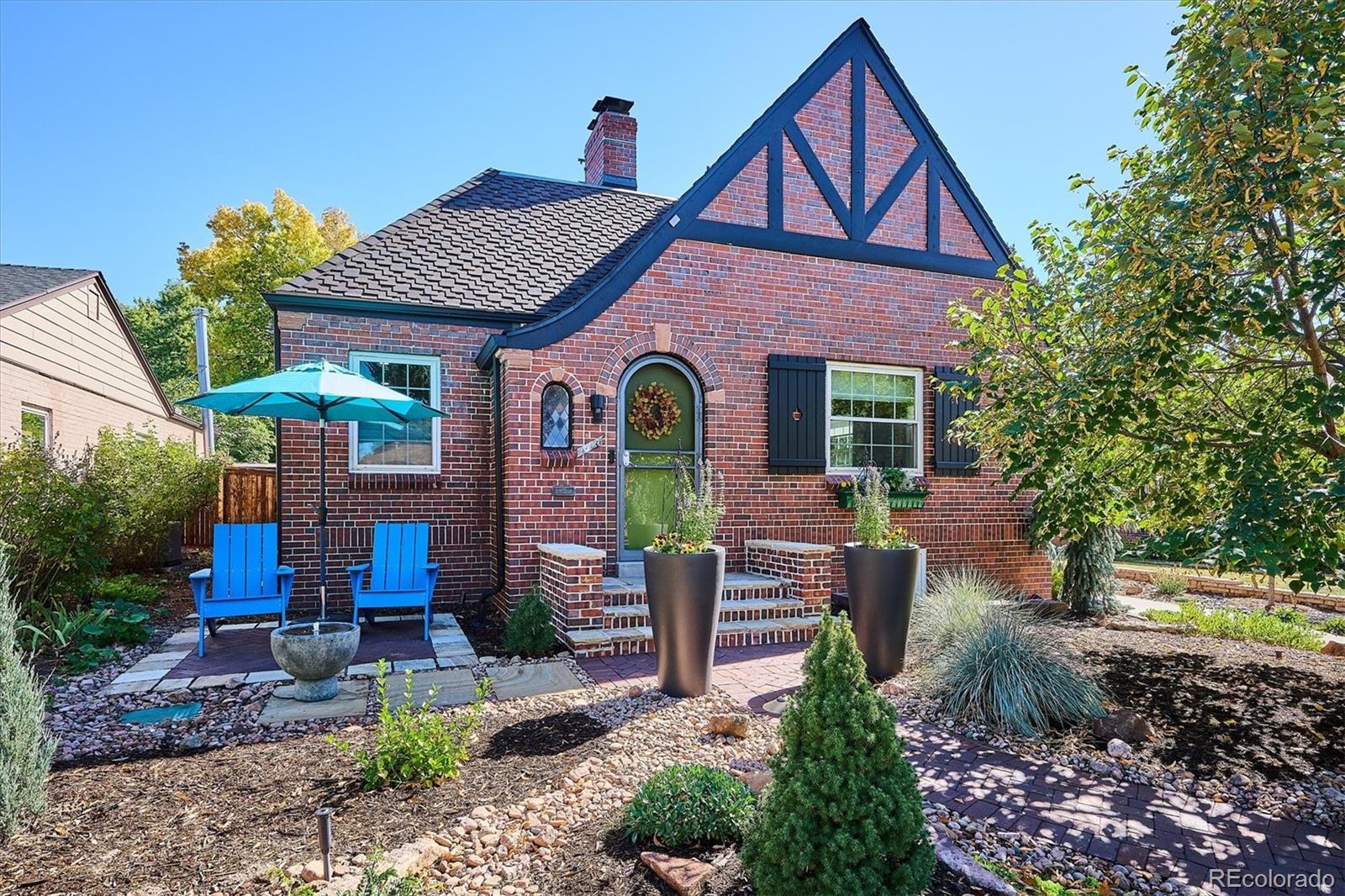 Timeless craftsmanship and modern sophistication define this beautifully restored 1938 Tudor in Denver’s highly coveted Park Hill neighborhood. Set on a picturesque lot, this home offers a rare blend of historic charm and contemporary comfort. The newly designed kitchen is a showpiece—highlighted by exposed brick, spacious culinary marble island, custom cabinets, KitchenAid appliances and south facing windows filling the space with warmth and natural light. Vintage details including original doors and hardware, Batchelder tiled fireplace and window sills, arches and wood floors preserve the home’s storied character. The expansive primary suite is a true retreat, featuring a spa-inspired bathroom with designer fixtures and 3 closets including a spacious walk-in. The main floor features two bedrooms and an original vintage bathroom that has been refreshed and adds an authentic touch of 1930s charm. Enjoy the Colorado outdoors year-round in the gorgeous serene yard, filled with mature low-water perennials, multiple patios, water features, hot tub and Volt-brand low voltage landscape lighting throughout. Updates include: newer windows with custom window coverings, new paint, new sewer line (including tap), new water line, newer oversized two car garage with an electric driveway gate and Certain Teed Presidential roof. Close to top-rated schools, neighborhood parks, and vibrant local amenities—this property embodies the grace and sophistication of Denver’s finest historic homes.