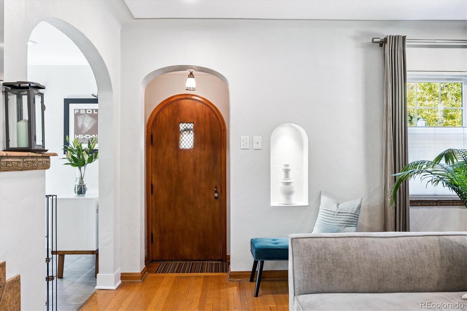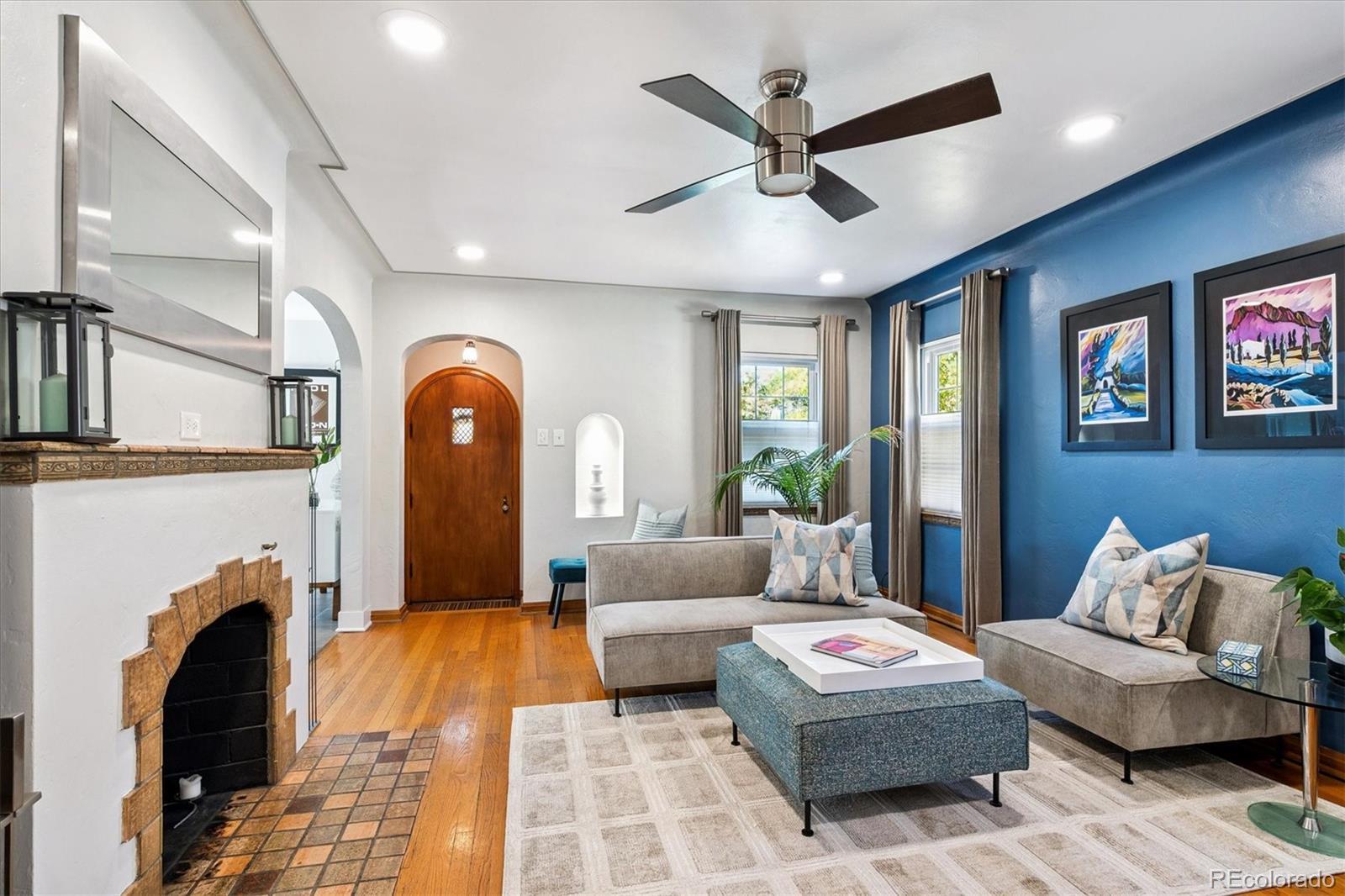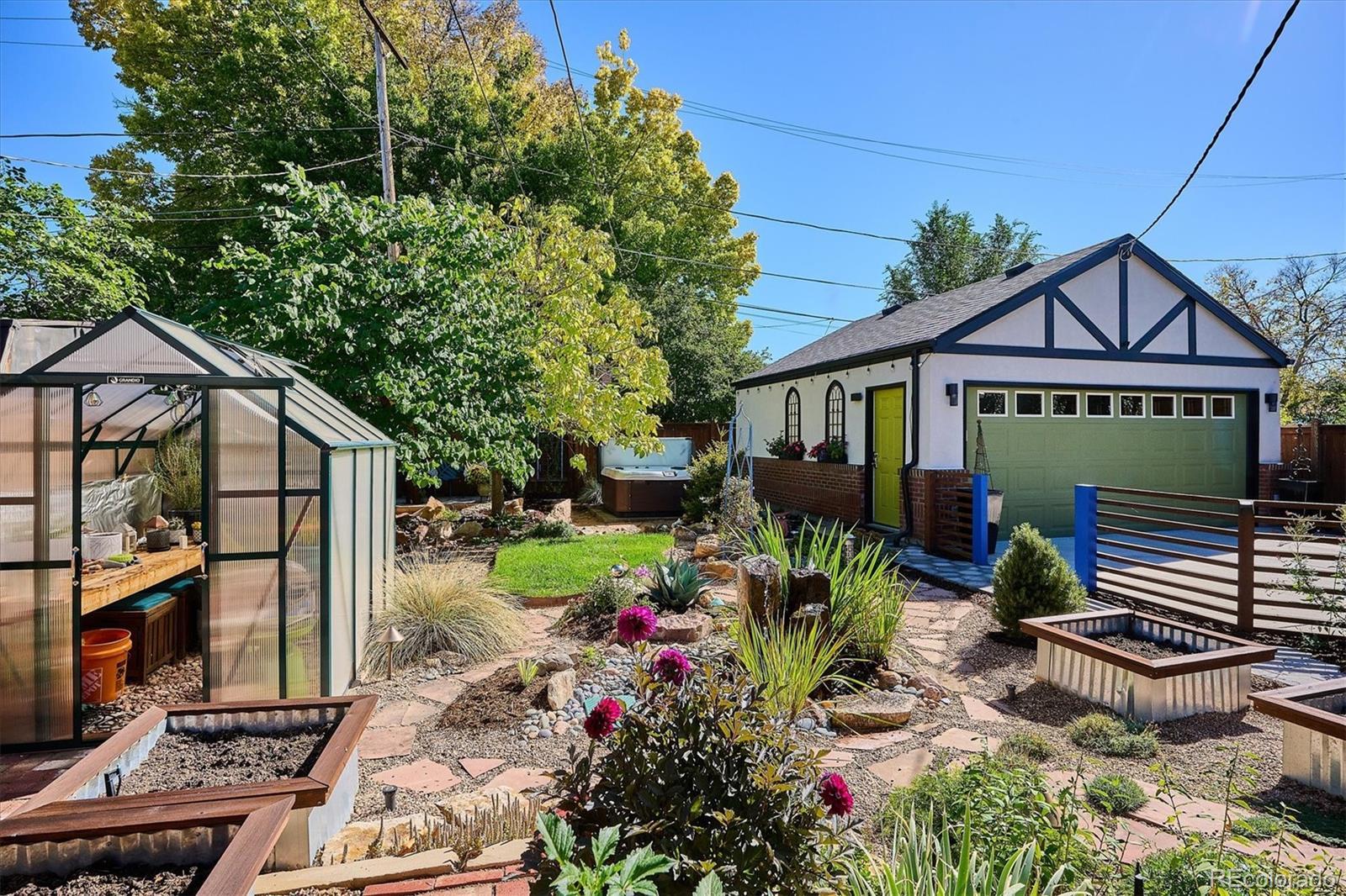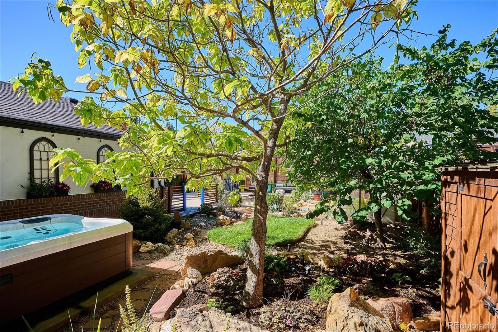 Timeless craftsmanship and modern sophistication define this beautifully restored 1938 Tudor in Denver’s highly coveted Park Hill neighborhood. Set on a picturesque lot, this home offers a rare blend of historic charm and contemporary comfort. The newly designed kitchen is a showpiece—highlighted by exposed brick, spacious culinary marble island, custom cabinets, KitchenAid appliances and south facing windows filling the space with warmth and natural light. Vintage details including original doors and hardware, Batchelder tiled fireplace and window sills, arches and wood floors preserve the home’s storied character. The expansive primary suite is a true retreat, featuring a spa-inspired bathroom with designer fixtures and 3 closets including a spacious walk-in. The main floor features two bedrooms and an original vintage bathroom that has been refreshed and adds an authentic touch of 1930s charm. Enjoy the Colorado outdoors year-round in the gorgeous serene yard, filled with mature low-water perennials, multiple patios, water features, hot tub and Volt-brand low voltage landscape lighting throughout. Updates include: newer windows with custom window coverings, new paint, new sewer line (including tap), new water line, newer oversized two car garage with an electric driveway gate and Certain Teed Presidential roof. Close to top-rated schools, neighborhood parks, and vibrant local amenities—this property embodies the grace and sophistication of Denver’s finest historic homes.