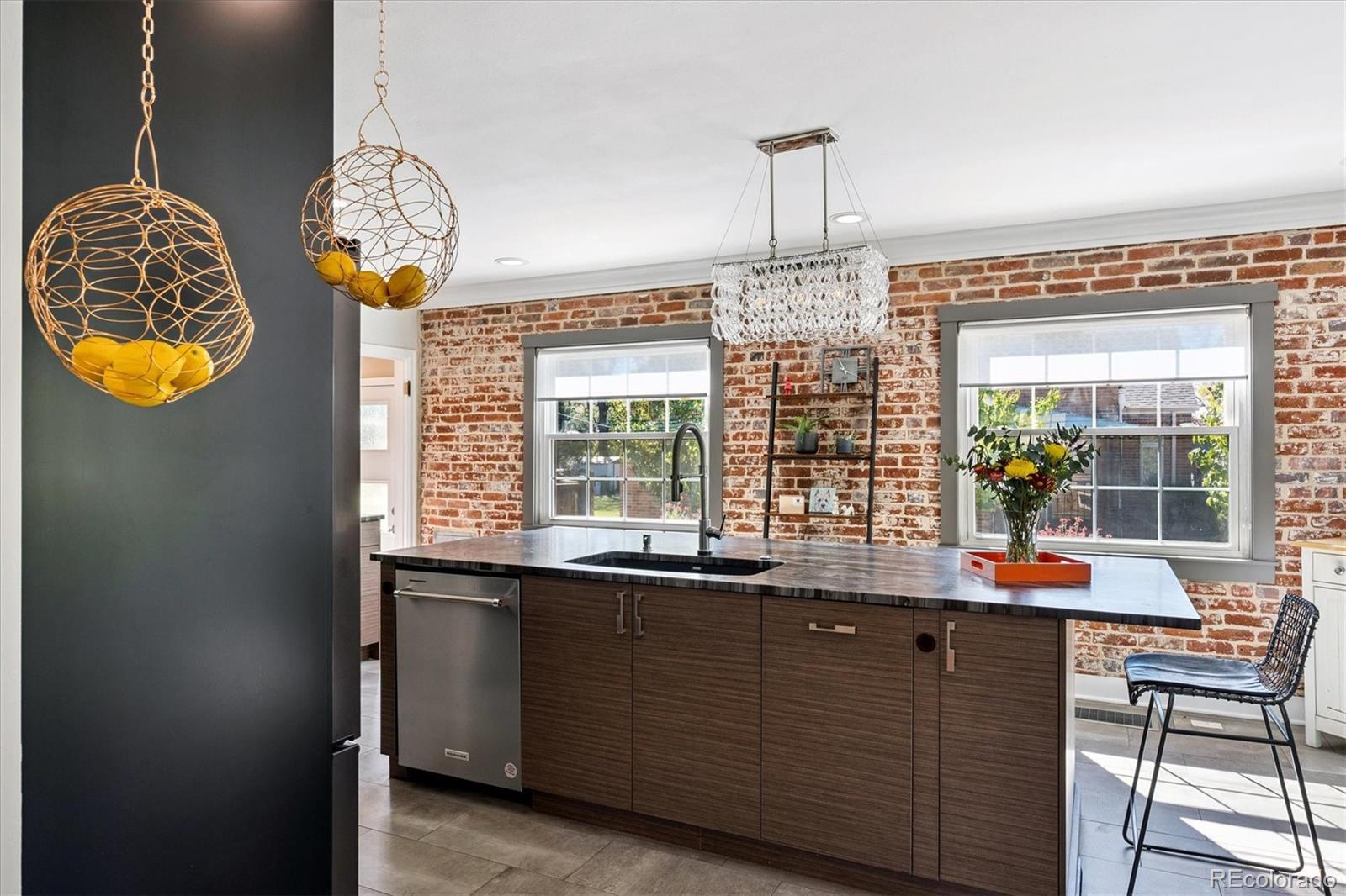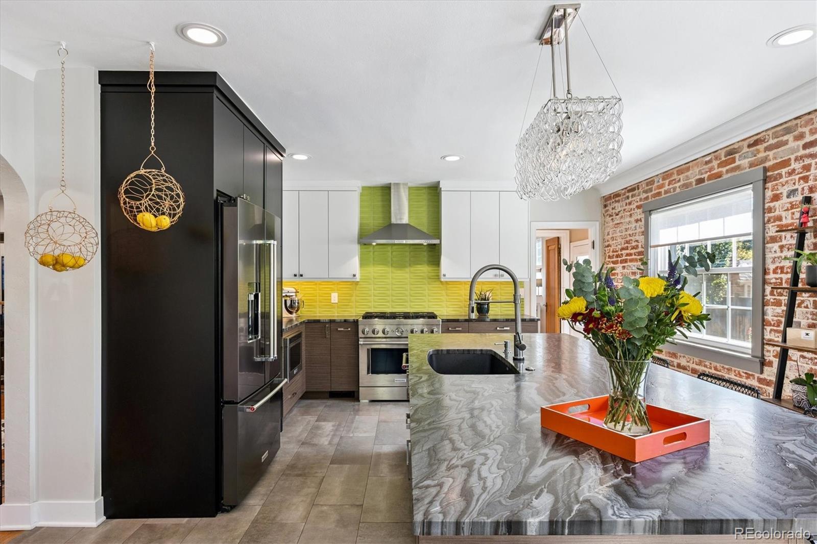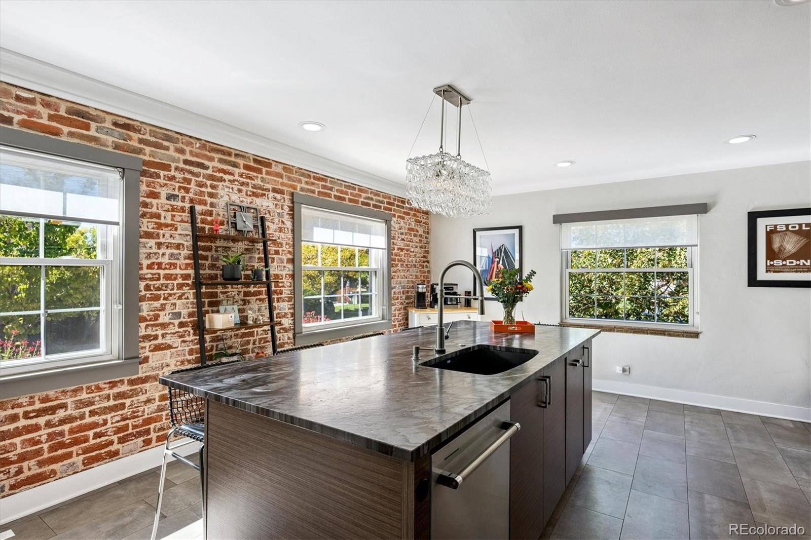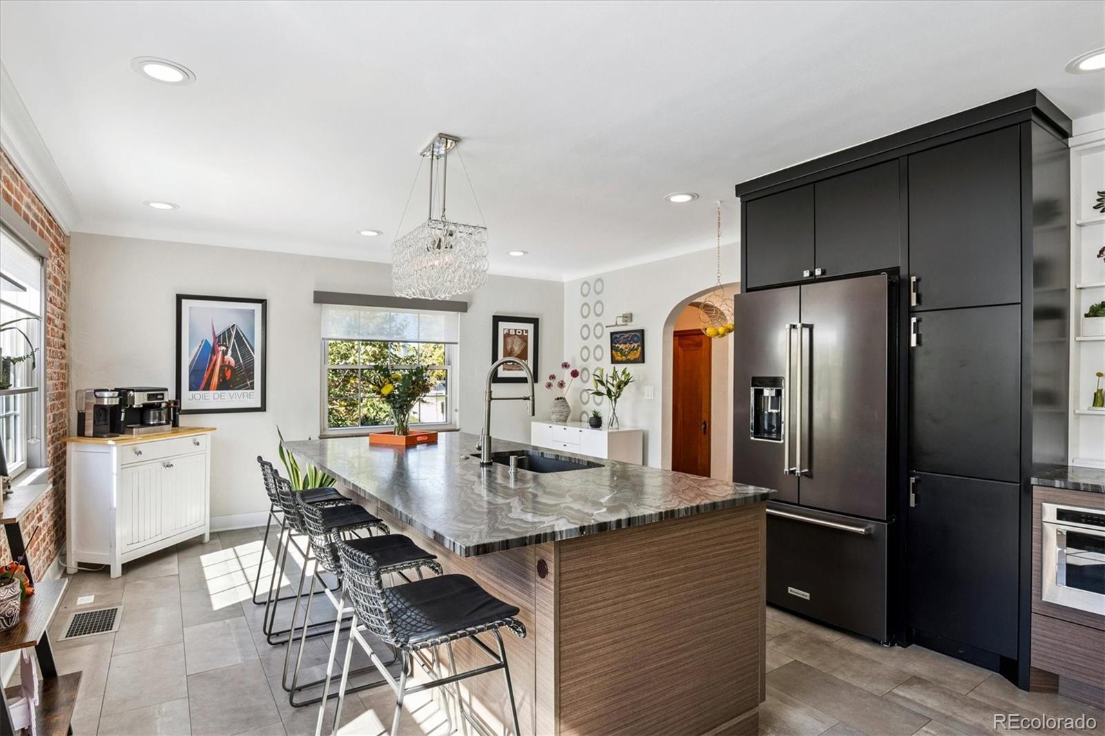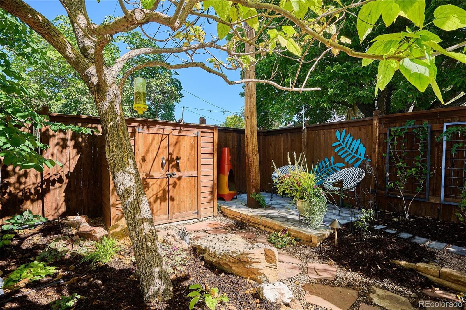 Timeless craftsmanship and modern sophistication define this beautifully restored 1938 Tudor in Denver’s highly coveted Park Hill neighborhood. Set on a picturesque lot, this home offers a rare blend of historic charm and contemporary comfort. The newly designed kitchen is a showpiece—highlighted by exposed brick, spacious culinary marble island, custom cabinets, KitchenAid appliances and south facing windows filling the space with warmth and natural light. Vintage details including original doors and hardware, Batchelder tiled fireplace and window sills, arches and wood floors preserve the home’s storied character. The expansive primary suite is a true retreat, featuring a spa-inspired bathroom with designer fixtures and 3 closets including a spacious walk-in. The main floor features two bedrooms and an original vintage bathroom that has been refreshed and adds an authentic touch of 1930s charm. Enjoy the Colorado outdoors year-round in the gorgeous serene yard, filled with mature low-water perennials, multiple patios, water features, hot tub and Volt-brand low voltage landscape lighting throughout. Updates include: newer windows with custom window coverings, new paint, new sewer line (including tap), new water line, newer oversized two car garage with an electric driveway gate and Certain Teed Presidential roof. Close to top-rated schools, neighborhood parks, and vibrant local amenities—this property embodies the grace and sophistication of Denver’s finest historic homes.