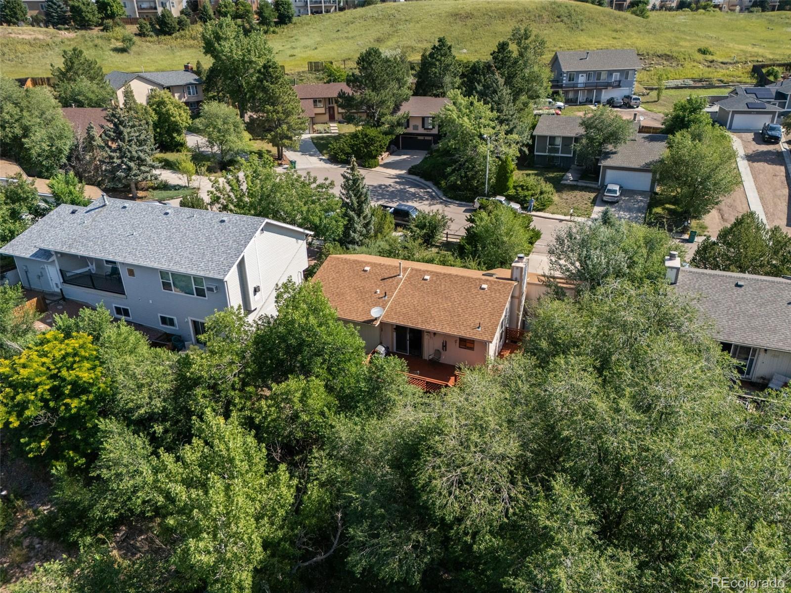 Welcome to this beautifully maintained 4-bedroom, 2-bathroom bi-level home tucked away on a quiet cul-de-sac in Cheyenne Meadows area. LOCATED close to shopping centers, grocery stores, parks and recreation areas, Ft Carson, Colorado Country Club, and more! This home offers soft, neutral colors, fresh interior paint, and brand new carpet in three of the bedrooms, a warm and welcoming atmosphere from the moment you step inside. Upstairs, you'll find a cozy living room complete with a fireplace—perfect for relaxing evenings—and easy access to the upper level of a spacious wrap-around deck, ideal for outdoor entertaining. The lower level features a large family room, providing ample space for gatherings, movie nights, or a play area. Outdoors, enjoy the beauty of four plum trees, two apple trees, a vibrant crabapple tree, and seasonal blooms including roses, peonies, tulips, and daffodils surrounding the home. Mature trees provide privacy and shade, while the two-level deck invites you to unwind and soak it all in. Additional highlights include a 2-car garage and a versatile layout suited for a variety of lifestyles. Don’t miss your opportunity to own this lovingly updated home with a stunning yard—schedule your showing today!
