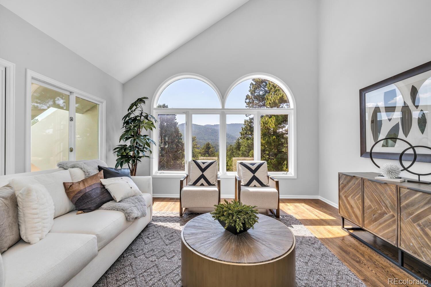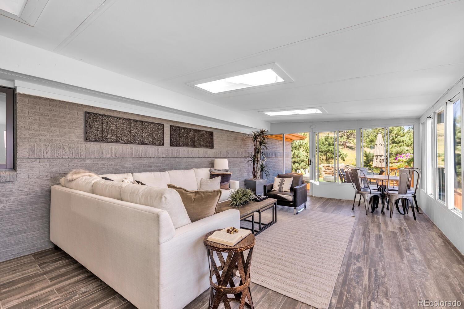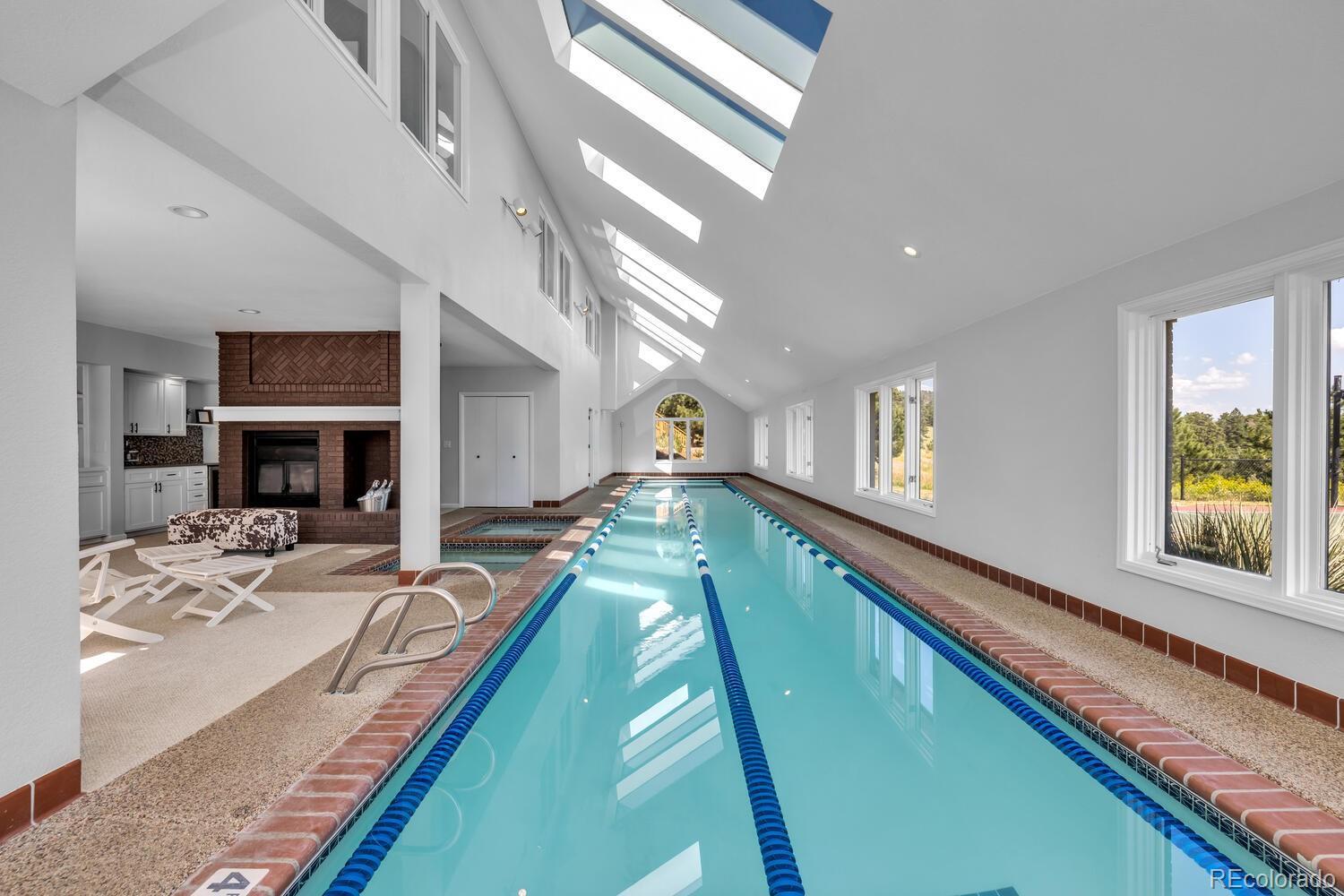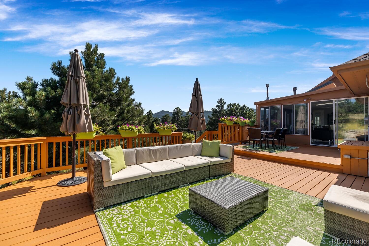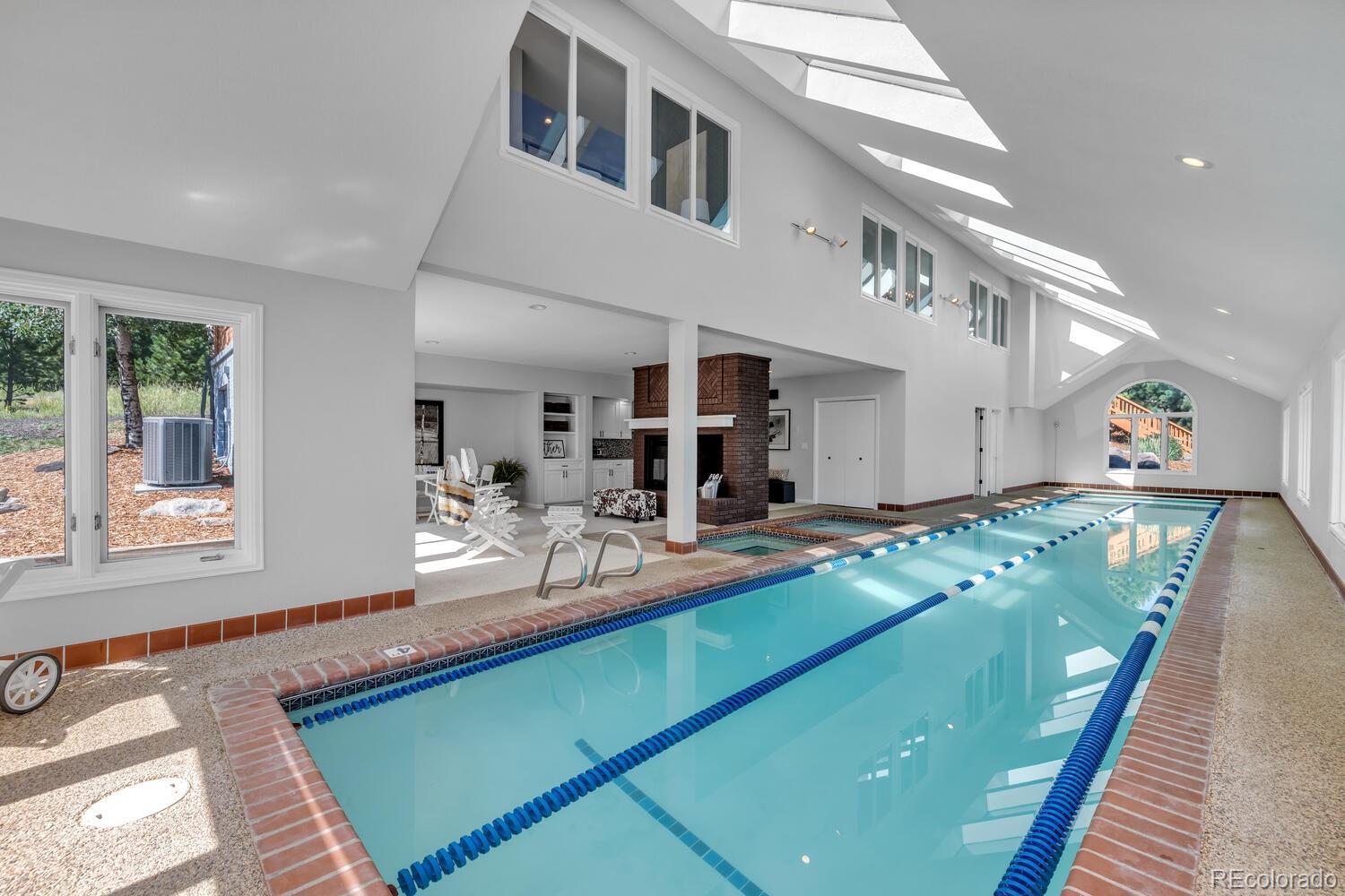 Imagine living in a home with resort amenities on 17 plus private acres, in a gated enclave of 3 homes, within 1 mile of world class hiking, mountain biking and horseback riding trails on Mount Falcon or Pence Park. Enjoy tennis, pickle ball, basketball and shuffleboard in your back yard. Your own private pool, hot tub and kiddie pool will also provide hours of entertainment. The views and privacy will be savored while you relax on the one of the three outdoor decks, one featuring a multi-level cascading water feature while watching wildlife pass through your property. The home has beautiful updates including two water systems (well and public), a newer roof, air conditioning, wood and gas fireplaces, new flooring, remodeled bathrooms, new stainless steel appliances and a newly painted exterior. Great location only 10 minutes from Evergreen and 10 minutes from Hwy. 285 and access to Denver. The home and land have 2 PIN numbers 455491 and 455492. No HOA or covenants, with frequent wildlife guests such as deer, elk, and turkeys. Adjacent to Mount Falcon Park which provides miles of hiking, biking, and horseback riding trails. Other local attractions include Red Rocks Amphitheater, Tiny Town, and endless parks and wildlife areas.