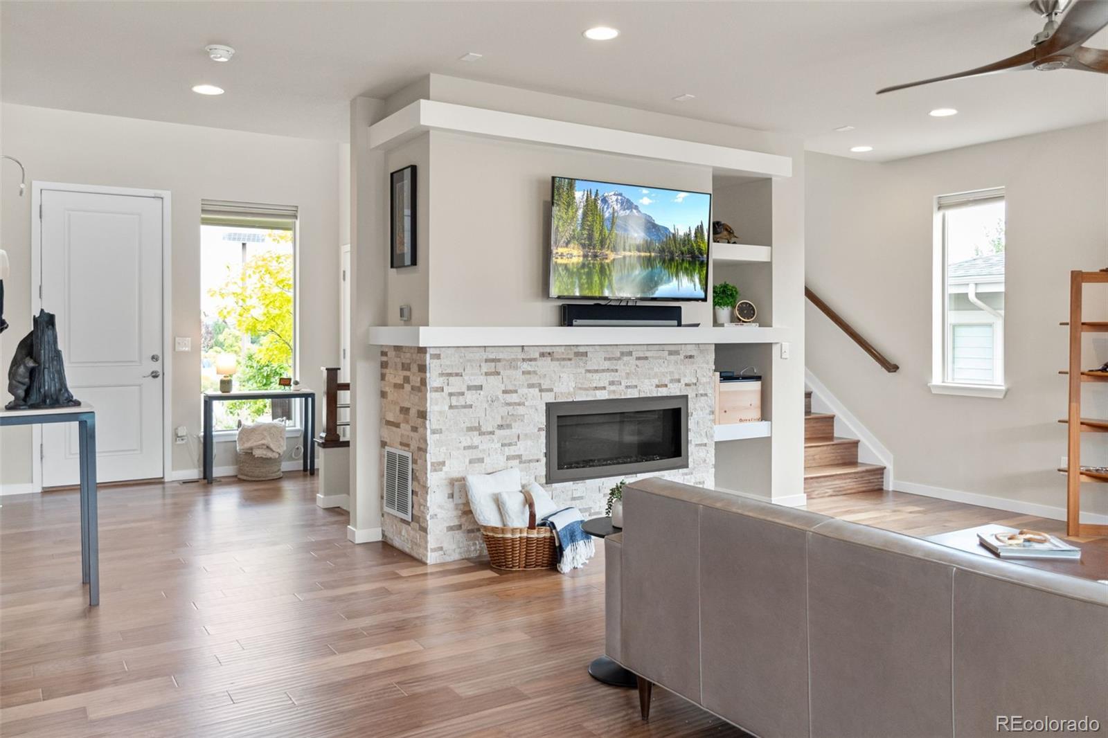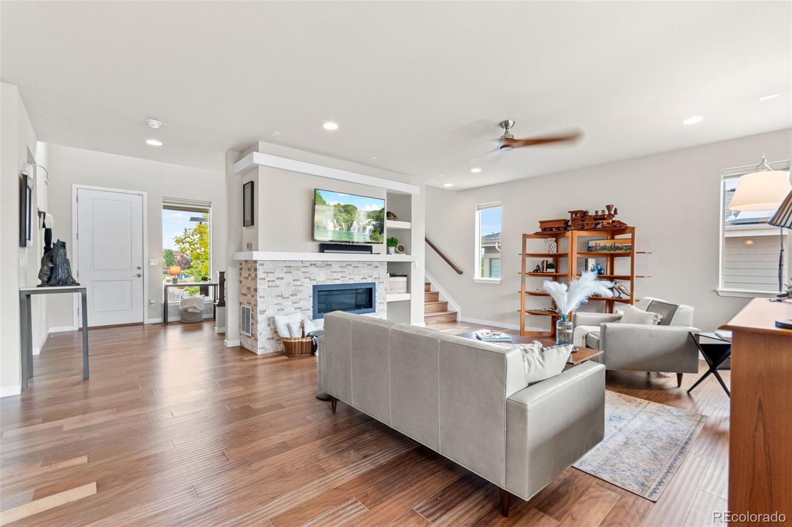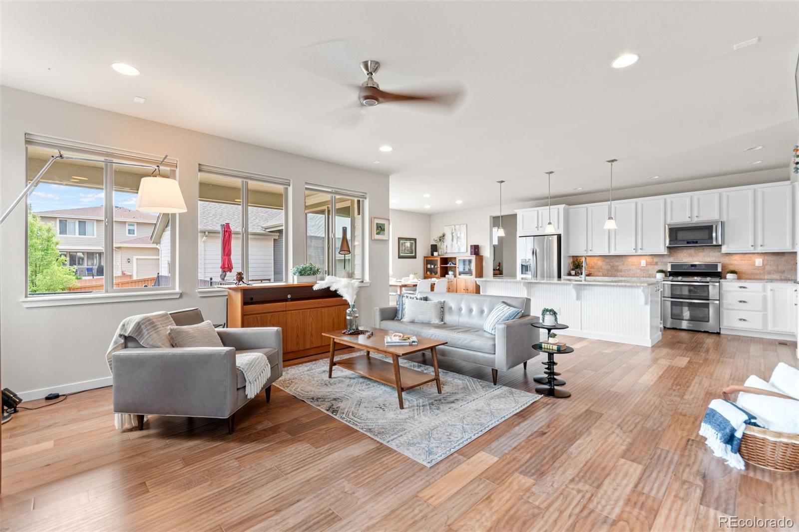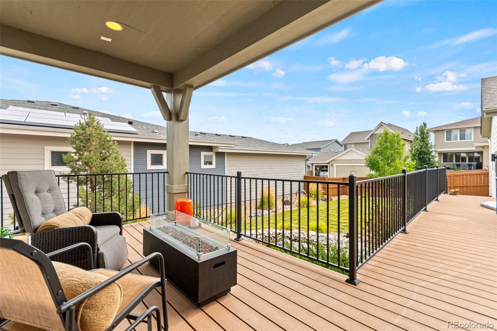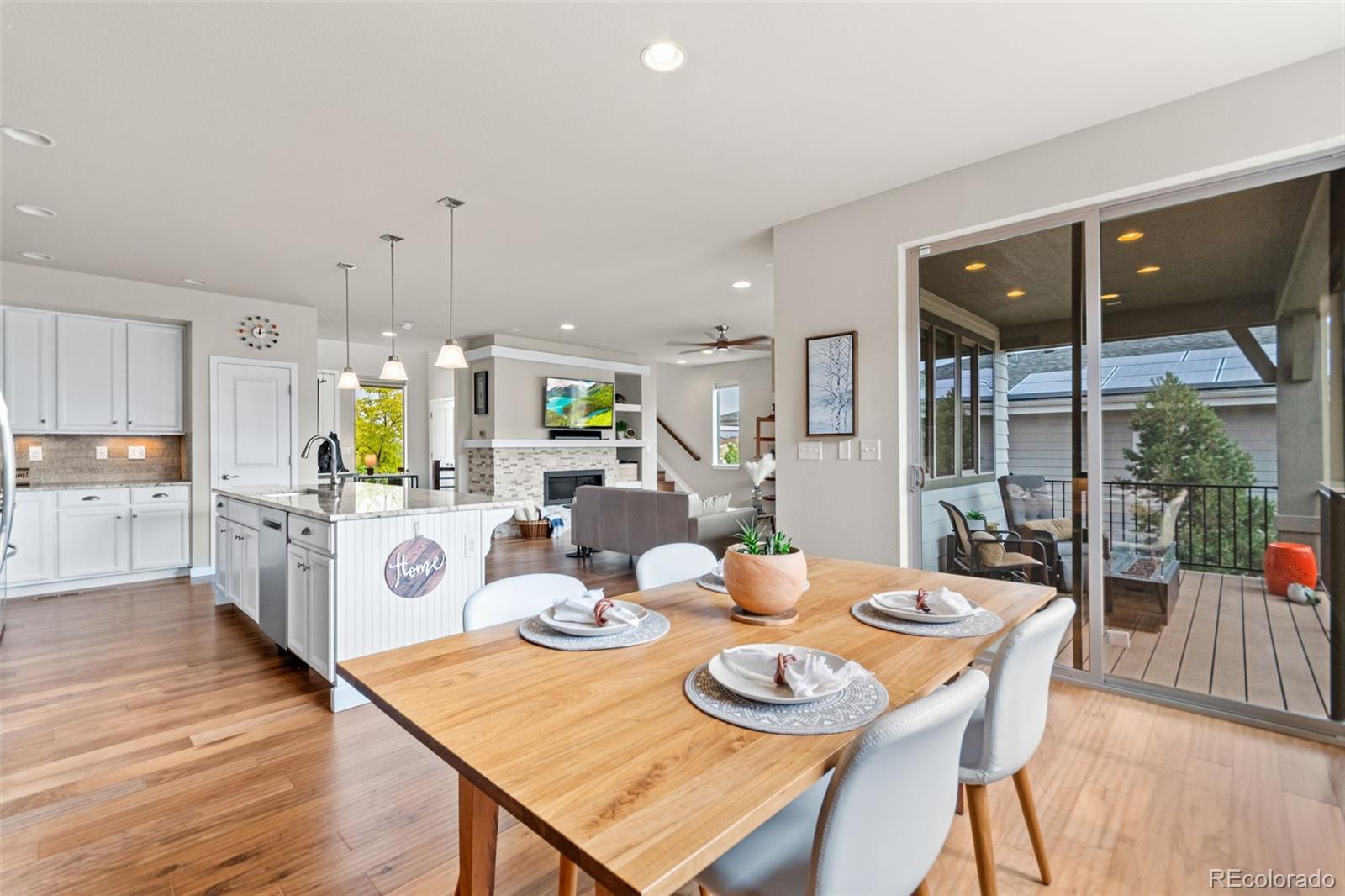 ***$10,000 SELLER CONCESSION with acceptable price and terms.*** Experience Colorado living at its finest in this meticulously upgraded 4-bedroom, 4-bath residence in picturesque NW Arvada. Built in 2014 and upgraded & maintained with care, this home blends timeless design with modern luxury. A welcoming covered front porch offers open space views before leading into light-filled interiors wrapped in hardwood flooring. The chef’s kitchen is both elegant and functional, showcasing Bosch and Whirlpool appliances, soft-close cabinetry with custom pullouts, granite countertops, and pantry. Designed for connection, the kitchen flows effortlessly into the dining area and living room where a stone fireplace, custom built-ins, and expansive windows frame the serene backyard. A main-level guest suite with private bath, powder room, and mudroom to the extended 3-car tandem garage enhance everyday ease and storage. Upstairs, a spacious loft anchors the laundry room and two bedrooms with a shared full bath and double sinks. The primary suite is a retreat of its own with a tray ceiling, electric fireplace, and spa-inspired ensuite featuring a large quartz vanity with dual sinks, upgraded lighting, oversized tiled shower with tile in-lay floor and a custom Container Store walk-in closet. The backyard offers a private oasis with a covered deck, built-in gas fireplace, privacy fencing, and a tranquil water feature—an ideal setting for both quiet mornings and lively gatherings year-round. Enjoy professionally maintained landscaping and snow removal (no shoveling!), two pools with clubhouses and fitness centers (one just a short walk away!), six parks, over 13 miles of trails, on-site K-8 School, and a mix of dining and retail just moments away. With its blend of style, comfort, and location, this residence is the perfect basecamp for all that Colorado living has to offer.