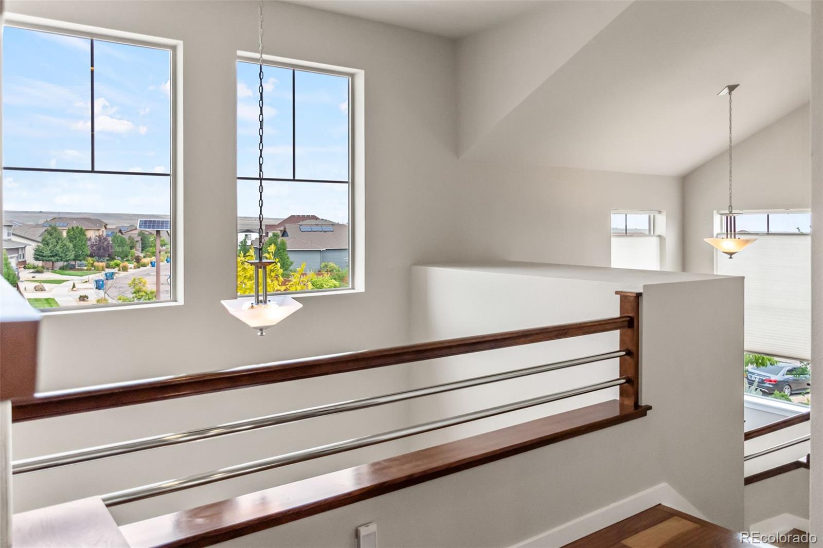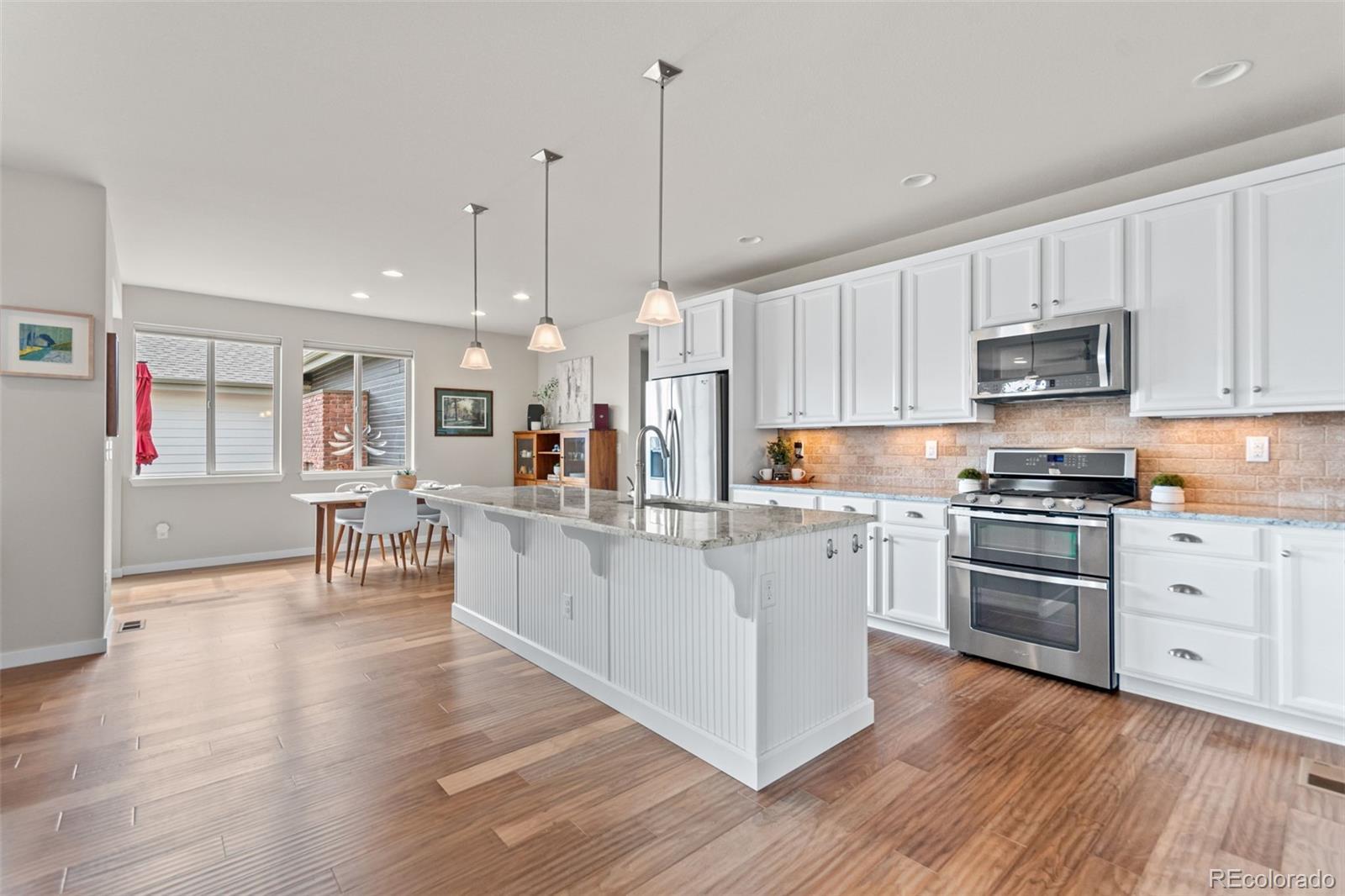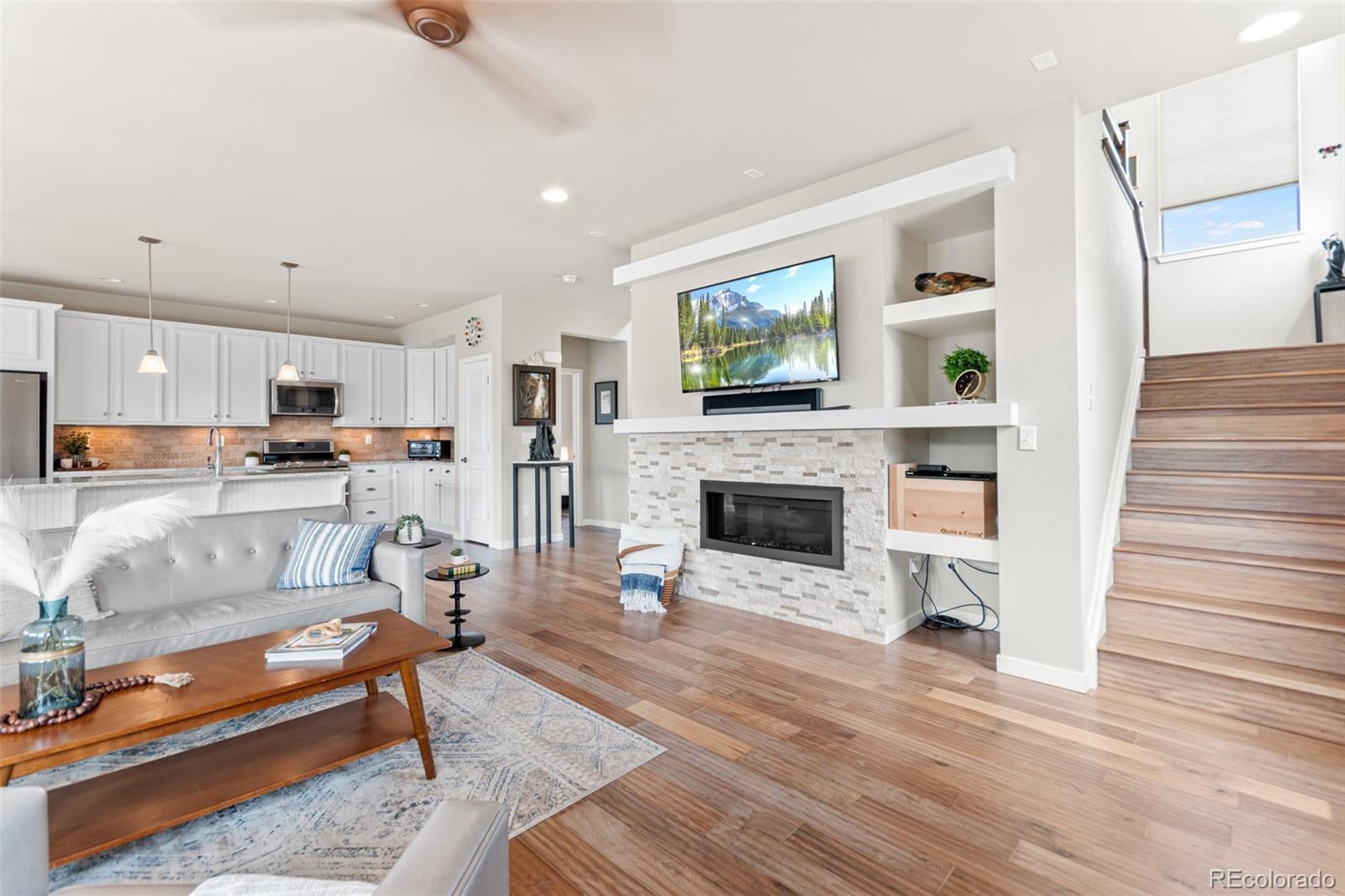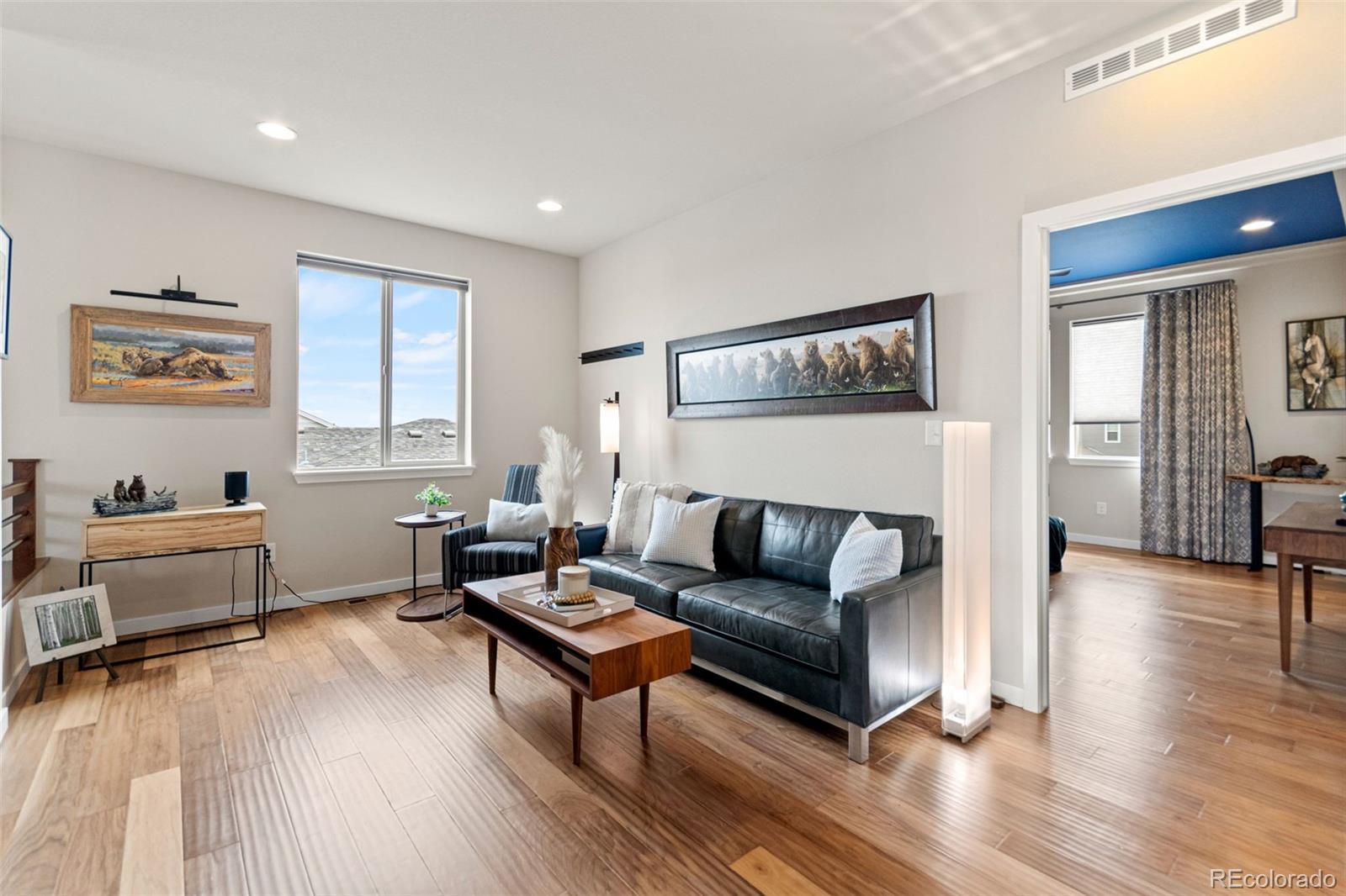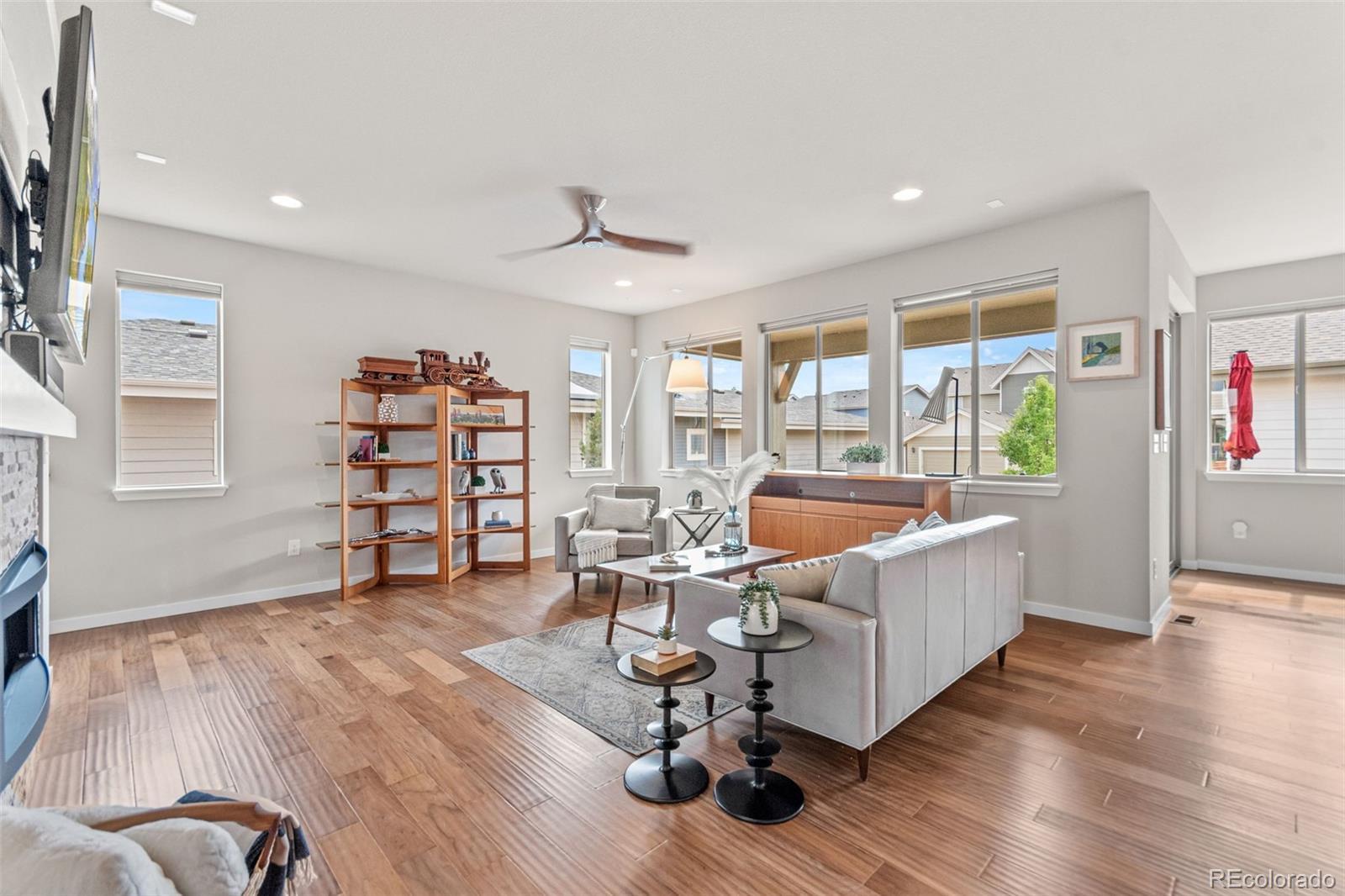 ***$10,000 SELLER CONCESSION with acceptable price and terms.*** Experience Colorado living at its finest in this meticulously upgraded 4-bedroom, 4-bath residence in picturesque NW Arvada. Built in 2014 and upgraded & maintained with care, this home blends timeless design with modern luxury. A welcoming covered front porch offers open space views before leading into light-filled interiors wrapped in hardwood flooring. The chef’s kitchen is both elegant and functional, showcasing Bosch and Whirlpool appliances, soft-close cabinetry with custom pullouts, granite countertops, and pantry. Designed for connection, the kitchen flows effortlessly into the dining area and living room where a stone fireplace, custom built-ins, and expansive windows frame the serene backyard. A main-level guest suite with private bath, powder room, and mudroom to the extended 3-car tandem garage enhance everyday ease and storage. Upstairs, a spacious loft anchors the laundry room and two bedrooms with a shared full bath and double sinks. The primary suite is a retreat of its own with a tray ceiling, electric fireplace, and spa-inspired ensuite featuring a large quartz vanity with dual sinks, upgraded lighting, oversized tiled shower with tile in-lay floor and a custom Container Store walk-in closet. The backyard offers a private oasis with a covered deck, built-in gas fireplace, privacy fencing, and a tranquil water feature—an ideal setting for both quiet mornings and lively gatherings year-round. Enjoy professionally maintained landscaping and snow removal (no shoveling!), two pools with clubhouses and fitness centers (one just a short walk away!), six parks, over 13 miles of trails, on-site K-8 School, and a mix of dining and retail just moments away. With its blend of style, comfort, and location, this residence is the perfect basecamp for all that Colorado living has to offer.