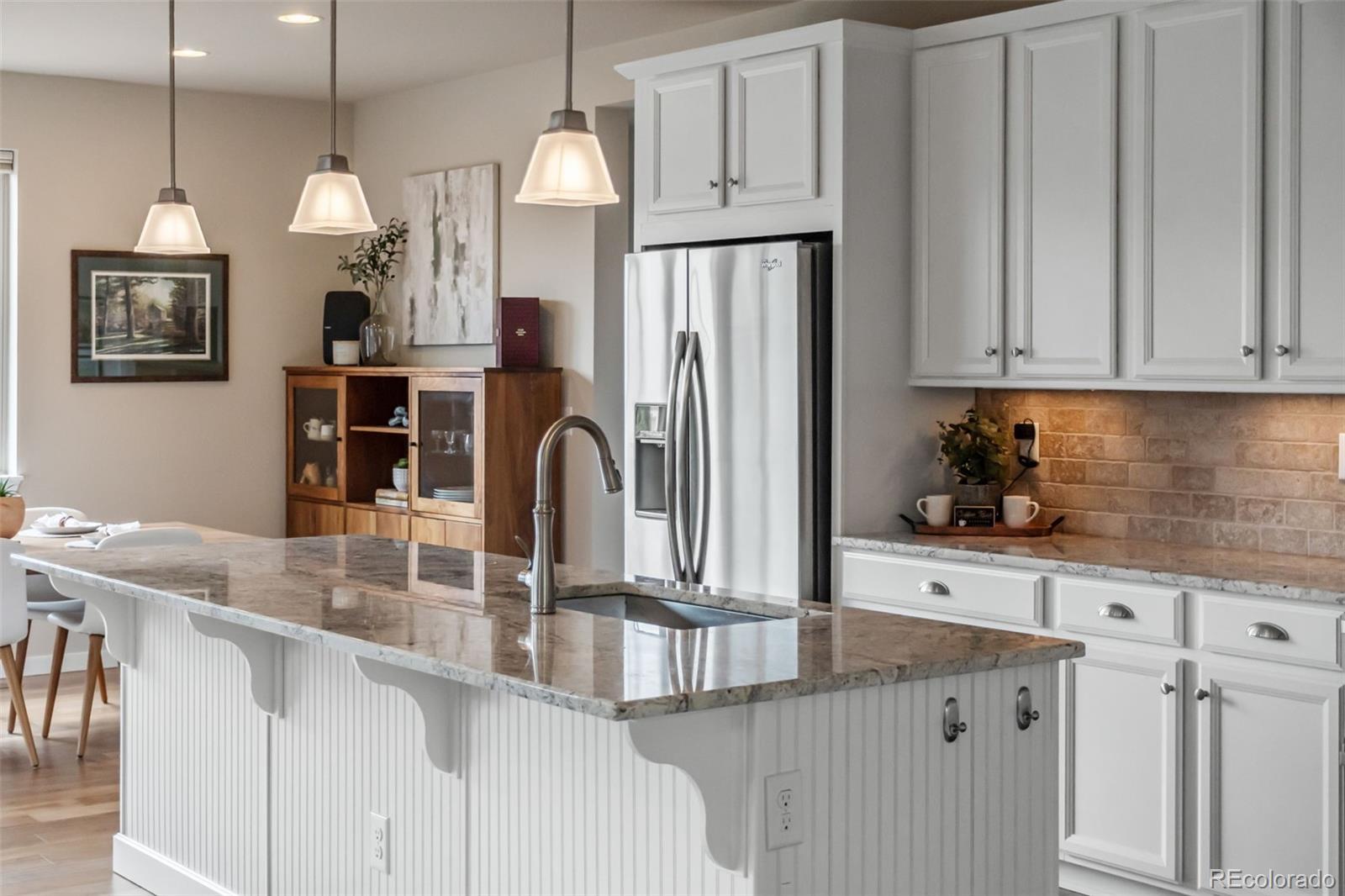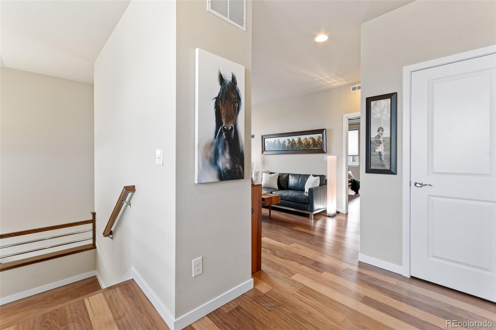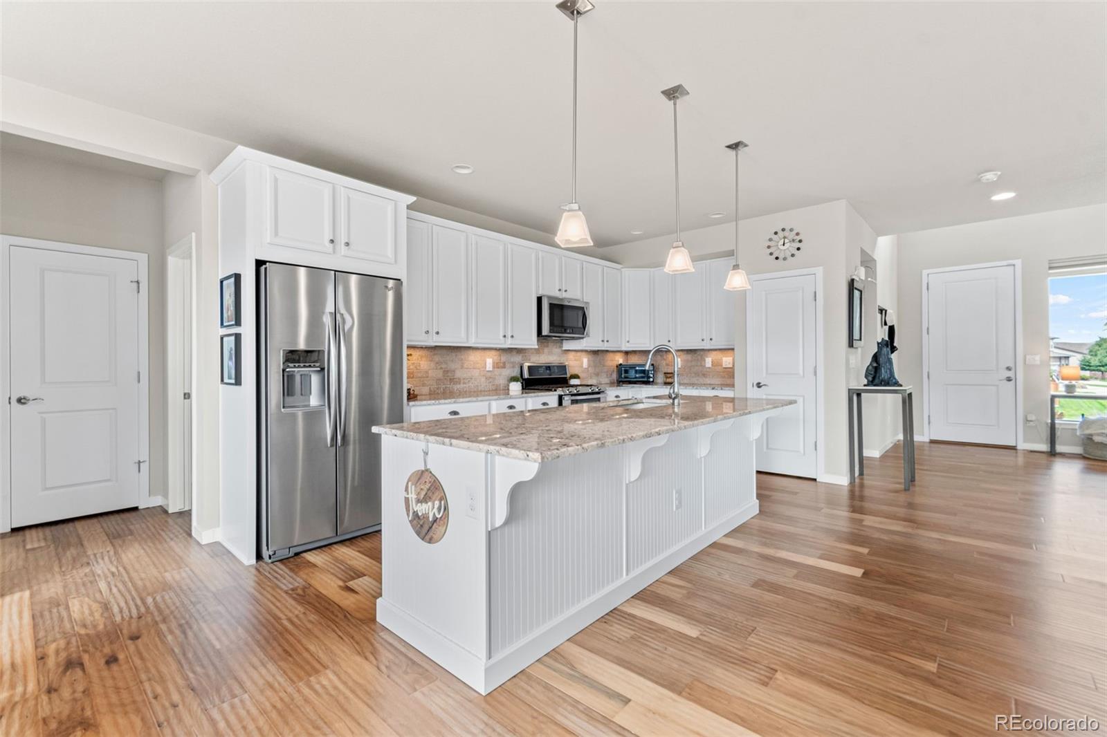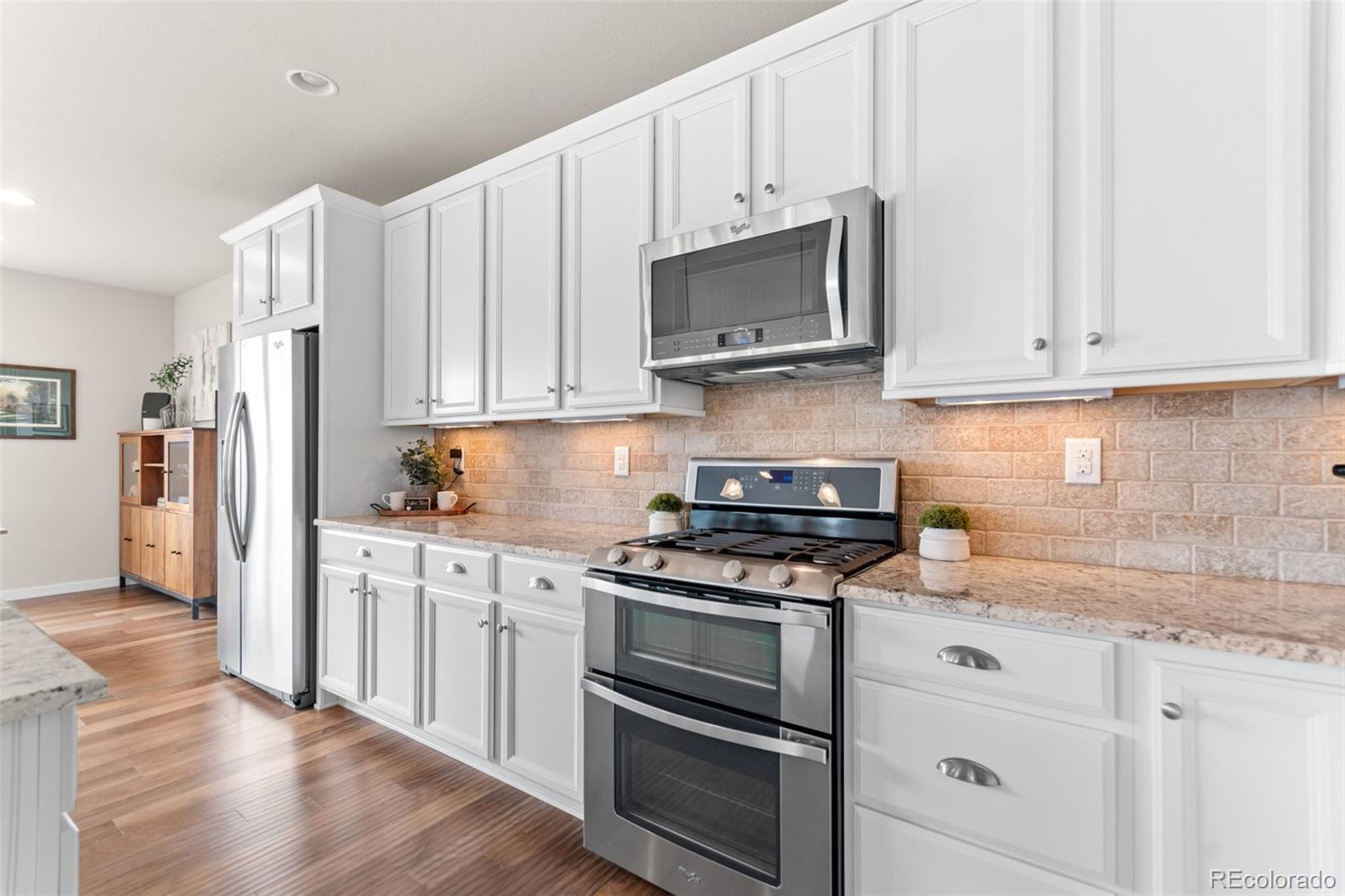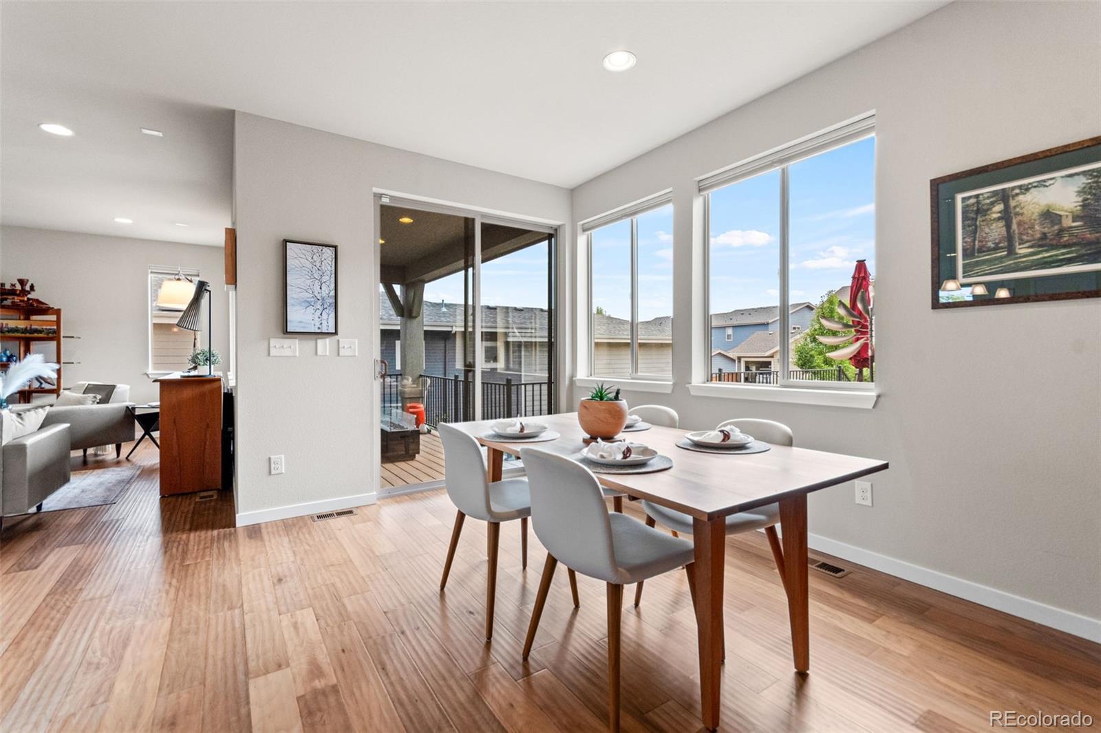 ***$10,000 SELLER CONCESSION with acceptable price and terms.*** Experience Colorado living at its finest in this meticulously upgraded 4-bedroom, 4-bath residence in picturesque NW Arvada. Built in 2014 and upgraded & maintained with care, this home blends timeless design with modern luxury. A welcoming covered front porch offers open space views before leading into light-filled interiors wrapped in hardwood flooring. The chef’s kitchen is both elegant and functional, showcasing Bosch and Whirlpool appliances, soft-close cabinetry with custom pullouts, granite countertops, and pantry. Designed for connection, the kitchen flows effortlessly into the dining area and living room where a stone fireplace, custom built-ins, and expansive windows frame the serene backyard. A main-level guest suite with private bath, powder room, and mudroom to the extended 3-car tandem garage enhance everyday ease and storage. Upstairs, a spacious loft anchors the laundry room and two bedrooms with a shared full bath and double sinks. The primary suite is a retreat of its own with a tray ceiling, electric fireplace, and spa-inspired ensuite featuring a large quartz vanity with dual sinks, upgraded lighting, oversized tiled shower with tile in-lay floor and a custom Container Store walk-in closet. The backyard offers a private oasis with a covered deck, built-in gas fireplace, privacy fencing, and a tranquil water feature—an ideal setting for both quiet mornings and lively gatherings year-round. Enjoy professionally maintained landscaping and snow removal (no shoveling!), two pools with clubhouses and fitness centers (one just a short walk away!), six parks, over 13 miles of trails, on-site K-8 School, and a mix of dining and retail just moments away. With its blend of style, comfort, and location, this residence is the perfect basecamp for all that Colorado living has to offer.