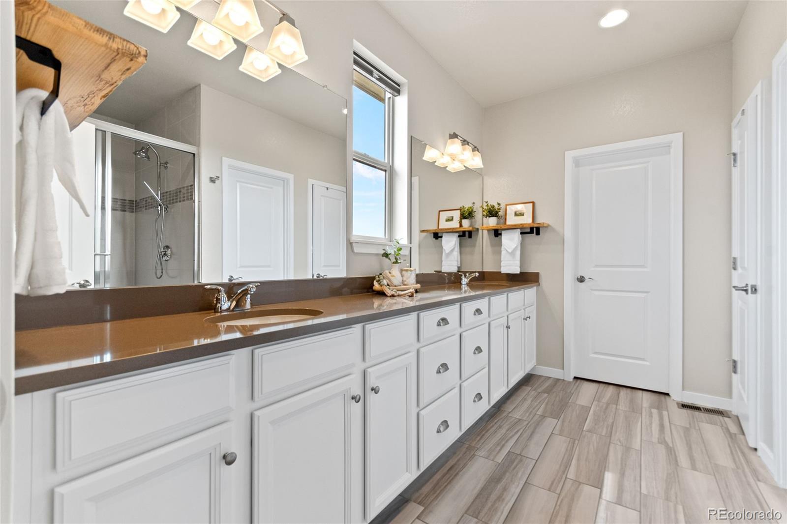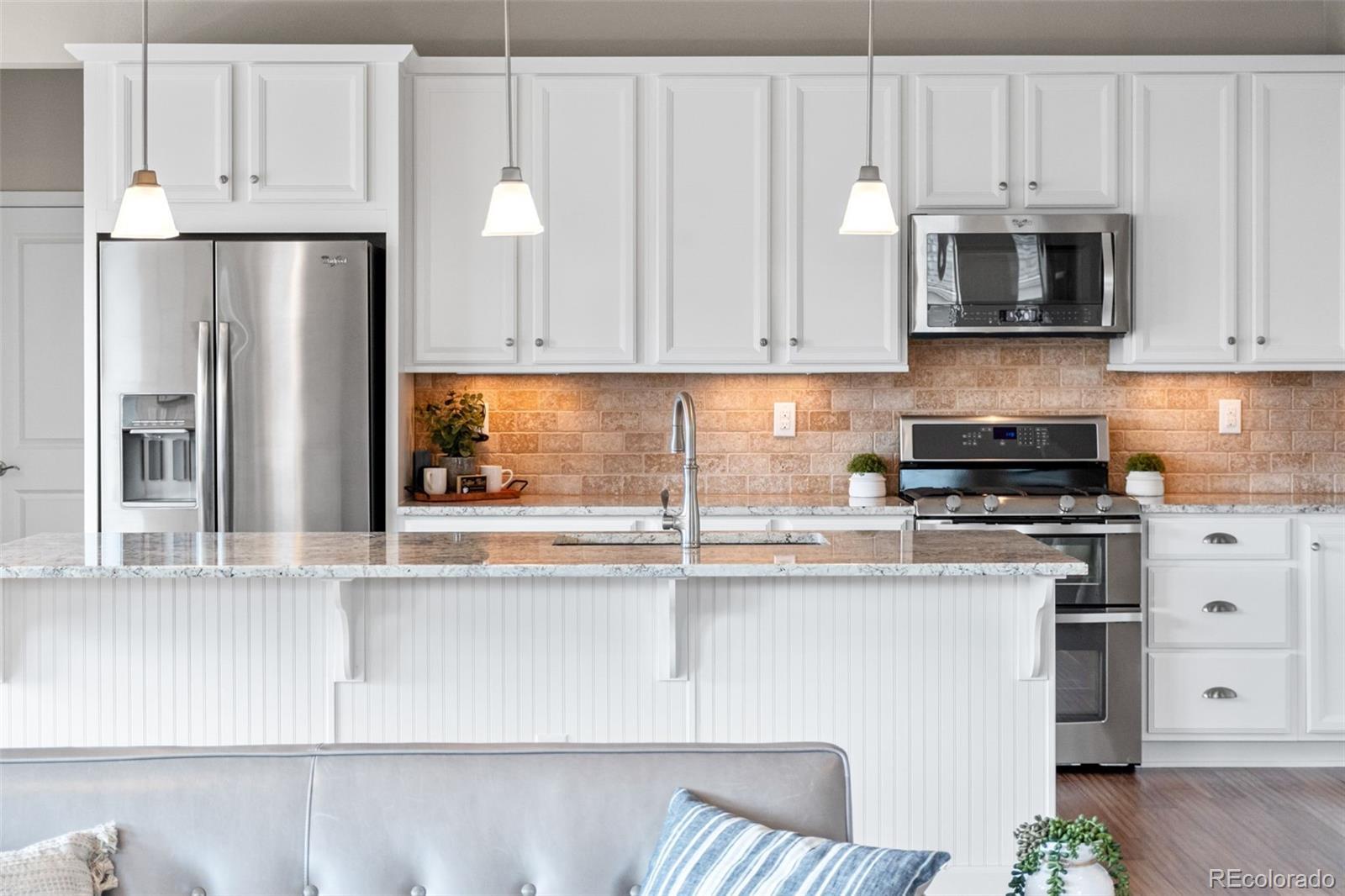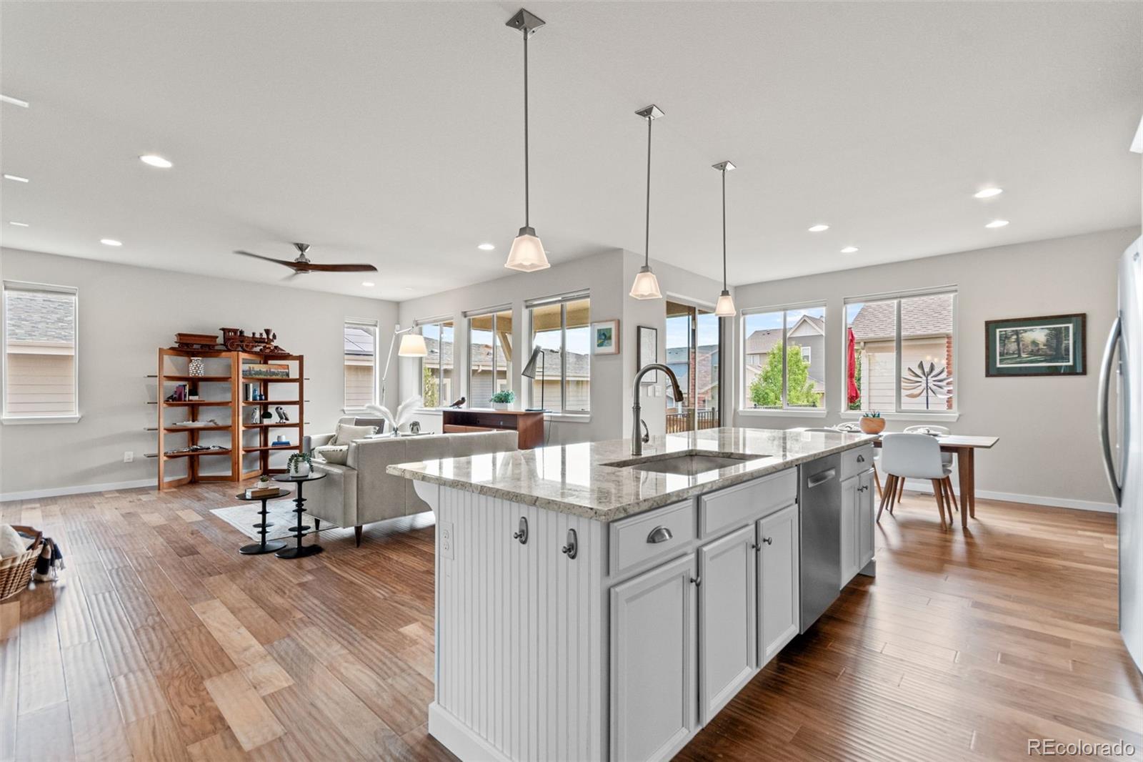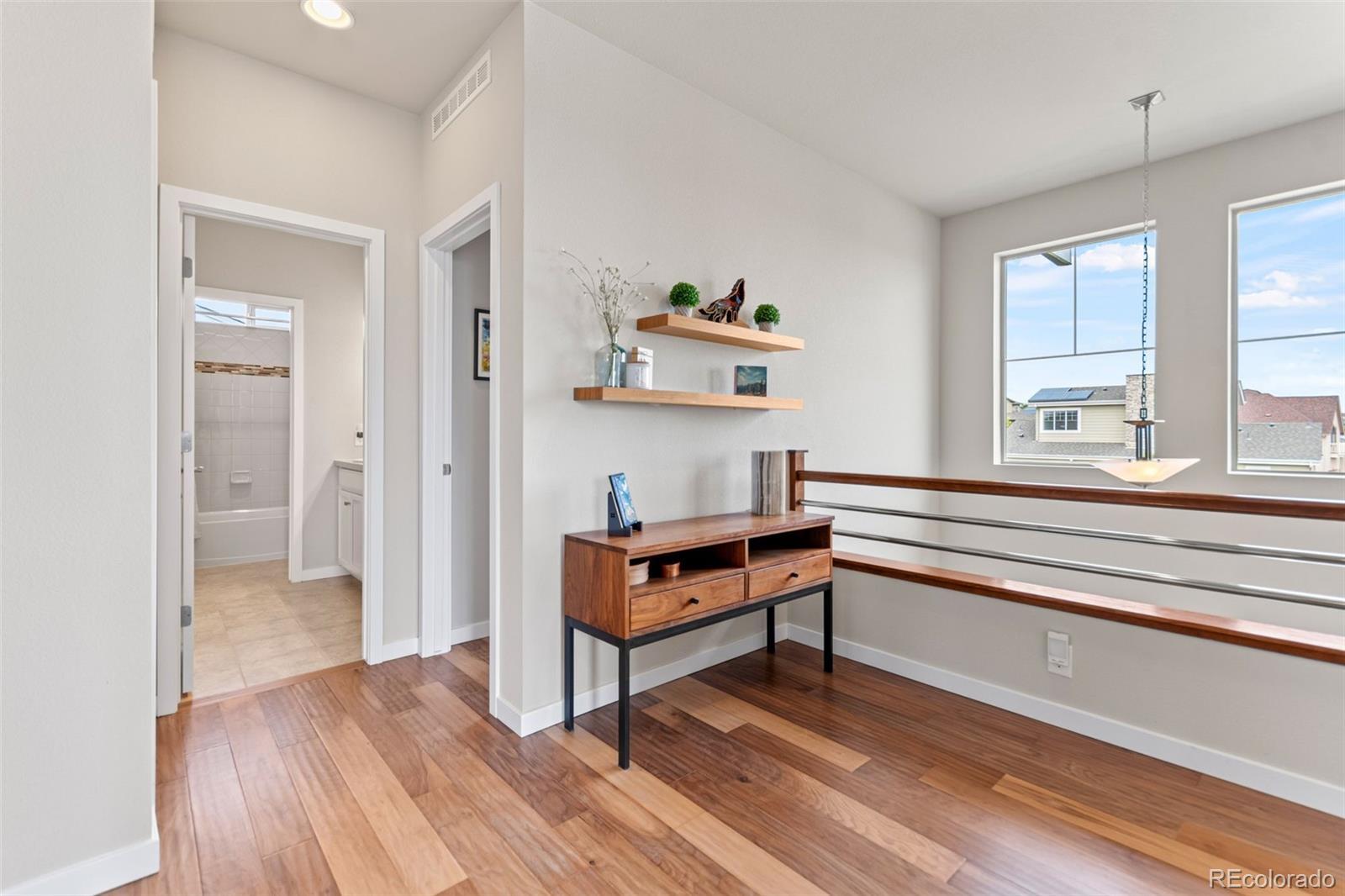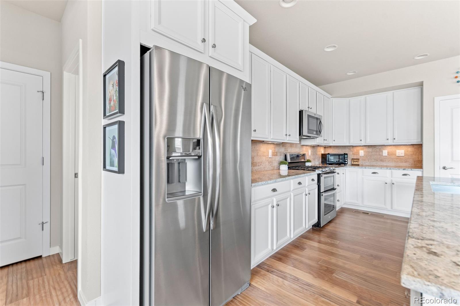 ***$10,000 SELLER CONCESSION with acceptable price and terms.*** Experience Colorado living at its finest in this meticulously upgraded 4-bedroom, 4-bath residence in picturesque NW Arvada. Built in 2014 and upgraded & maintained with care, this home blends timeless design with modern luxury. A welcoming covered front porch offers open space views before leading into light-filled interiors wrapped in hardwood flooring. The chef’s kitchen is both elegant and functional, showcasing Bosch and Whirlpool appliances, soft-close cabinetry with custom pullouts, granite countertops, and pantry. Designed for connection, the kitchen flows effortlessly into the dining area and living room where a stone fireplace, custom built-ins, and expansive windows frame the serene backyard. A main-level guest suite with private bath, powder room, and mudroom to the extended 3-car tandem garage enhance everyday ease and storage. Upstairs, a spacious loft anchors the laundry room and two bedrooms with a shared full bath and double sinks. The primary suite is a retreat of its own with a tray ceiling, electric fireplace, and spa-inspired ensuite featuring a large quartz vanity with dual sinks, upgraded lighting, oversized tiled shower with tile in-lay floor and a custom Container Store walk-in closet. The backyard offers a private oasis with a covered deck, built-in gas fireplace, privacy fencing, and a tranquil water feature—an ideal setting for both quiet mornings and lively gatherings year-round. Enjoy professionally maintained landscaping and snow removal (no shoveling!), two pools with clubhouses and fitness centers (one just a short walk away!), six parks, over 13 miles of trails, on-site K-8 School, and a mix of dining and retail just moments away. With its blend of style, comfort, and location, this residence is the perfect basecamp for all that Colorado living has to offer.