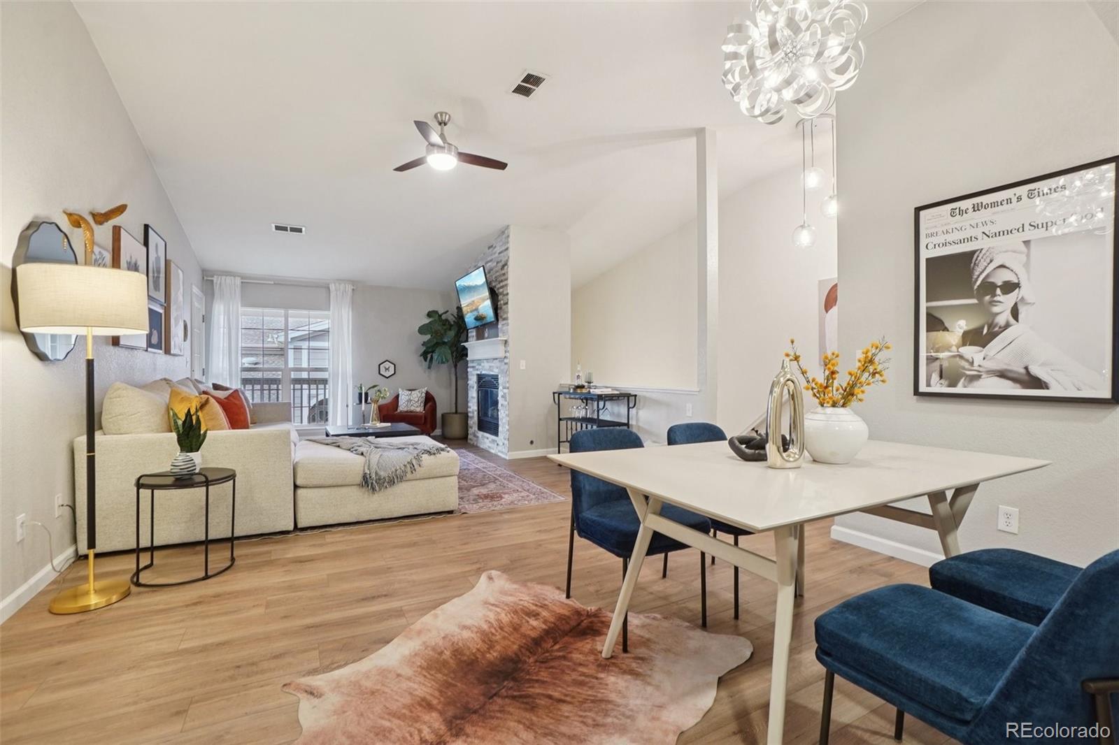 Welcome home to this stunningly renovated, move-in ready 2-bedroom, 2-bathroom condo featuring a rare tandem 2-car garage, located in the highly sought-after Cherry Creek School District. With over $100,000 in thoughtful updates completed within the last five years, this residence stands out as the most extensively upgraded home in the community. Every detail has been elevated with modern finishes - including high-end quartz countertops in the kitchen and both bathrooms, brand-new cabinetry, luxury plank flooring, new stainless steel appliances, updated recessed and designer lighting, and sleek matte black hardware throughout. The open-concept floor plan is enhanced by soaring vaulted ceilings, creating an airy yet comfortable atmosphere. The kitchen shines with white shaker cabinetry, an oversized pantry, and abundant storage. The adjoining living room features a cozy gas fireplace framed by a custom stone surround and an abundance of natural light. Retreat to the primary suite with its vaulted ceilings, spa-inspired 5-piece bathroom, dual vanities, and massive walk-in closet complete with built-in shelving. A private, covered balcony extends the living space - ideal for your morning coffee or evening gatherings. The secondary bedroom provides flexibility as a welcoming guest room or bright home office. Additional highlights include direct entry from both the garage and front entrance, freshly painted and sealed exteriors completed by the HOA, and peace of mind with a well-managed and comprehensive HOA. The location is unbeatable - just minutes from Cherry Creek State Park, DTC, neighborhood trails, ponds, and parks. Don’t miss the opportunity to own this beautifully upgraded home that blends modern style, comfort, and convenience. Schedule your private showing today! This property is also available for rent.