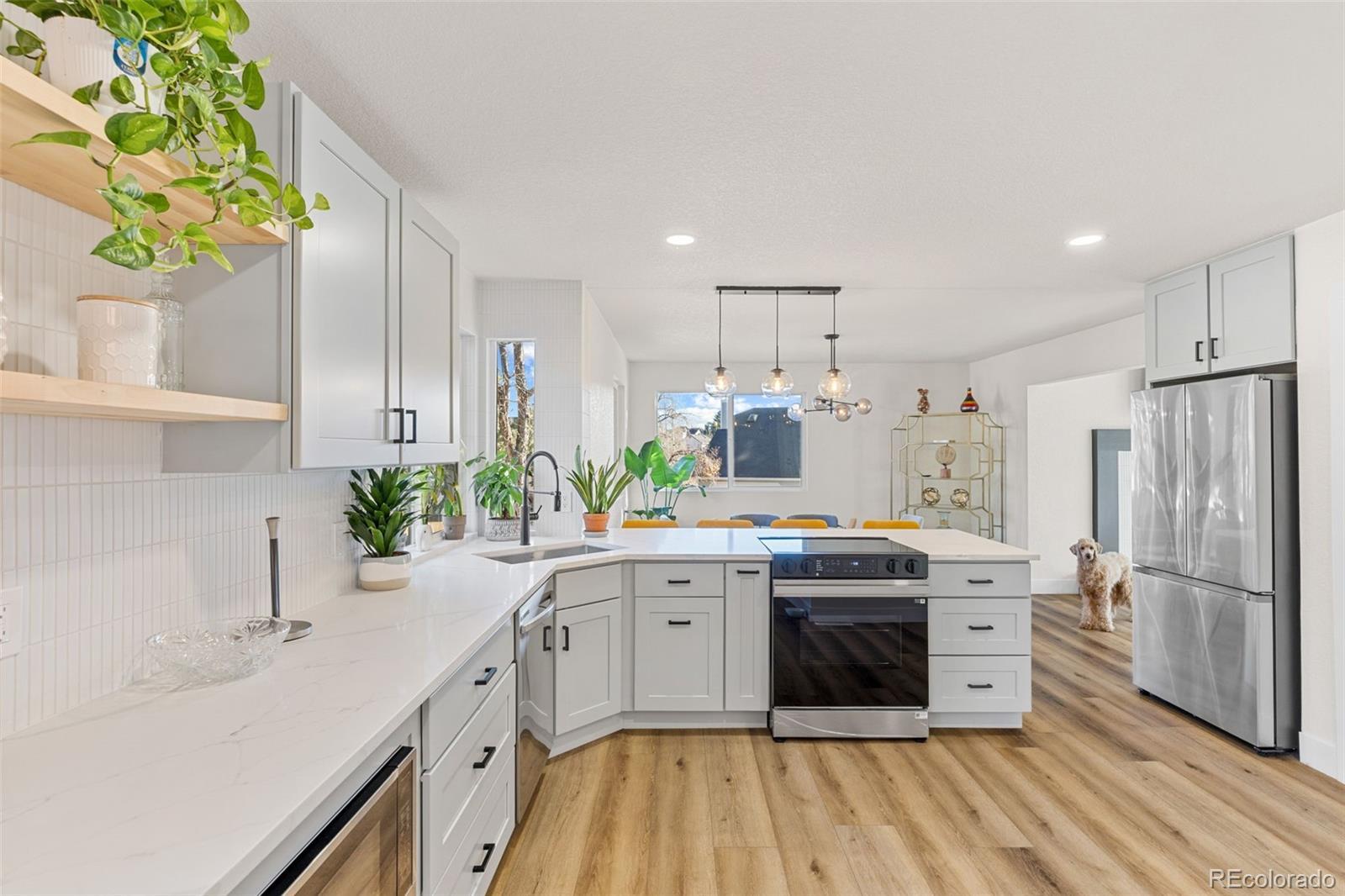 This fully renovated residence is a modern showcase of style, craftsmanship, and thoughtful design. The moment you step inside, soaring ceilings and abundant natural light welcome you in, highlighted by brand-new windows that frame the home’s beautifully updated finishes. The reimagined kitchen is a true chef’s delight, featuring sleek countertops, custom cabinetry, and premium stainless-steel appliances. The expansive primary suite serves as a serene retreat with its generous layout and spa-inspired bathroom, complete with chic contemporary finishes and modern fixtures. All additional bedrooms are spacious and offer excellent storage. The newly finished basement is another standout, offering high ceilings and incredible flexibility—perfect for a game room, home theater, fitness space, or an additional entertainment area tailored to your lifestyle. Situated on a generous 9,000-square-foot lot, the expansive backyard provides endless potential for outdoor enjoyment—ideal for gatherings, gardening, play areas, or creating your own private sanctuary. With impeccable design, a functional and spacious layout, and a prime location within the sought-after Cherry Creek School District, this home blends luxury with everyday convenience. Close to top-rated schools, parks, and shopping, it captures the very best of modern living. Don’t miss your chance to call this stunning property home!