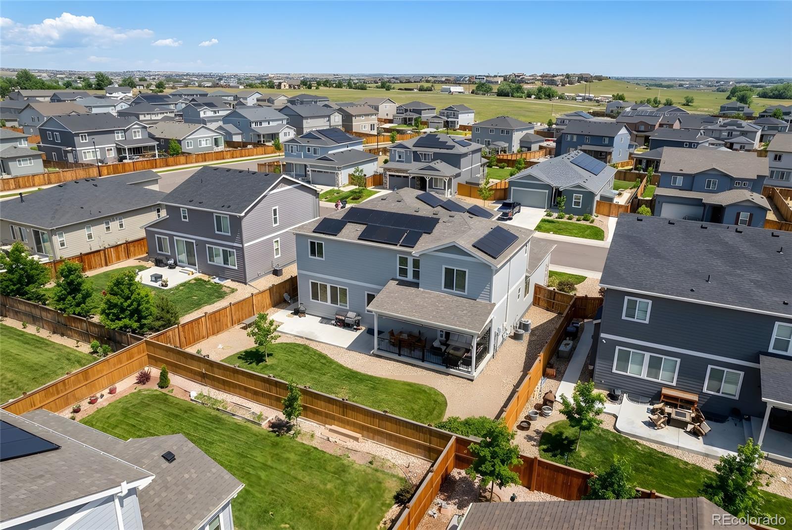 Welcome to one of the largest models in the beautiful Mayfield subdivision with 4,890 total square feet of space to live, grow, and enjoy. This five-bedroom, four full bath home gives you room for everyone and everything. Step inside to an open and bright main level with a large great room and cozy gas fireplace. The chef’s kitchen is the heart of the home with an oversized island, walk-in pantry, and a separate butler and coffee station that makes hosting easy and fun. A main level bedroom or study and full bath offer comfort and flexibility. You will love the built-in surround sound speakers and the smart layout that includes a separate entry from the oversized three car garage with a walk-in coat closet. Upstairs, relax in the generous primary suite with a large walk-in closet and spa-like five-piece bath. One bedroom has its own private en-suite bath, while two more bedrooms share an additional Jack & Jill bathroom. A spacious loft and upstairs laundry add even more convenience. The unfinished basement is ready for your ideas and future plans. Outside, enjoy your expanded covered patio with gas line, a fully fenced yard, and peaceful greenbelt views. The fully insulated oversized three car garage includes an electric car charging station and overhead storage shelves. Seller-owned solar panels and exterior LED lighting on the front of the home add extra value and style. This is the only home of this size available in this amazing and convenient community. Do not miss your chance to make it yours. *Seller offering a $15,000 Seller Concession incentive to buyers with full price offer.