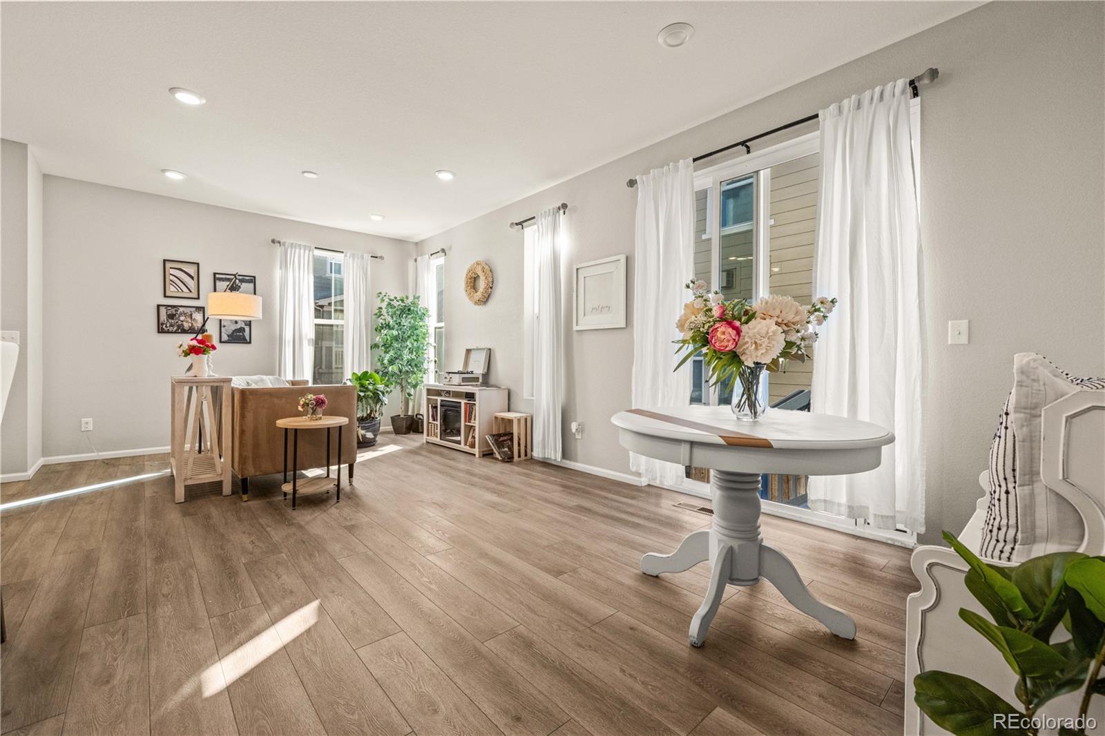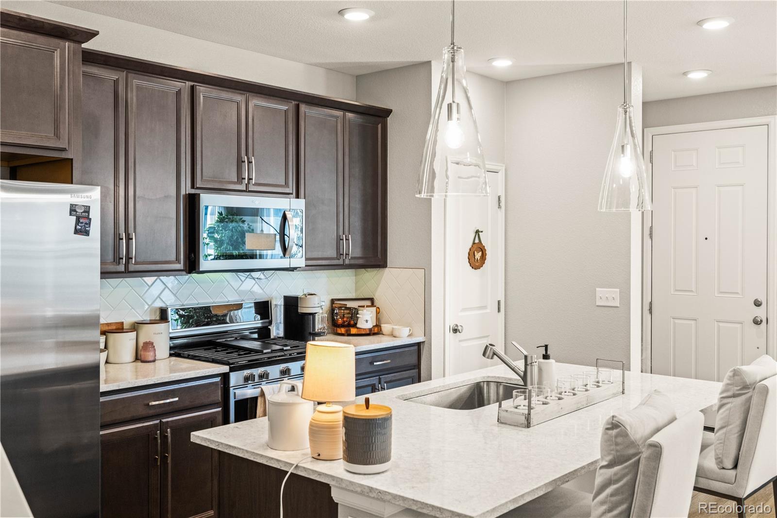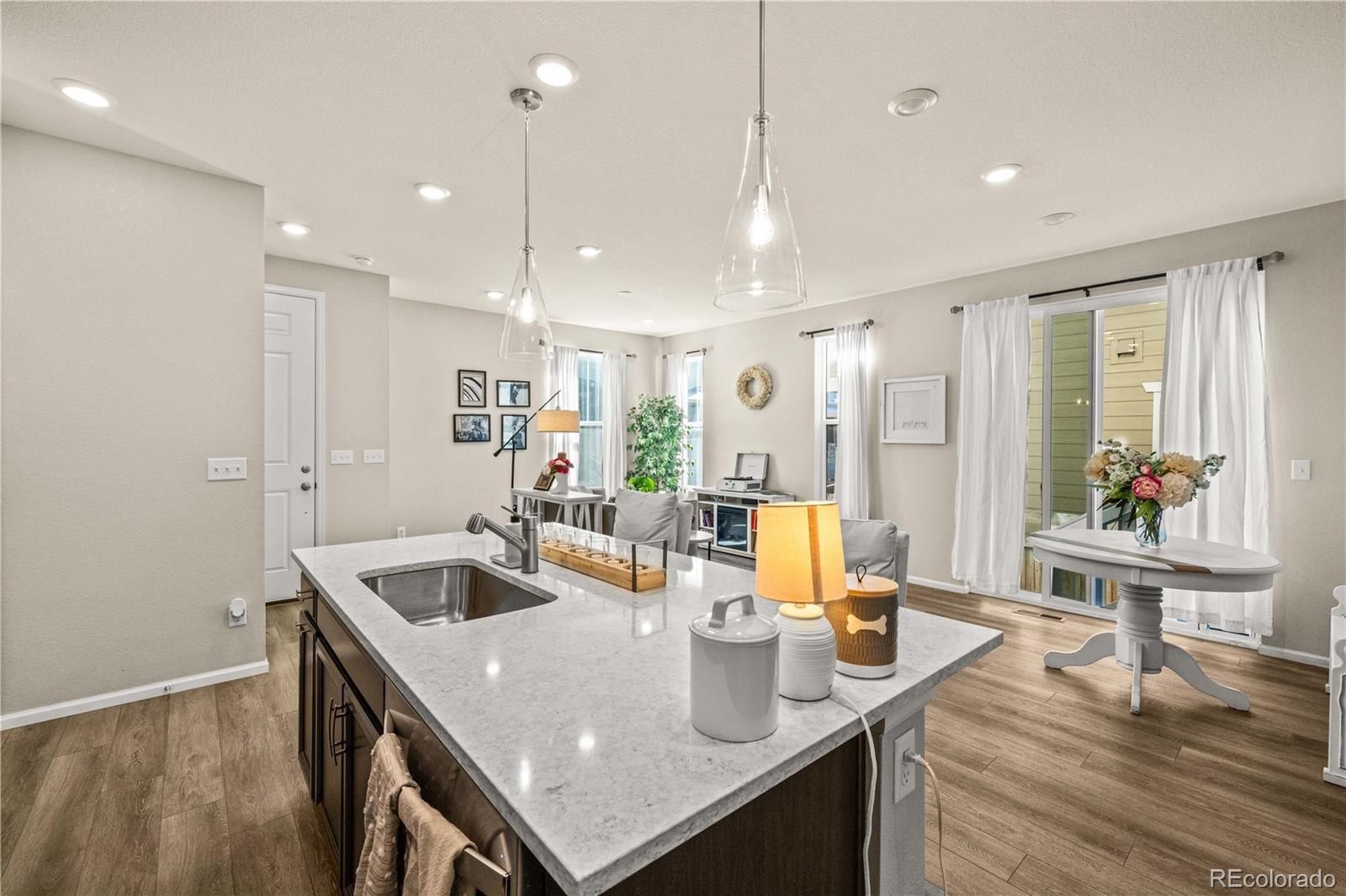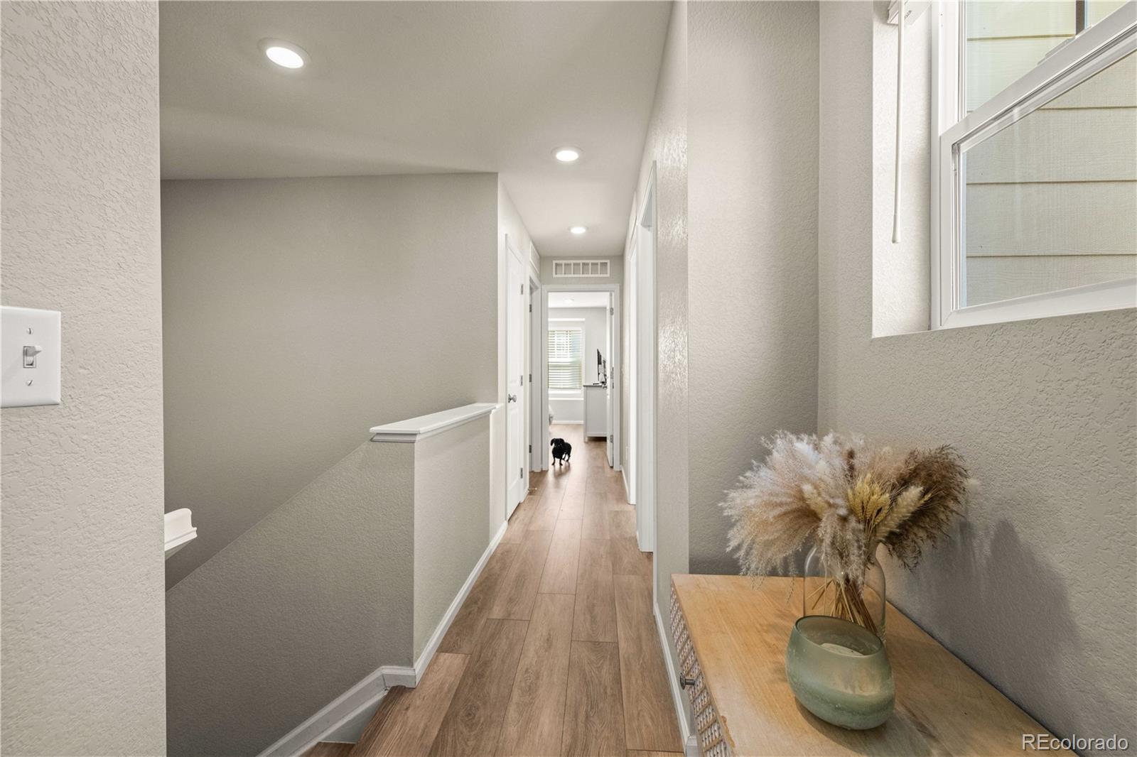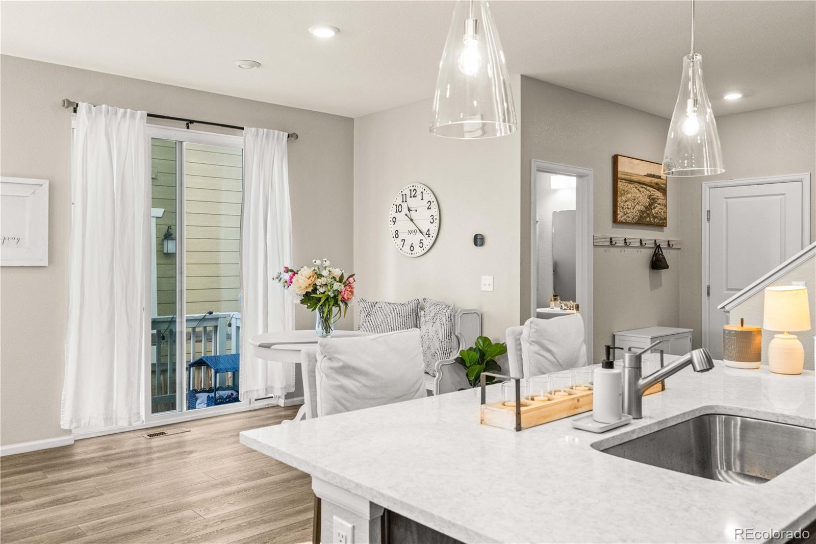 Welcome to 4346 S Netherland St! Built in 2020 in Aurora’s Copperleaf neighborhood, the home offers modern finishes, natural light, and a layout designed for everyday living. The main floor brings people together with an open living, kitchen, and dining area that feels bright and connected. Granite countertops, dark wood cabinetry, a large island with counter seating, and a pantry make the kitchen both functional and inviting. Recessed lighting and expansive windows keep the space light-filled throughout the day. A sliding glass door leads to a partially turfed side yard, creating an easy, low-maintenance outdoor extension of the home. Upstairs, all three bedrooms are located on the same level, along with a dedicated laundry room for added convenience. The primary suite features a walk-in closet, and a private ¾ bath with walk-in shower. Two additional bedrooms share a full bath, each finished with tile flooring, granite countertops, and coordinating cabinetry. New vinyl flooring throughout the upper level adds a clean, updated feel. The unfinished 649-square-foot basement offers room to grow, whether you envision a future family room, fitness space, home office, or additional storage. Living in Copperleaf means enjoying access to a clubhouse, pool, playground, and neighborhood trails, with Southlands shopping and dining just minutes away. Convenient access to E-470, I-225, and Denver International Airport makes commuting and travel simple across the Denver metro area and beyond. Modern construction, flexible space, and community amenities come together here in a home built for both today and what’s next.
