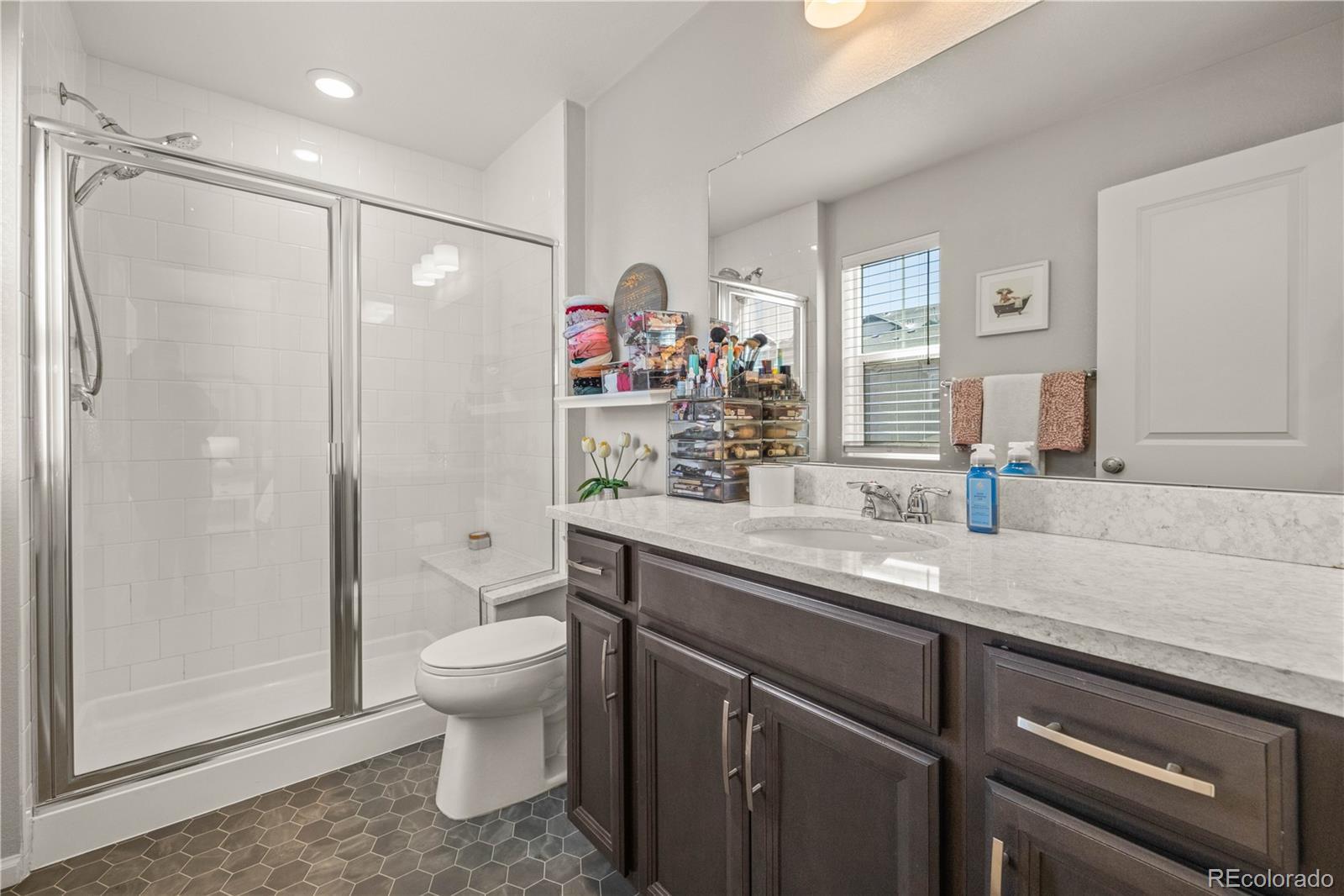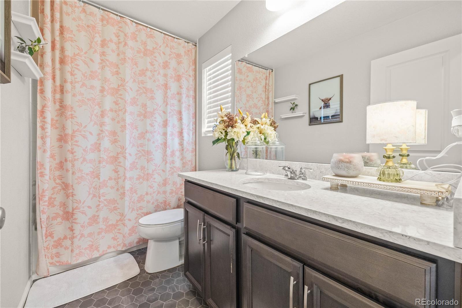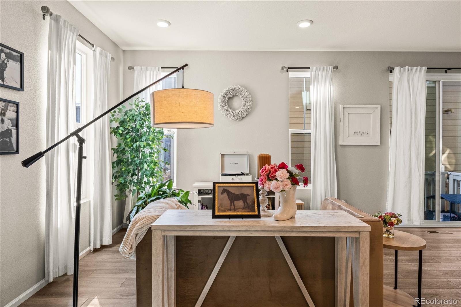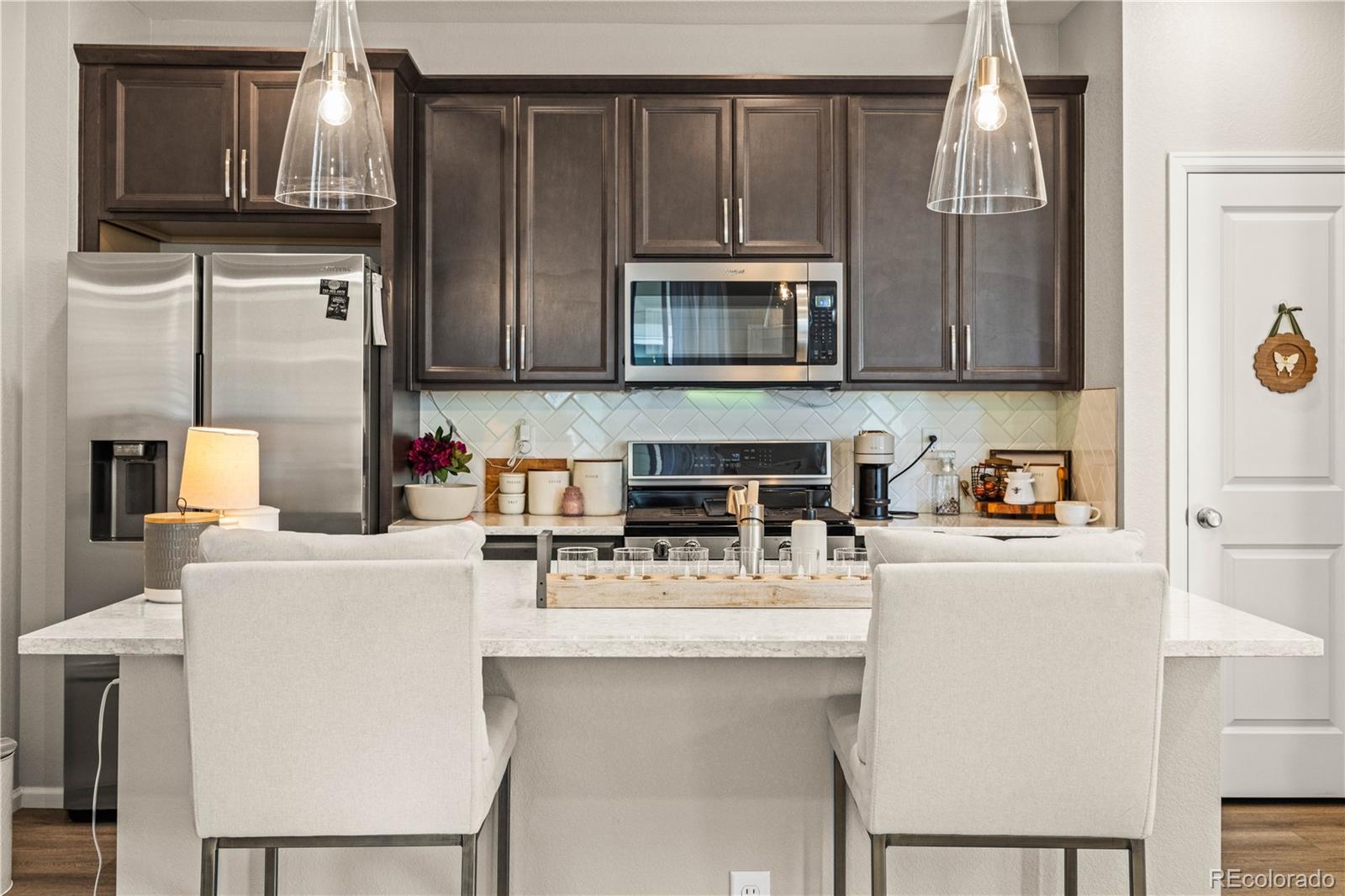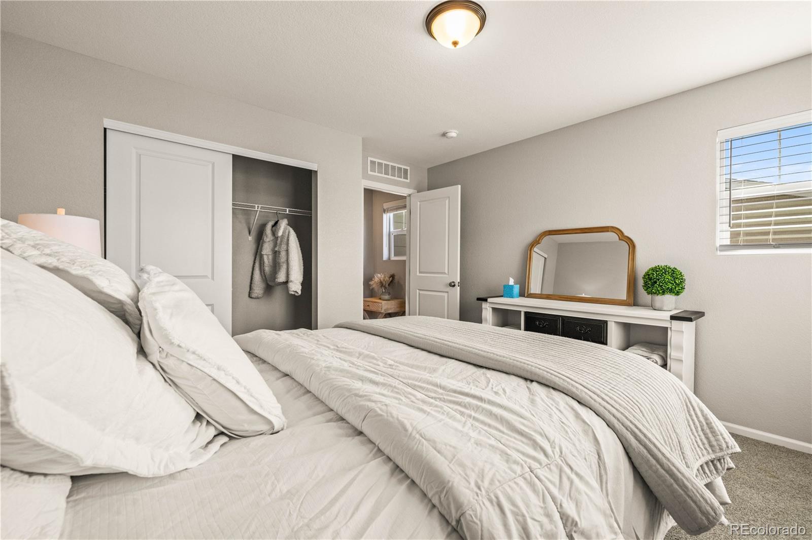 Welcome to 4346 S Netherland St! Built in 2020 in Aurora’s Copperleaf neighborhood, the home offers modern finishes, natural light, and a layout designed for everyday living. The main floor brings people together with an open living, kitchen, and dining area that feels bright and connected. Granite countertops, dark wood cabinetry, a large island with counter seating, and a pantry make the kitchen both functional and inviting. Recessed lighting and expansive windows keep the space light-filled throughout the day. A sliding glass door leads to a partially turfed side yard, creating an easy, low-maintenance outdoor extension of the home. Upstairs, all three bedrooms are located on the same level, along with a dedicated laundry room for added convenience. The primary suite features a walk-in closet, and a private ¾ bath with walk-in shower. Two additional bedrooms share a full bath, each finished with tile flooring, granite countertops, and coordinating cabinetry. New vinyl flooring throughout the upper level adds a clean, updated feel. The unfinished 649-square-foot basement offers room to grow, whether you envision a future family room, fitness space, home office, or additional storage. Living in Copperleaf means enjoying access to a clubhouse, pool, playground, and neighborhood trails, with Southlands shopping and dining just minutes away. Convenient access to E-470, I-225, and Denver International Airport makes commuting and travel simple across the Denver metro area and beyond. Modern construction, flexible space, and community amenities come together here in a home built for both today and what’s next.