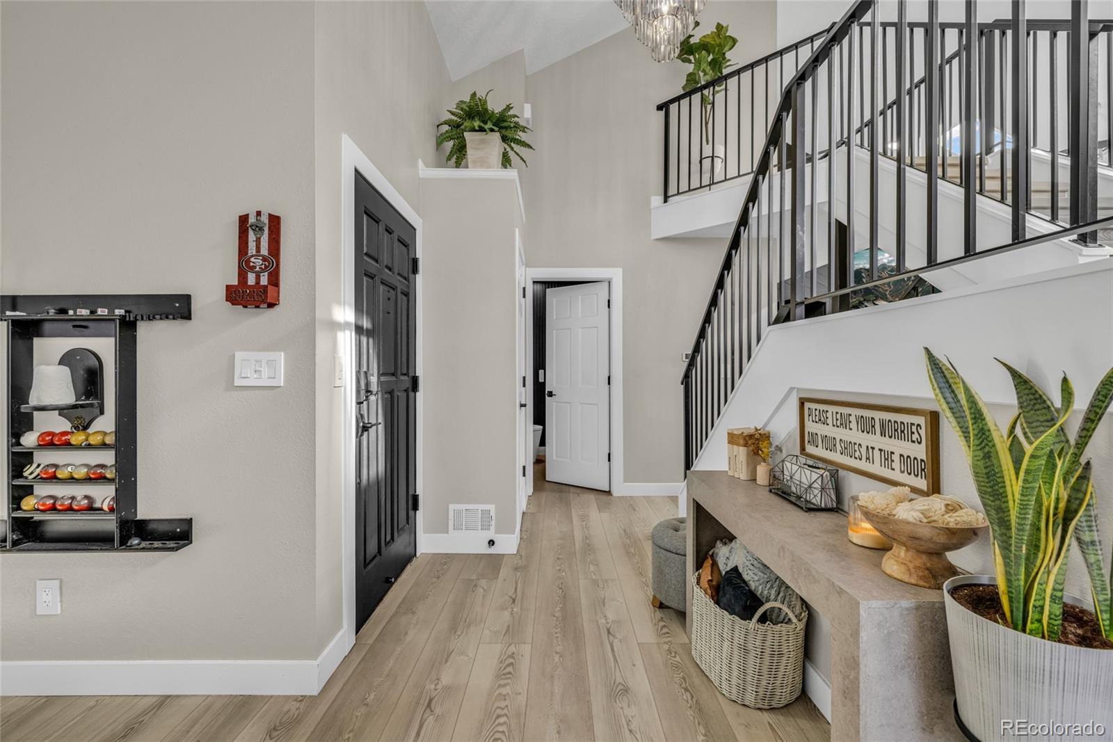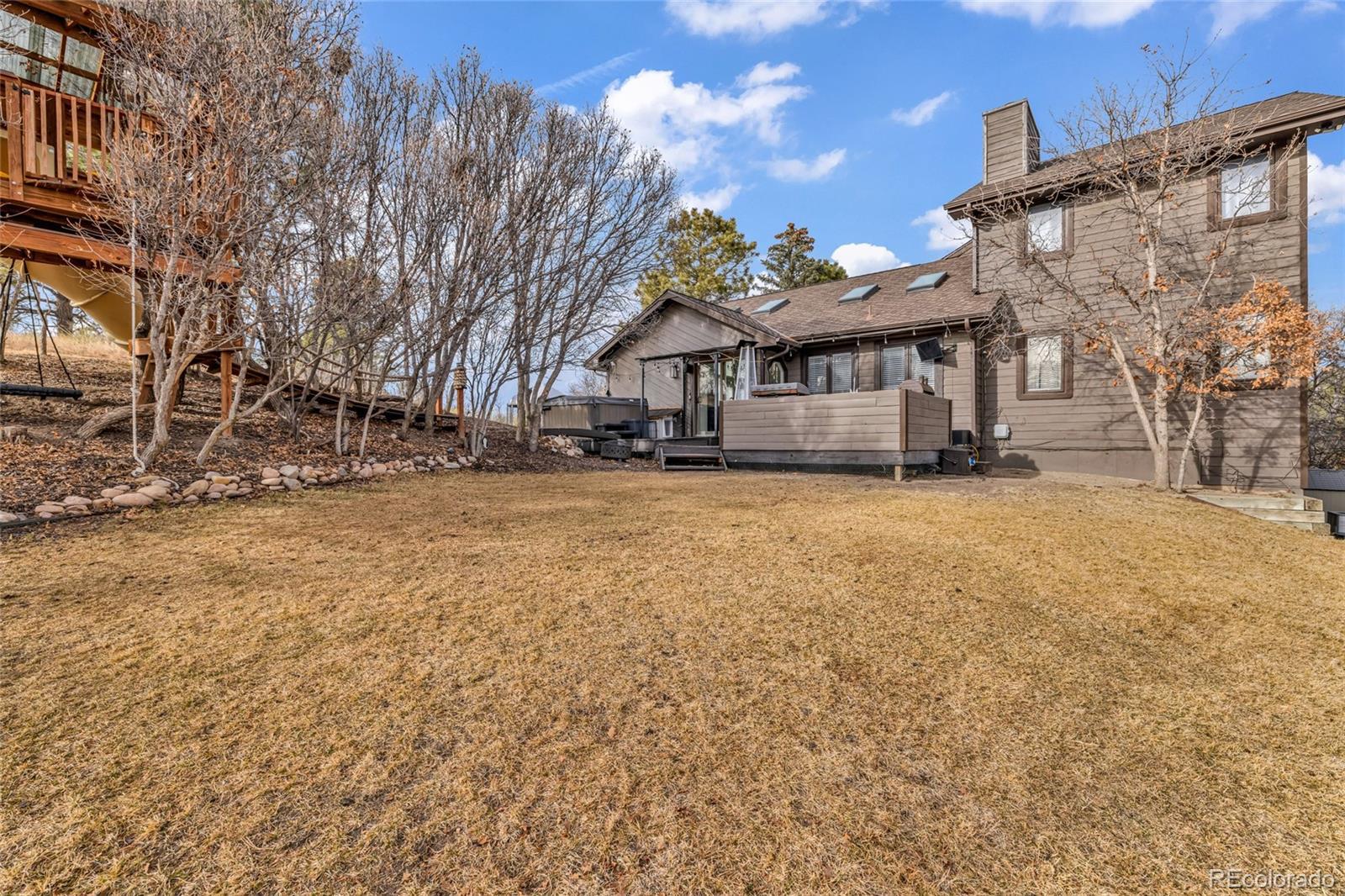 SPECTACULAR MODERN REMODEL!! Welcome to this amazing FULLY REMODELED Pinery home with exceptional privacy and panoramic views backing to acres and acres of GORGEOUS OPEN SPACE! Located on a quiet, beautifully treed lot, this 5-bedroom (one NC) 4-bath residence offers over 3,000 sq. ft. of functional living space and classic Colorado appeal. A welcoming front porch invites you in — perfect for morning coffee or evening relaxation. The main level features a rare main-floor primary suite, providing convenience and comfort, while two upstairs bedrooms share a Jack-and-Jill bath. A gorgeous chef's gourmet well-appointed kitchen has easy access to the backyard and flows naturally to living areas with a wood burning fireplace, making everyday living and entertaining effortless. The finished lower level (walk out) expands your living options with an additional 2 bedrooms, 3/4 bath, family/rec room, and laundry — ideal for guests or multi-purpose use. A custom movie theater also completes this work of art! Enjoy peaceful outdoor living with an expansive backyard that backs directly to open space, giving you plenty of natural light, wildlife views, and privacy. Patios and decks everywhere! Remodel with top of the line finishes, appliances, chef's gourmet kitchen, massive new Deck with 2 built in grills, custom Tree House, and outdoor Hot Tub! This has it all including smart toilets and heated floors!!! 5 star everything! Additional highlights include a two-car attached garage, central air conditioning, forced air heating, and flexible spaces for both everyday life and entertainment. Two oversized sheds, dog run, and the world’s greatest tree house! This home combines classic Pinery charm with modern livability — a must-see for buyers seeking character, location, and serenity in Parker. Move in ready! RV PARKING INCLUDED in Pinery lot! NEW ROOF, GUTTERS, SIDING being installed now! Water softener, Seller Motivated! BRING ALL OFFERS. PRICE REDUCTION for a quick sale!!