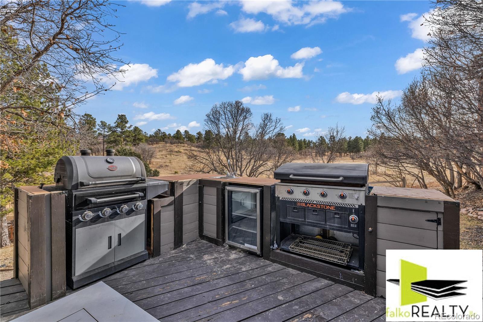 Spectacular modern Remodel!! Welcome to this amazing FULLY REMODELED Pinery home with exceptional privacy and panoramic views backing to GORGEOUS OPEN SPACE! Located on a quiet, beautifully treed lot, this 5-bedroom, 4-bath residence offers over 3,000 sq. ft. of functional living space and classic Colorado appeal. A welcoming front porch invites you in — perfect for morning coffee or evening relaxation. The main level features a rare main-floor primary suite, providing convenience and comfort, while two upstairs bedrooms share a Jack-and-Jill bath. A gorgeous chef's gourmet well-appointed kitchen has easy access to the backyard and flows naturally to living areas with a wood burning fireplace, making everyday living and entertaining effortless. The finished lower level (walk out) expands your living options with an additional 2 bedrooms, 3/4 bath, family/rec room, and laundry — ideal for guests or multi-purpose use. A movie theater also completes this work of art! Enjoy peaceful outdoor living with an expansive backyard that backs directly to open space, giving you plenty of natural light, wildlife views, and privacy. Patios and decks everywhere! A full remodel with top of the line finishes, appliances, chef's gourmet kitchen, massive new Deck with 2 built in grills, custom Tree House, and outdoor Hot Tub! This has it all including smart toilets and heated floors!!! 5 star everything! Additional highlights include a two-car attached garage, central air conditioning, forced air heating, and flexible spaces for both everyday life and entertainment. Two oversized sheds, greenhouse, dog run, and the world’s greatest tree house! This home combines classic Pinery charm with modern livability — a must-see for buyers seeking character, location, and serenity in Parker. Move in ready! RV parking included. Newer roof, water softener, Seller Motivated!