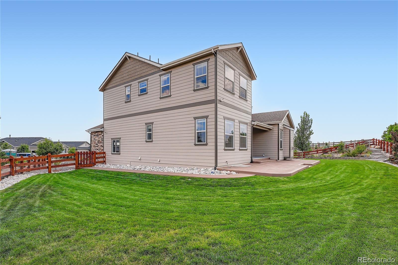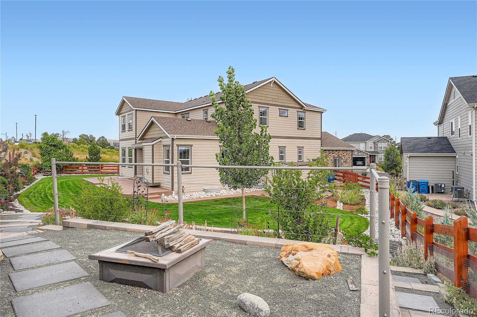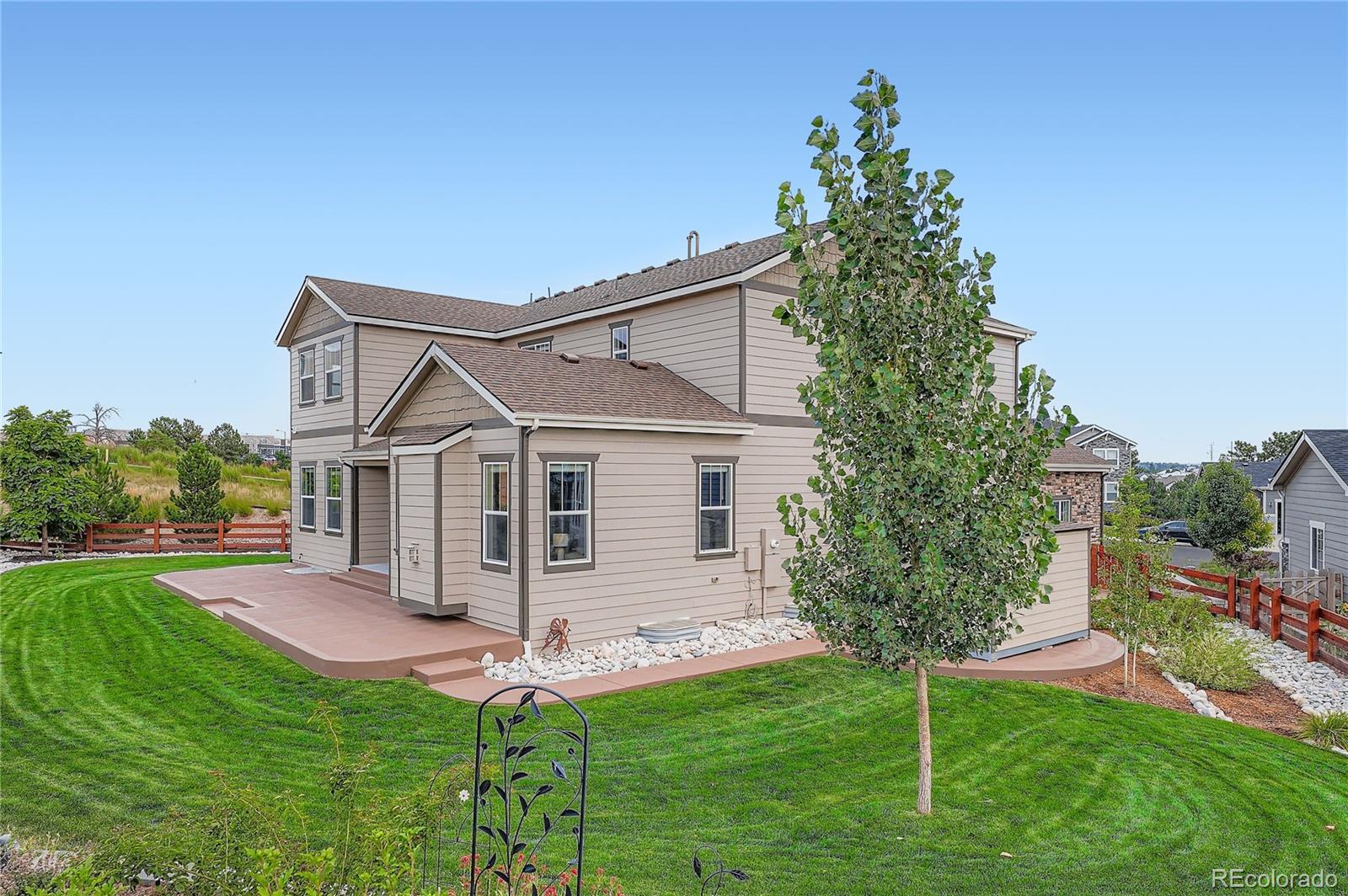 A true showpiece of design and craftsmanship, this popular 'Daley' model sits on a rare .29 acre cul-de-sac lot backing to open space with sweeping mountain views. Enjoy exceptional privacy with only one neighbor and a premier location—just a short walk to Southlands Mall; offering dining, shopping, a theater, and year-round events. Inside, the open layout features 6-Beds and 6-Baths, a main-floor study, a spacious loft, and a finished basement with added soundproofing. Anchored by an oversized custom Copenhagen granite slab island with seating, the gourmet kitchen boasts SS appliances, full-size double ovens, a gas cooktop, soft-close cabinetry, a pantry, a coffee bar area, and engineered Red Oak hardwoods. Vaulted ceilings and walls of windows bathe the family room in light, creating an inviting ambiance. The main level includes a rare 2nd primary suite with a private bath, powder room, study, and mudroom. Upstairs, two bedrooms share a Jack-and-Jill bath, while another is ultra-spacious. The primary suite impresses with dual walk-ins and a spa-like 5-piece bath featuring Quartz-topped vanities. The finished basement extends living space with a 6th bedroom, bath, and a massive great room (pre-plumbed for a wet bar) that's been soundproofed. Embrace the landscaped grounds with terraced stone pathways, drip-irrigated gardens, a custom concrete patio with wraparound walkways, and a fire pit retreat for sunsets and s’mores. A newer insulated “Ted’s Shed” provides versatile storage/workspace. Recent updates include a newer roof (2022), Brand-New Carpet throughout, and new exterior paint. Additional bonuses: dual A/C with Wi-Fi thermostats, gas line for patio BBQ, motorized roller shades, extra insulation, and 10-foot ceilings on the main & 2nd levels. Top-ranked Cherry Creek Schools. Be sure to check out the exciting upgrades taking shape in the open space behind the property — plans include adding more trees, shrubs, and grass seeding to enhance the scenic hillside.