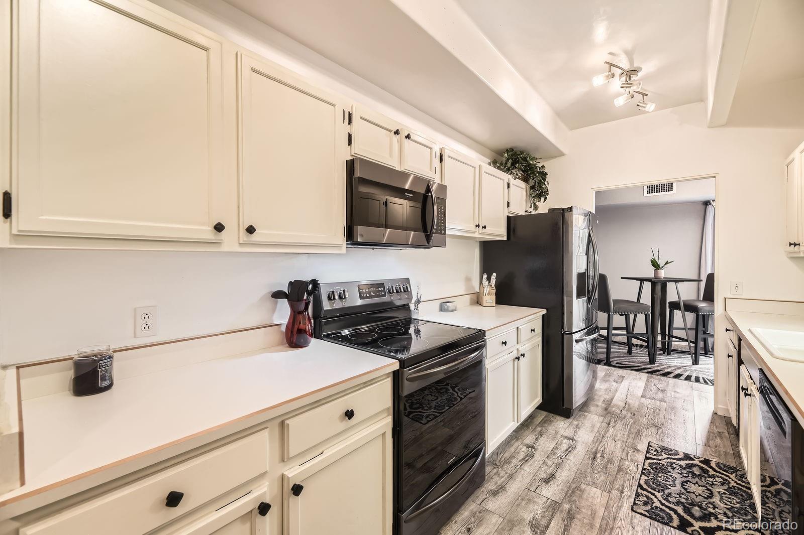 Beautiful home! AMAZING PRICE!! Upgraded and immaculately maintained. Move-in condition with 2 garage parking spaces plus one exterior deeded parking space and two private storage units within the building. Both bathrooms have been remodeled with top of the line fixtures, tile and flooring. Double sinks and extra storage in the primary suite bath. The newer carpeting is of the highest quality and feels like you are walking on Cloud 9! Abundant cabinetry and full-wall closets. The efficiently designed kitchen has extra cabinets, a pantry and enough counter space to delight any gourmet chef. The views from the living room, dining room and lanai are amazing and offer vistas of the city, the mountains and the lush landscaping in the community. Enjoy the fountains while overlooking the ponds and relaxing to the gentle sounds of the water. The community has numerous amenities including pickle ball courts, walking trails, electric vehicle charging stations, swimming pool, exercise gym, spa, sauna and many many more. No need spend for a gym membership. It is but a few steps from the Highline Canal Trail system, 20 minutes from Cherry Creek and DTC, 25 minutes from downtown, 30 minutes to DIA and only 5 minutes to shopping and restaurants in Lowry. Heat and Air Conditioning are included in the monthly HOA fees. Candlewyck is a no dog community subject to federal regulations regarding service and emotional support animals. Other pet restrictions apply. The community is FHA and VA approved.