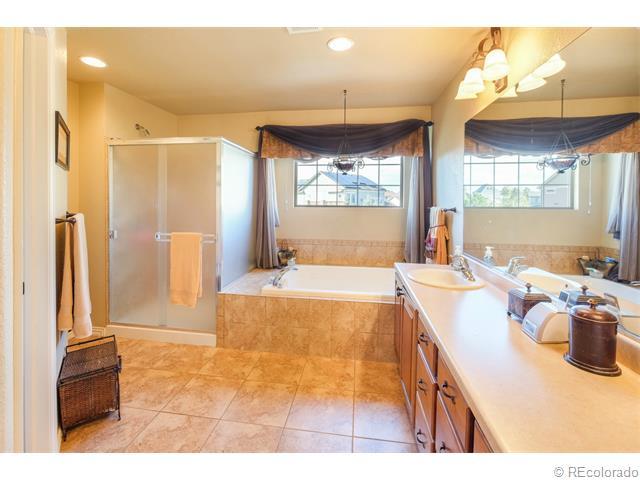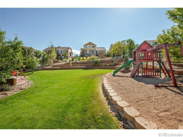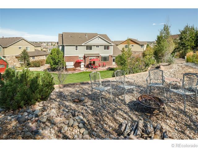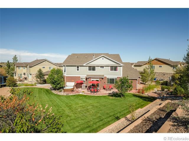 Gorgeous Saddle Rock Golf Club 2-Story home. GIANT PRIVATE LOT..ALMOST 1/2 ACRE. Why buy new?..80k in landscaping installed! HUGE 4 CAR GARAGE (1,031 s.f.!), Awesome Cherry Creek School District! Pride of Ownership truly shows here...10++ & Immaculate! Large home = Giant rooms throughout! Main Level Features: Volume 2-story ceiling at entry. Front formal living room and dining. Gorgeous gourmet kitchen w/huge island/seating, double ovens, cook-top, giant pantry..Kitchen opens to the family room w/gas fireplace, wired for 5.1 surround...great home for entertaining! Large bedroom/study & full bath on the main! Huge laundry/mudroom on main. Upper Level:Has large secondary bedrooms & a loft! Vaulted Master suite w/rotunda entrance, huge walk-in closet, large tiled 5 piece bath! Oil rubbed bronze! Giant open basement for future growth w/rough-in. DON'T MISS YARD: terraced wall/garden area, stamped patio, hot tub, playground, gas & wood fire-pits included..w/seating! Home Warranty included!