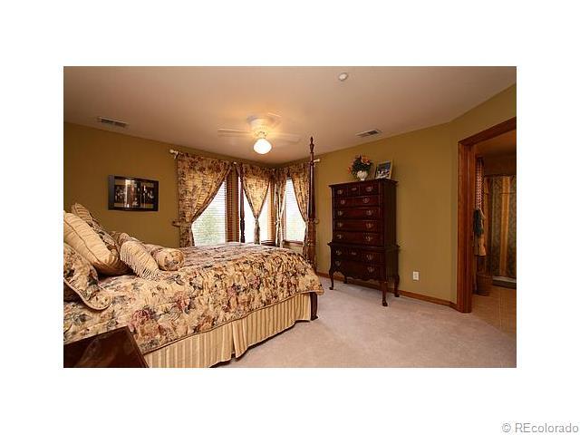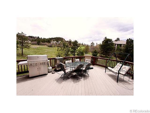 Contract just fell, Buyers changed their mind right before closing. This is one of the lowest priced properties in Castle Pines Village backing to the Country Club Golf Course and adjacent to open space. This two-story home with finished walkout basement is a great value in Castle Pines Village and is priced right to sell. The two-story great room features expansive windows and is adjacent to the kitchen and breakfast area with slab granite counters and stainless appliances. The formal living and dining rooms are perfect for entertaining and the main floor study with built-ins is a great retreat. The second floor hosts four spacious bedrooms each with an en-suite bath including the master suite with spa style bath. The lower level features a family/recreation room with wet bar and 5th bedroom and additional bath along with a dog grooming/kennel area and rarely available fenced dog yard off of the lower level patio.