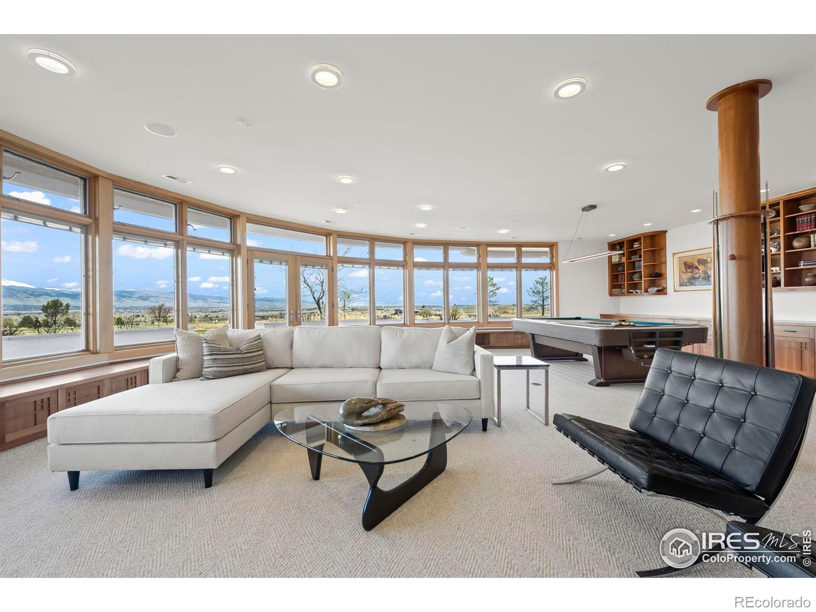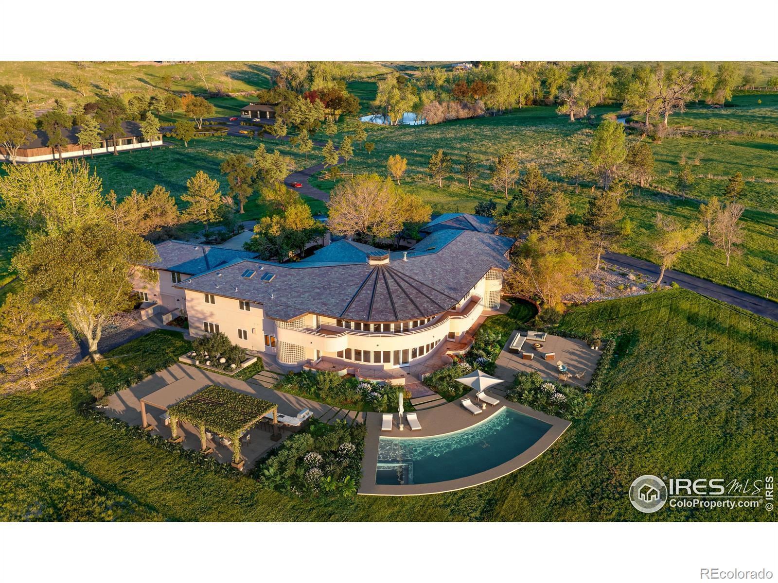 12 Shares of Davidson Ditch water are included with this exceptional estate priced below $11M appraisal! Discover Lodestar Estate - a masterpiece of architectural distinction spanning 10,720 square feet on 55 pristine acres with breathtaking panoramic views. This extraordinary property captures the majesty of Longs Peak, the Continental Divide, Indian Peaks Wilderness Area, the iconic Flatirons, and sweeping Boulder Valley vistas in a setting that redefines Colorado luxury living. Influenced by legendary architects I.M. Pei and Frank Lloyd Wright, this residence epitomizes the seamless integration of indoor-outdoor living. Soaring cathedral ceilings, dramatic exposed beams, and expansive panoramic windows frame nature's grandeur from every angle. The home's apex is ingeniously centered on Longs Peak, creating a spectacular focal point that anchors the entire living experience. The chef's gourmet kitchen and multiple sophisticated entertaining areas provide the perfect backdrop for both intimate gatherings and grand celebrations. The garden-level family room transforms leisure time with a home theater and elegant wet bar complemented by a 144-bottle temperature-controlled wine cellar.Five generously appointed bedrooms include a palatial primary suite featuring an indulgent spa/exercise room. The estate's 55 acres offer abundant recreational opportunities and solitude. A private pond adds both beauty and value, while the protected courtyard provides intimate outdoor living. From this prime location, enjoy unparalleled privacy while remaining minutes from Boulder's biotech corridor, world-class dining, cultural attractions, and outdoor recreation. This is Colorado living at its absolute finest - where extraordinary natural beauty meets sophisticated design and ultimate convenience.