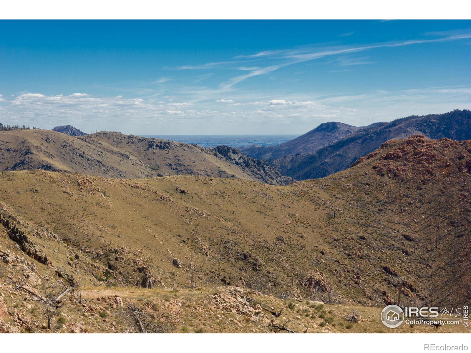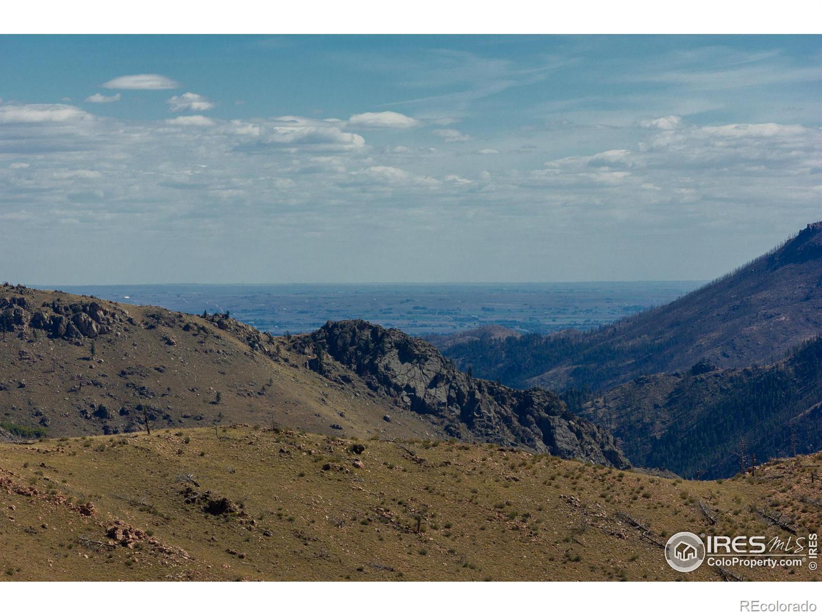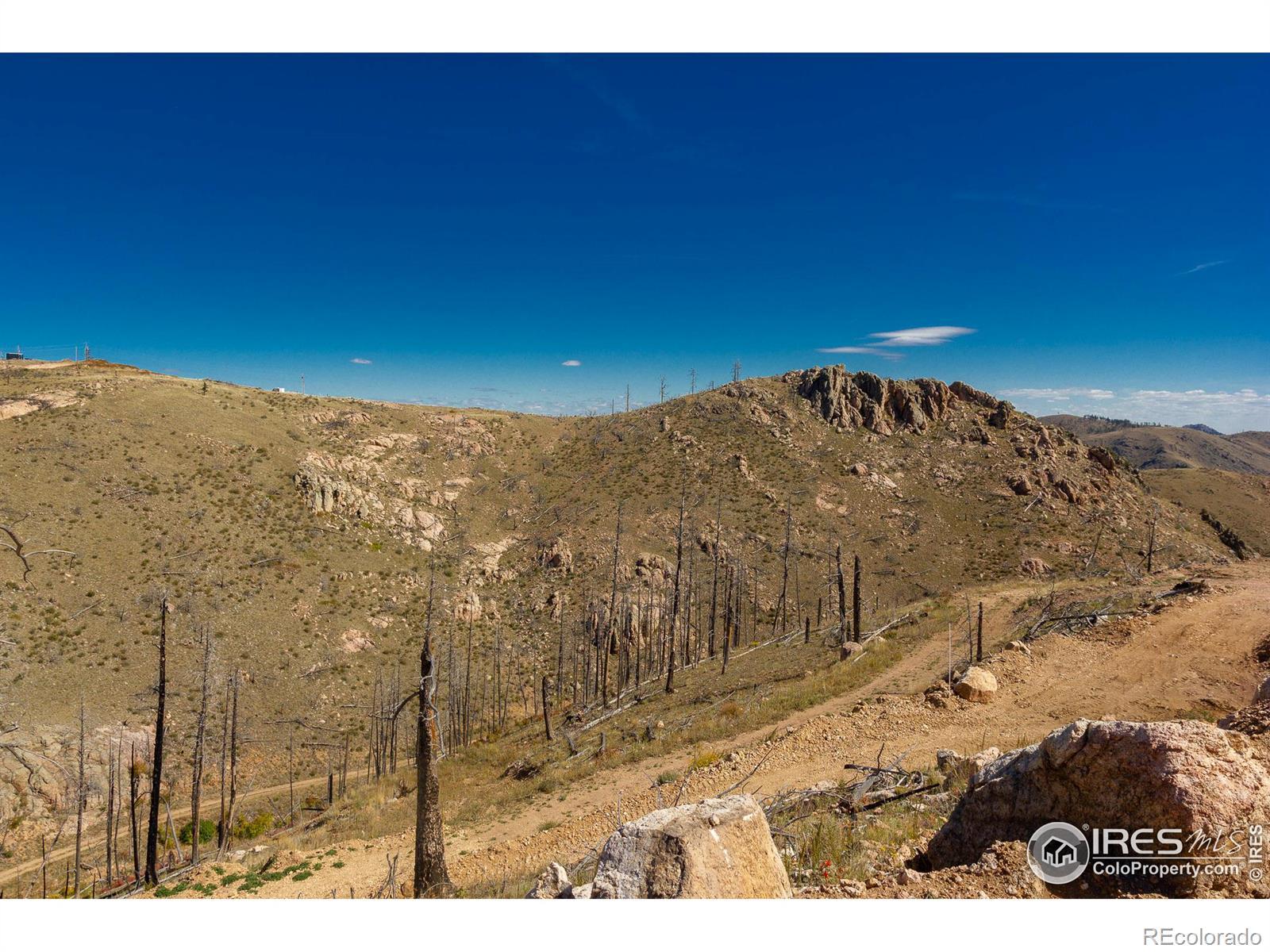 Adjoins National Forest! Absolutely stunning views across meadows, down into Poudre Canyon with glimpses of the Poudre river, south into RMNP, east into Fort Collins, and west towards Cameron Peak. This multi-tiered lot has fantastic potential as a year-round or seasonal homesite, or enjoy camping during the summer. Are you into hunting? This location is ideal with direct access into the national forest. A roughly 70x45 building pad has been graded, with an additional smaller footprint on the upper portion of the lot. Two driveways currently provide access to the lot. A small shed with a loft is on the upper tier, great for storage or camping setup. No utilities currently connected, though the association has a legal shared well agreement for lots on this road and your tap is at the road. Power is nearby. Will need a septic or vault installed. Community has free water available for owners to pickup if you wish to setup a cistern, or they will haul water to you for a small fee. Note this lot is in the 2012 High Park fire burn area, so no trees in the immediate area. But that just makes your views unobstructed. Come see, bring a chair and soak in these amazing views as you decide how you will make this lot your own!