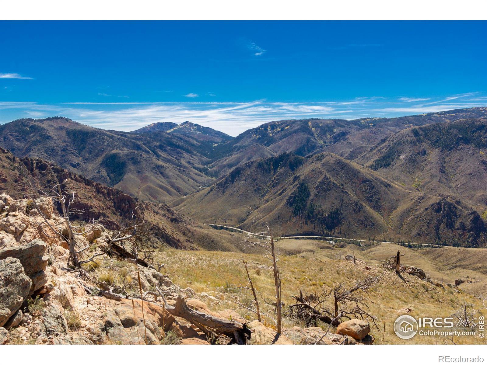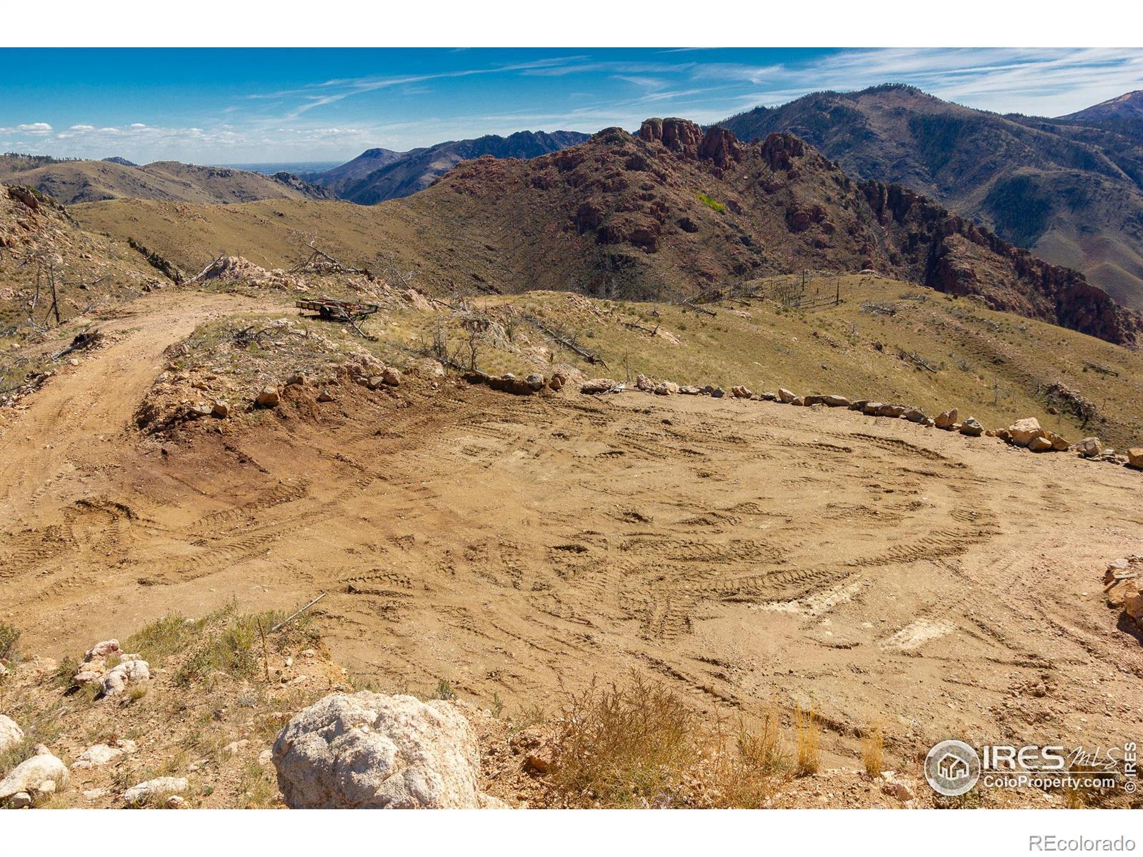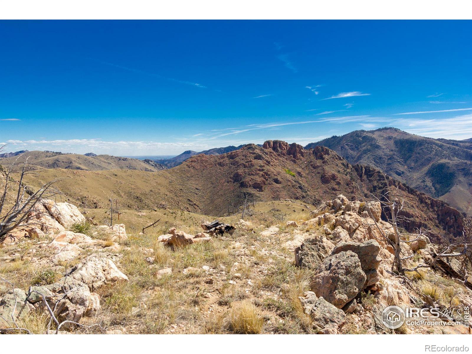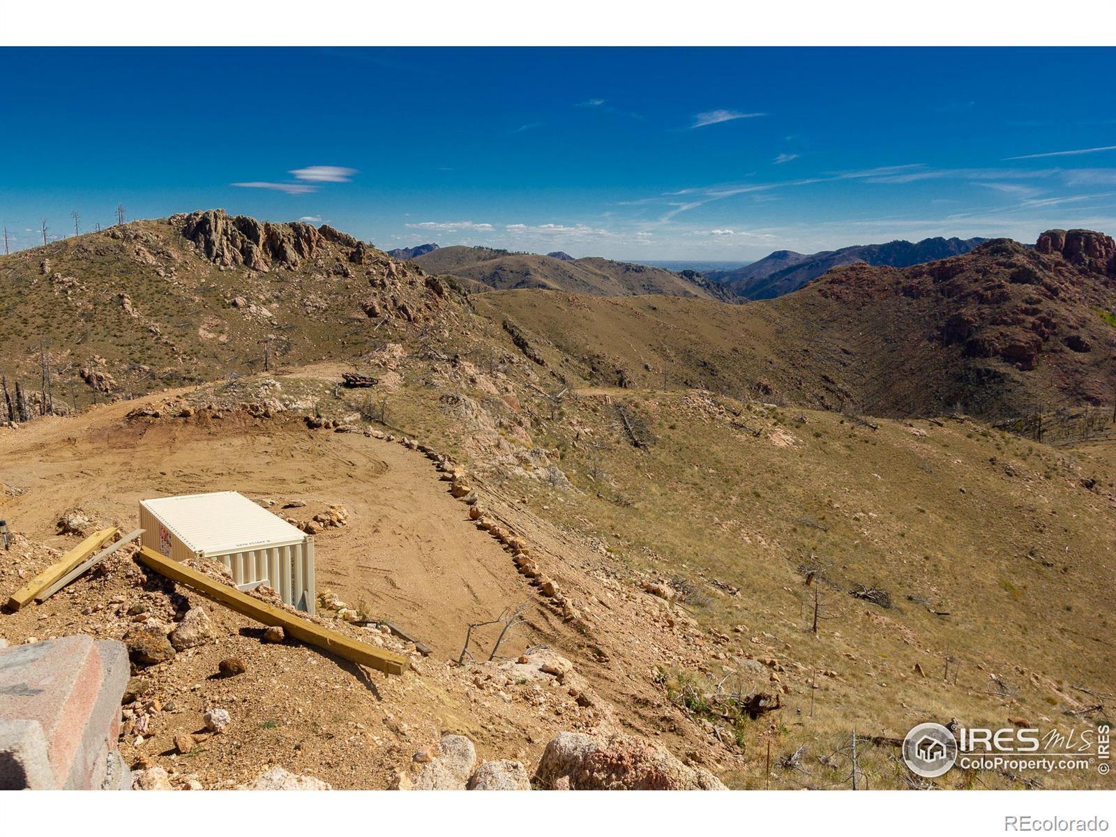 Adjoins National Forest! Absolutely stunning views across meadows, down into Poudre Canyon with glimpses of the Poudre river, south into RMNP, east into Fort Collins, and west towards Cameron Peak. This multi-tiered lot has fantastic potential as a year-round or seasonal homesite, or enjoy camping during the summer. Are you into hunting? This location is ideal with direct access into the national forest. A roughly 70x45 building pad has been graded, with an additional smaller footprint on the upper portion of the lot. Two driveways currently provide access to the lot. A small shed with a loft is on the upper tier, great for storage or camping setup. No utilities currently connected, though the association has a legal shared well agreement for lots on this road and your tap is at the road. Power is nearby. Will need a septic or vault installed. Community has free water available for owners to pickup if you wish to setup a cistern, or they will haul water to you for a small fee. Note this lot is in the 2012 High Park fire burn area, so no trees in the immediate area. But that just makes your views unobstructed. Come see, bring a chair and soak in these amazing views as you decide how you will make this lot your own!