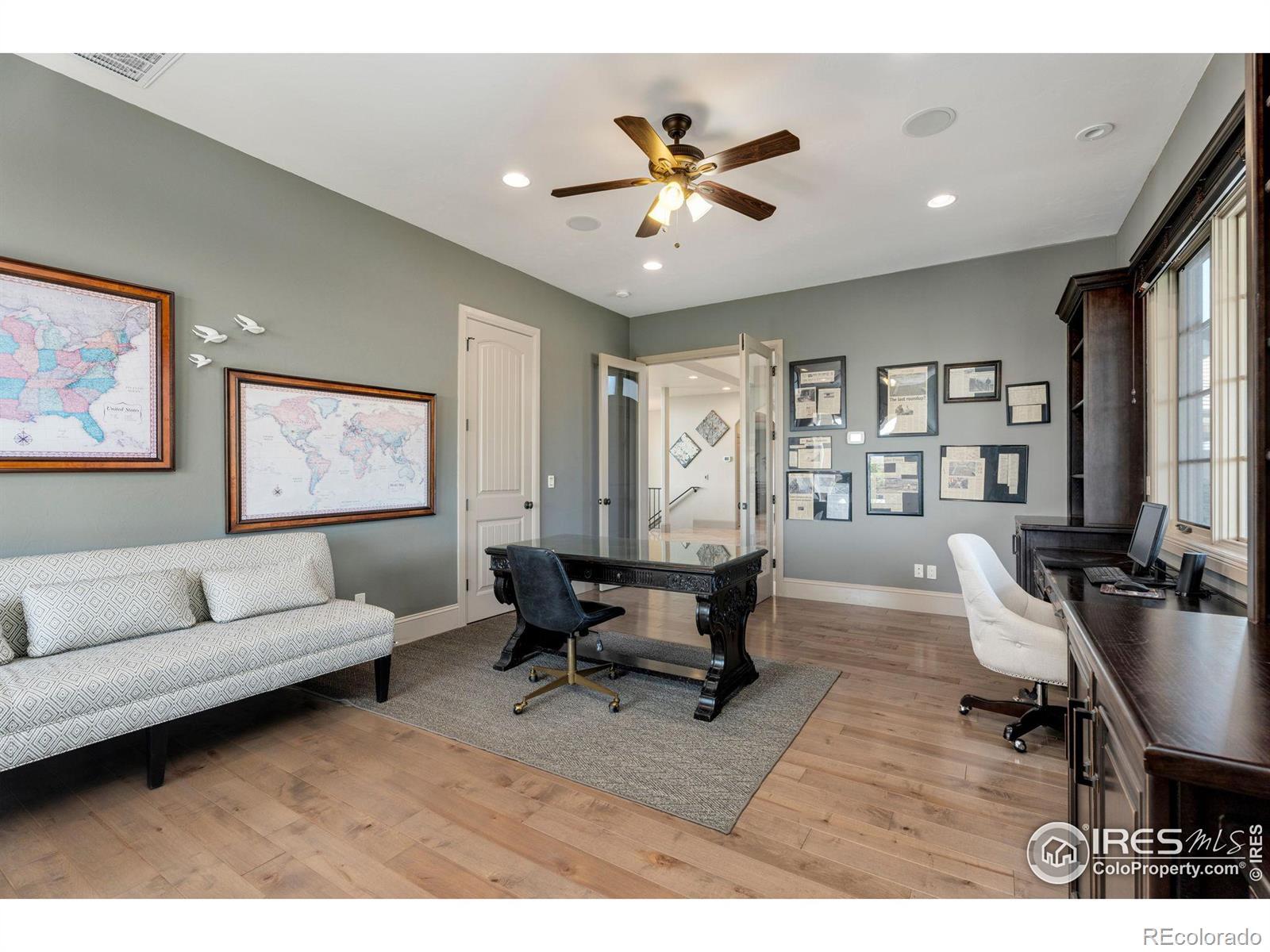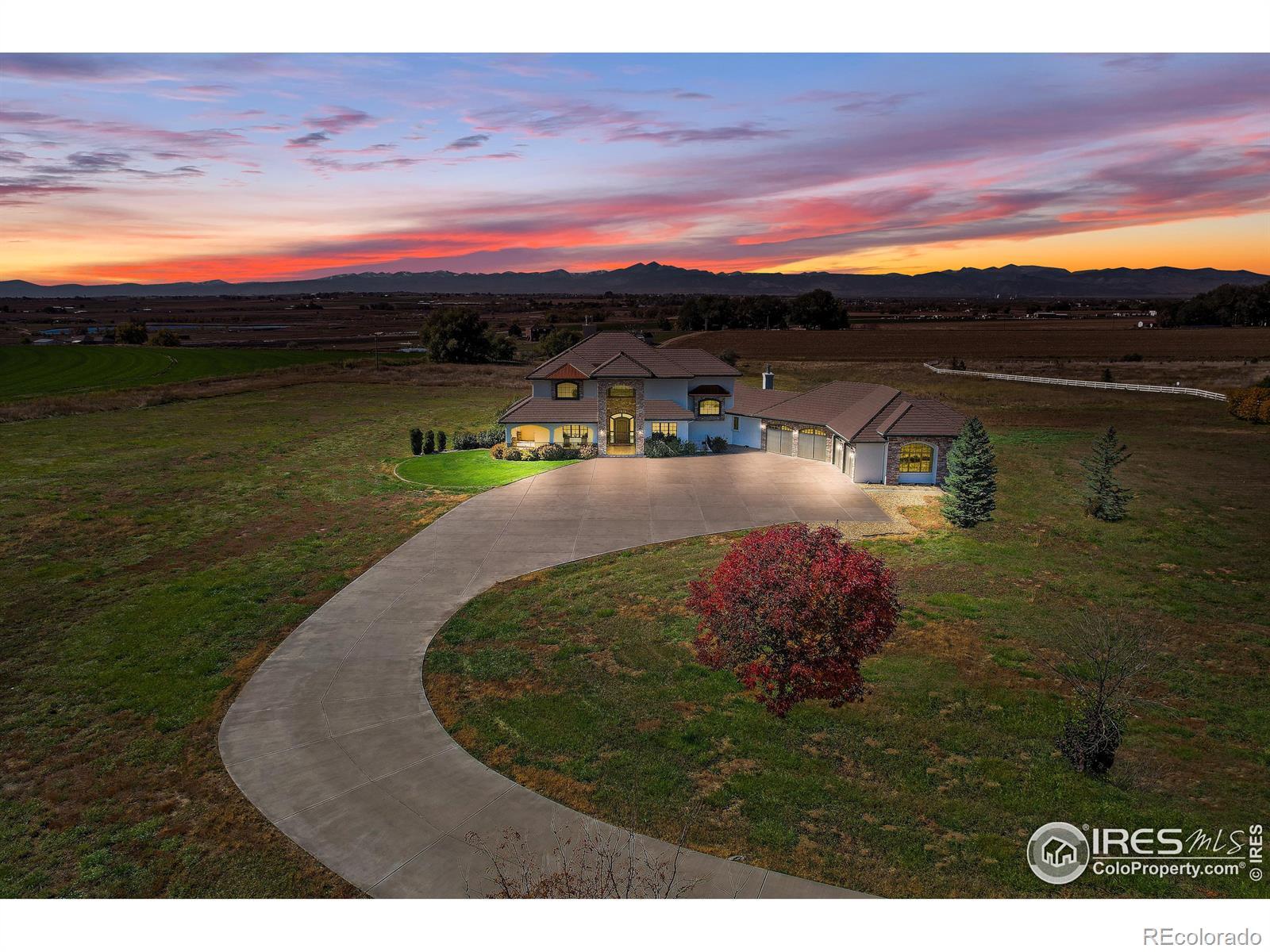 Located just 10 minutes from I-25 and 45 minutes from DIA, this stunning 5-BEDROOM, 6-BATHROOM home offers the perfect blend of privacy, convenience, and luxury living in Northern Colorado. Nestled on the corner of the prestigious Coyote Ridge Lane, this property features NEARLY 15 ACRES of usable land - perfect for horses, cattle, or outbuildings. With a PRIVATE GATED ENTRANCE and tree-lined driveway for ultimate seclusion, and UNOBSTRUCTED MOUNTAIN VIEWS from every angle. The GOURMET KITCHEN includes top-of-the-line appliances, an oversized granite island, and 3 OVENS - a chef's dream. This home is built for entertaining and comfort, with heated floors throughout, a walk-out basement with wet bar, game room, movie room, a large fully fenced backyard and huge covered balcony. The perks continue with an expansive, heated 4-car garage with room for toys, tools, and workspace. Additional features include a full-size elevator, central vacuum system. The far corner of the property has the option to be shared with the neighbor's cows for grazing - adding a touch of country charm, and making the view even more unique. Only minutes to The Shops at Centerra, Fort Collins, and Loveland. It's a RARE COMBINATION of space, luxury finishes, privacy, and access to city amenities - this estate is truly a must-see!