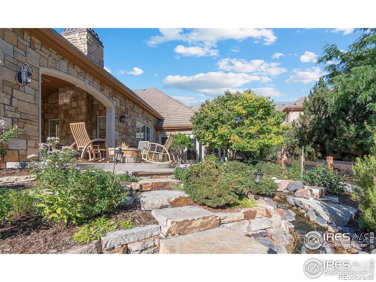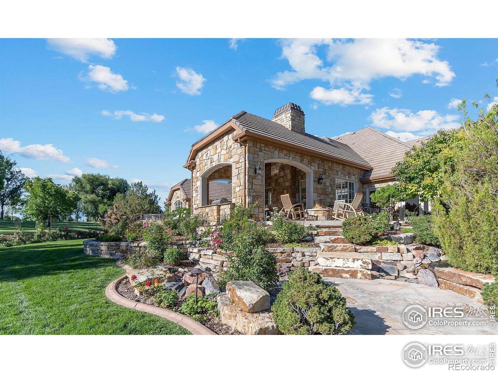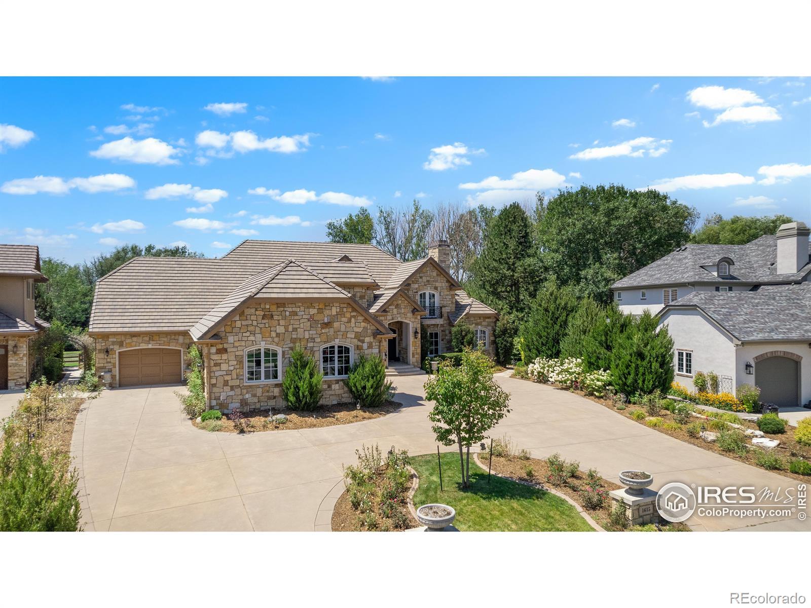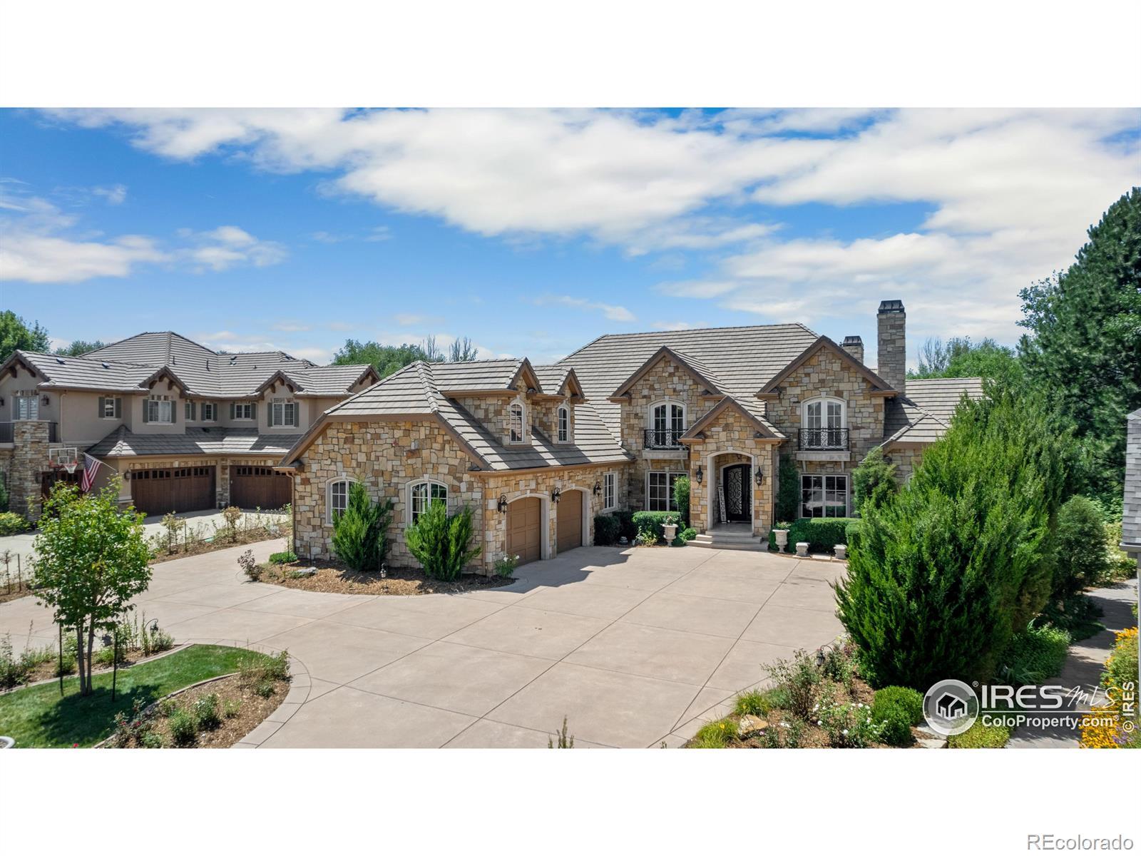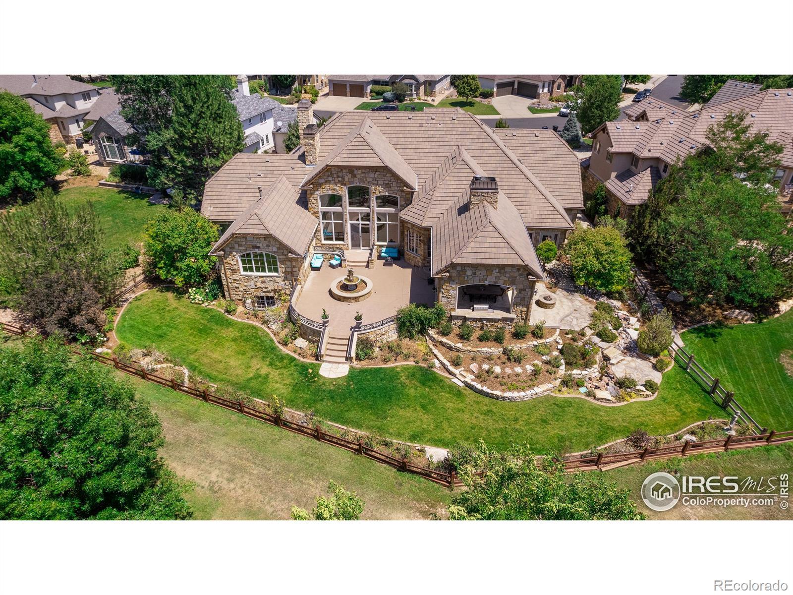 Experience luxury and serenity in this exquisite custom-built home, nestled on a half-acre lot adjacent to Fox Hill Golf Course in Starwood Subdivision, Longmont, Colorado. The distinctive U-shape design embraces an outdoor courtyard with a fountain, linking seamlessly to a lavish veranda. Perfect for celebrating or unwinding, the outdoor spaces boast a covered living room, fire pit, in-built gas grill, and enchanting water feature. The tastefully designed interior provides a lavish primary suite, two additional ensuite bedrooms, a guest area, a cinematic room, a fitness room, sizeable recreation room with bars, and roomy unused spaces ready for your customization. The primary suite is an oasis with a double-sided travertine fireplace, elegant wood flooring, a generous custom dressing room, and deluxe bathroom with steam shower and a Kohler Air Jetted soaking tub.Discover the joy of cooking in the gourmet kitchen, outfitted with top-of-the-line appliances from Wolf and Sub-Zero, and 2 Asko dishwashers. Other notable features include hydronic radiant floor heating, custom cabinetry, low-E external doors and windows, sound-insulated basement with high ceilings, and a six-car heated garage with radiant snow melt driveway. The home is also equipped with CAT-5 wiring, 4 HVAC units, and a comprehensive security system, ensuring comfort, convenience and peace of mind. Explore the charm of this one-of-a-kind property by watching the video tour.