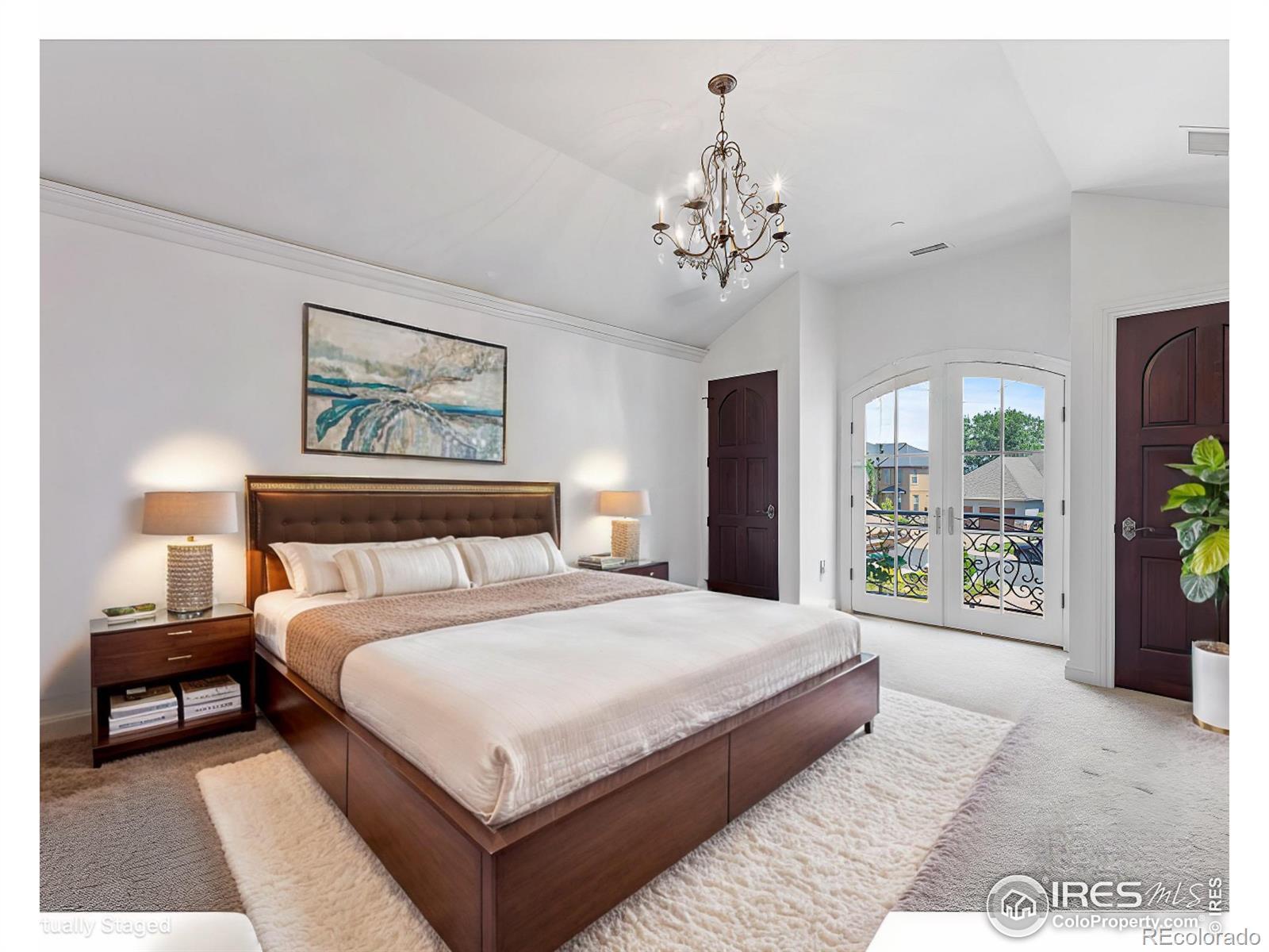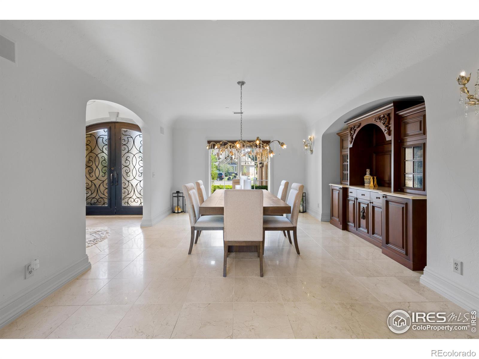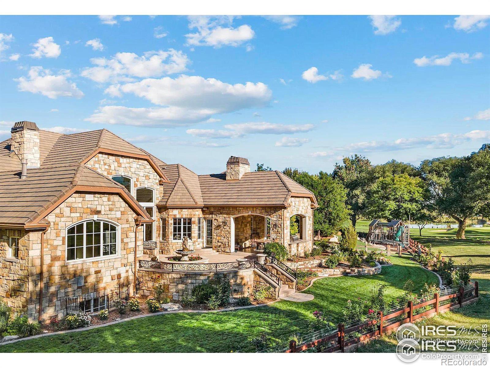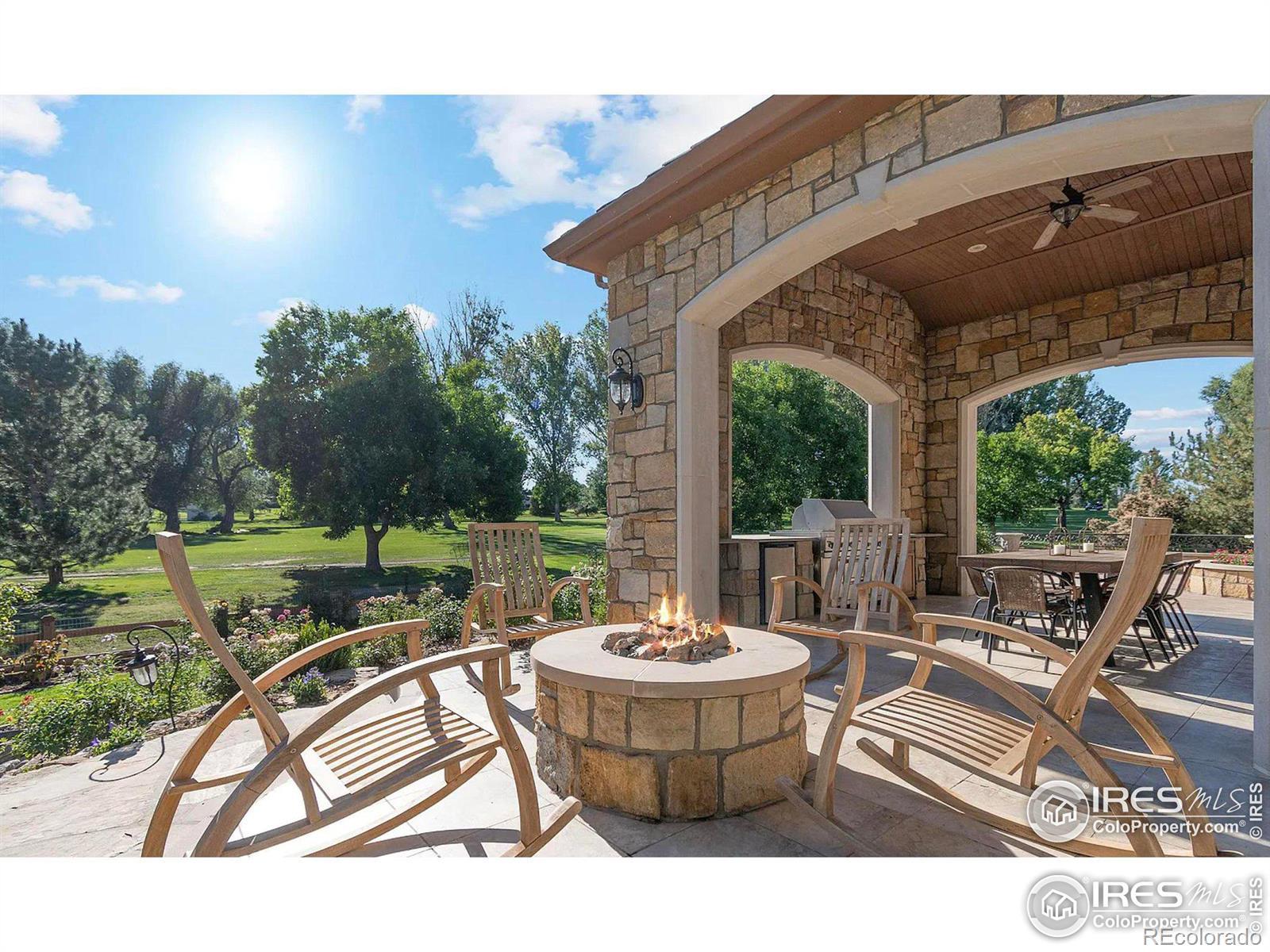 Experience luxury and serenity in this exquisite custom-built home, nestled on a half-acre lot adjacent to Fox Hill Golf Course in Starwood Subdivision, Longmont, Colorado. The distinctive U-shape design embraces an outdoor courtyard with a fountain, linking seamlessly to a lavish veranda. Perfect for celebrating or unwinding, the outdoor spaces boast a covered living room, fire pit, in-built gas grill, and enchanting water feature. The tastefully designed interior provides a lavish primary suite, two additional ensuite bedrooms, a guest area, a cinematic room, a fitness room, sizeable recreation room with bars, and roomy unused spaces ready for your customization. The primary suite is an oasis with a double-sided travertine fireplace, elegant wood flooring, a generous custom dressing room, and deluxe bathroom with steam shower and a Kohler Air Jetted soaking tub.Discover the joy of cooking in the gourmet kitchen, outfitted with top-of-the-line appliances from Wolf and Sub-Zero, and 2 Asko dishwashers. Other notable features include hydronic radiant floor heating, custom cabinetry, low-E external doors and windows, sound-insulated basement with high ceilings, and a six-car heated garage with radiant snow melt driveway. The home is also equipped with CAT-5 wiring, 4 HVAC units, and a comprehensive security system, ensuring comfort, convenience and peace of mind. Explore the charm of this one-of-a-kind property by watching the video tour.