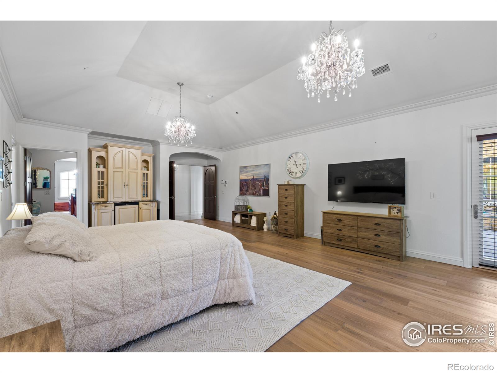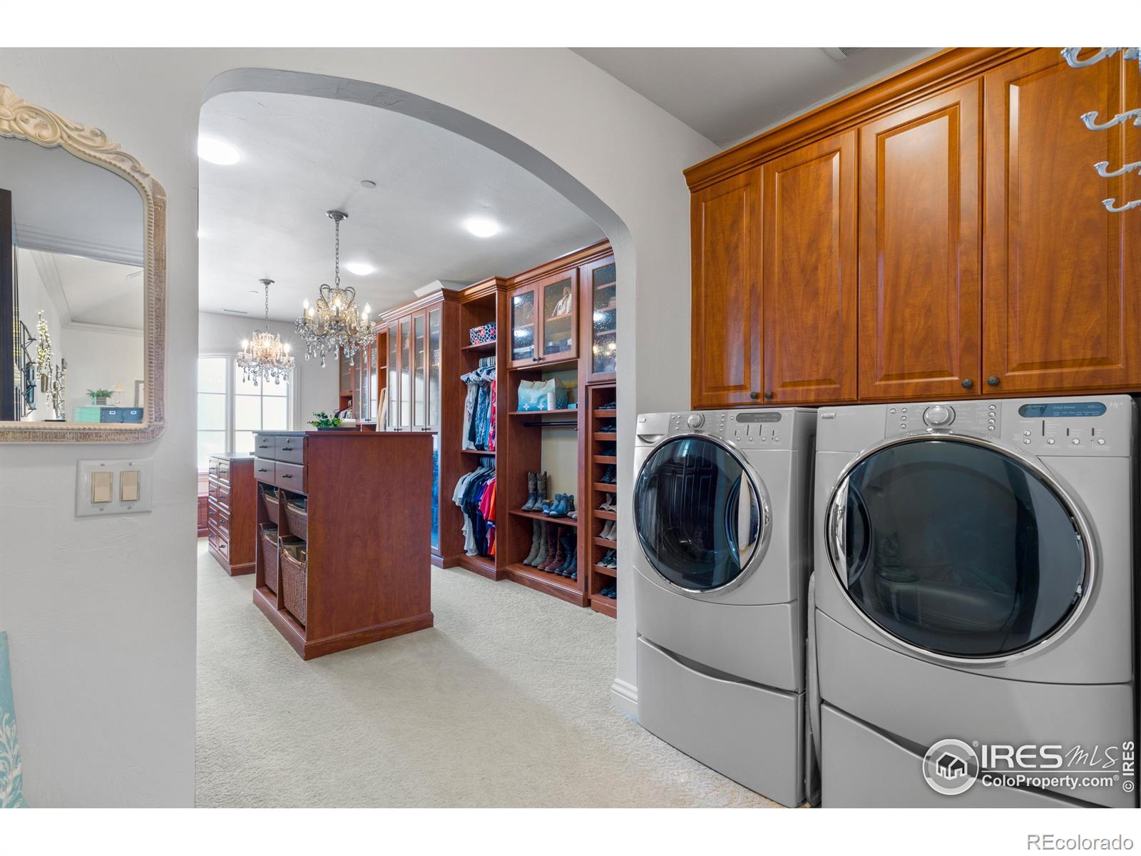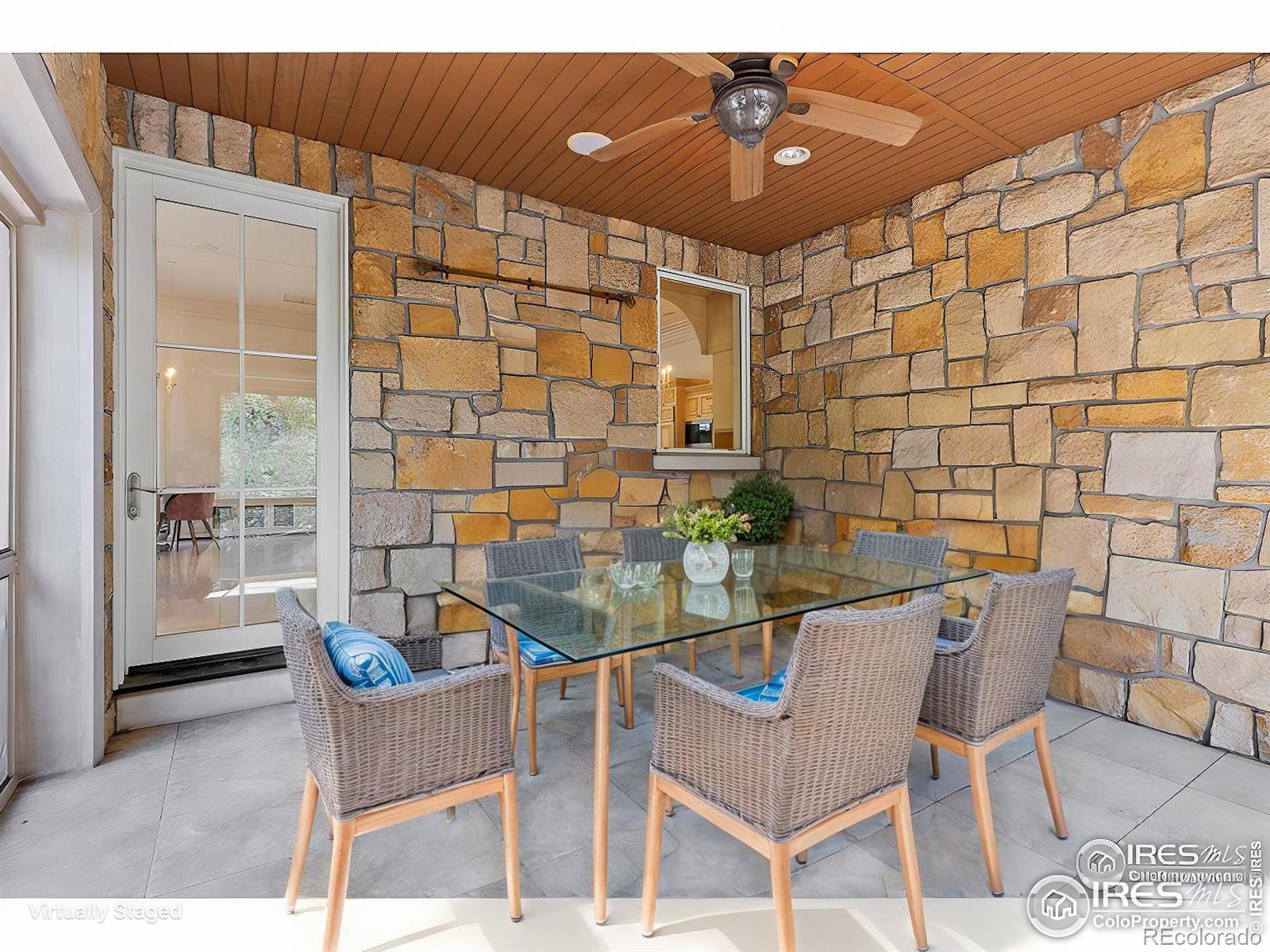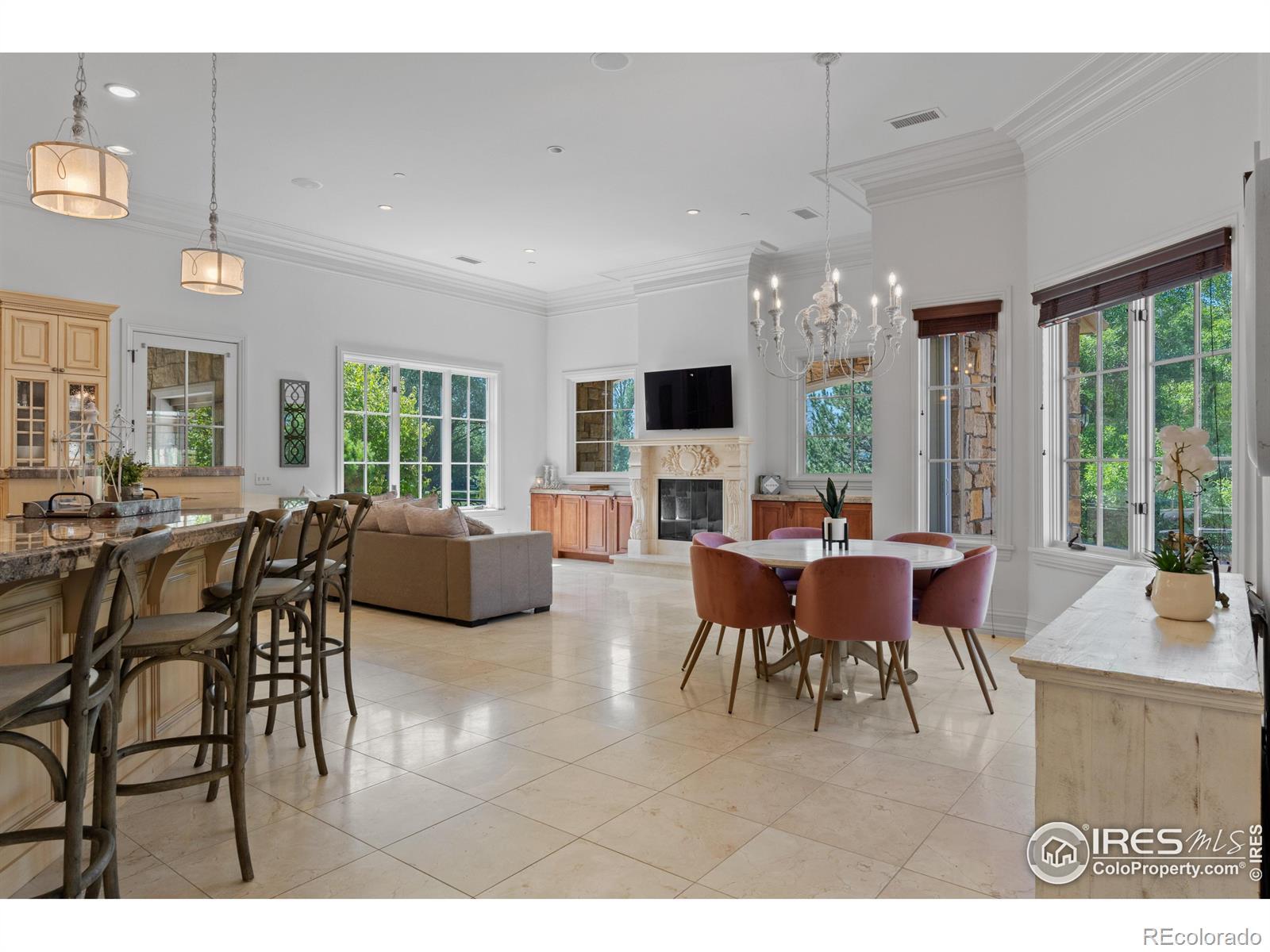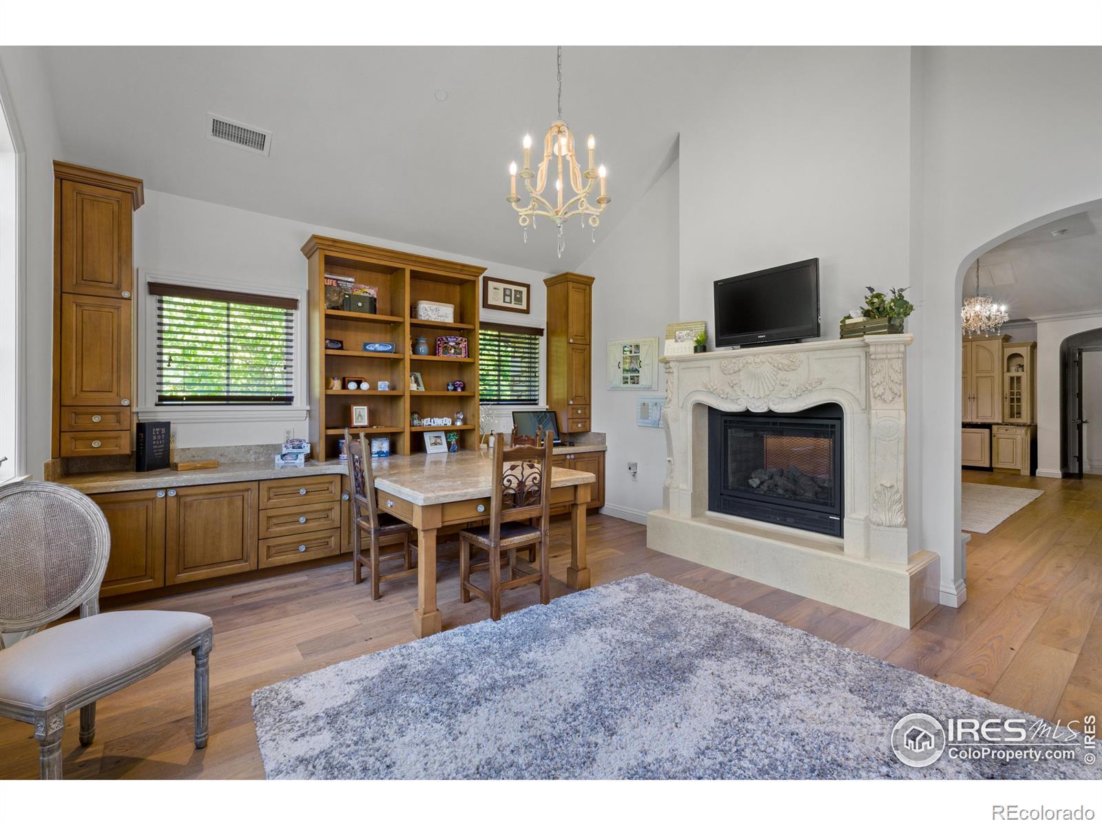Experience luxury and serenity in this exquisite custom-built home, nestled on a half-acre lot adjacent to Fox Hill Golf Course in Starwood Subdivision, Longmont, Colorado. The distinctive U-shape design embraces an outdoor courtyard with a fountain, linking seamlessly to a lavish veranda. Perfect for celebrating or unwinding, the outdoor spaces boast a covered living room, fire pit, in-built gas grill, and enchanting water feature. The tastefully designed interior provides a lavish primary suite, two additional ensuite bedrooms, a guest area, a cinematic room, a fitness room, sizeable recreation room with bars, and roomy unused spaces ready for your customization. The primary suite is an oasis with a double-sided travertine fireplace, elegant wood flooring, a generous custom dressing room, and deluxe bathroom with steam shower and a Kohler Air Jetted soaking tub.Discover the joy of cooking in the gourmet kitchen, outfitted with top-of-the-line appliances from Wolf and Sub-Zero, and 2 Asko dishwashers. Other notable features include hydronic radiant floor heating, custom cabinetry, low-E external doors and windows, sound-insulated basement with high ceilings, and a six-car heated garage with radiant snow melt driveway. The home is also equipped with CAT-5 wiring, 4 HVAC units, and a comprehensive security system, ensuring comfort, convenience and peace of mind. Explore the charm of this one-of-a-kind property by watching the video tour.