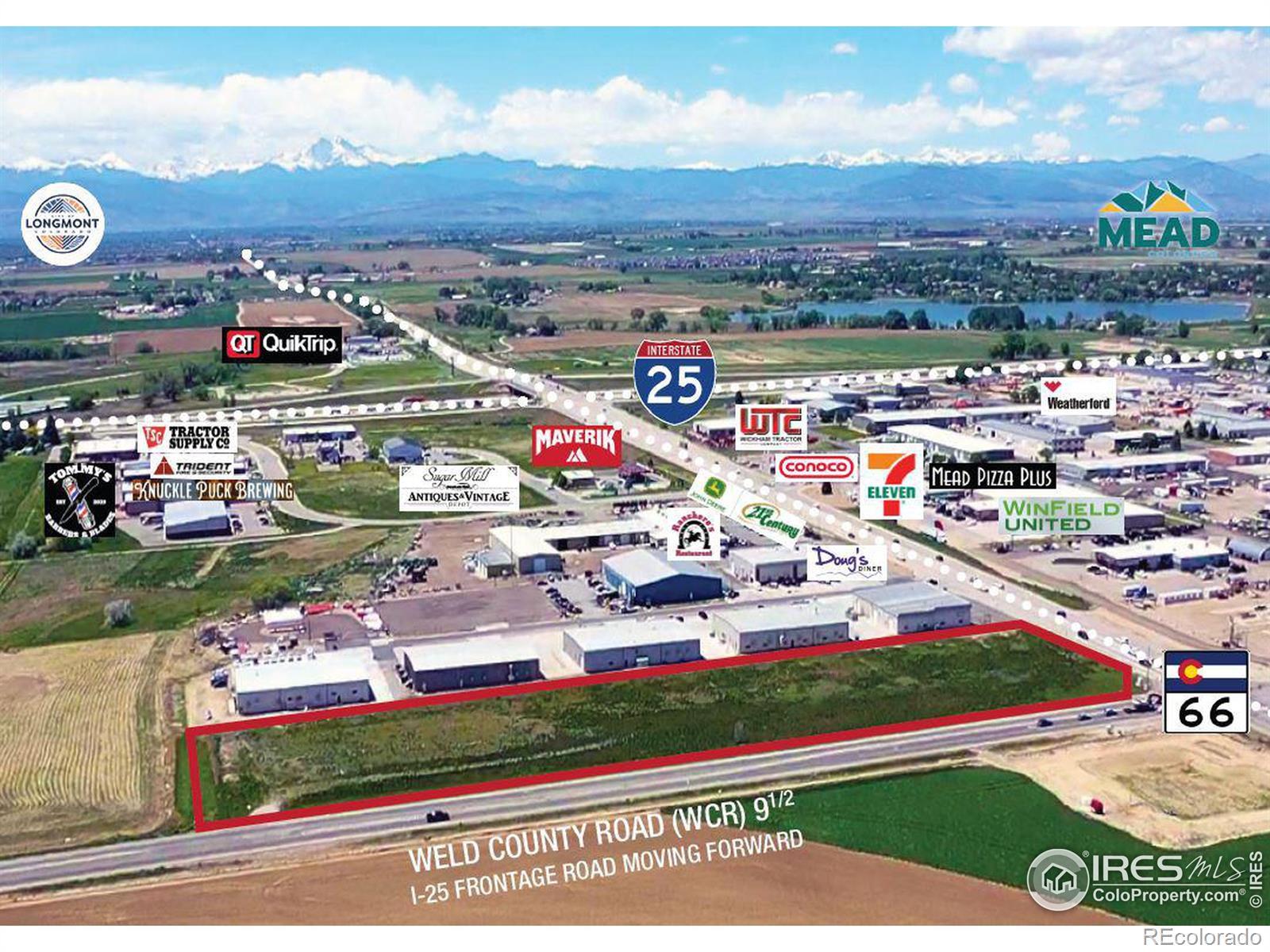 High Visibility Centralized Location: Commercial/Industrial land with direct frontage, on hard corner of CO HWY 66 & WCR 9 1/12. This parcel offers an excellent location and visibility with great access 1/2 mile from Interstate 25, located between Mead and Tri-Town area experiencing rapid growth and activity. High traffic count and favorable demographics surrounding the property. Area has significant employment, but lacks services - opportunity to fill void in the market with flexible potential uses with Zoning: Flexible use with zoning recently changed from General Commercial (GC) to Light Industrial (LI) with the Town of Mead. Conceptual Plans & Pre-App Comments from recent meeting with Town of Mead are available upon request for site layout / concept plan to construct two (2) Industrial/Flex Buildings of 16,800 RSF & 36,800 RSF Totaling +/- 53,600 RSF of Industrial/Flex space on the parcel.