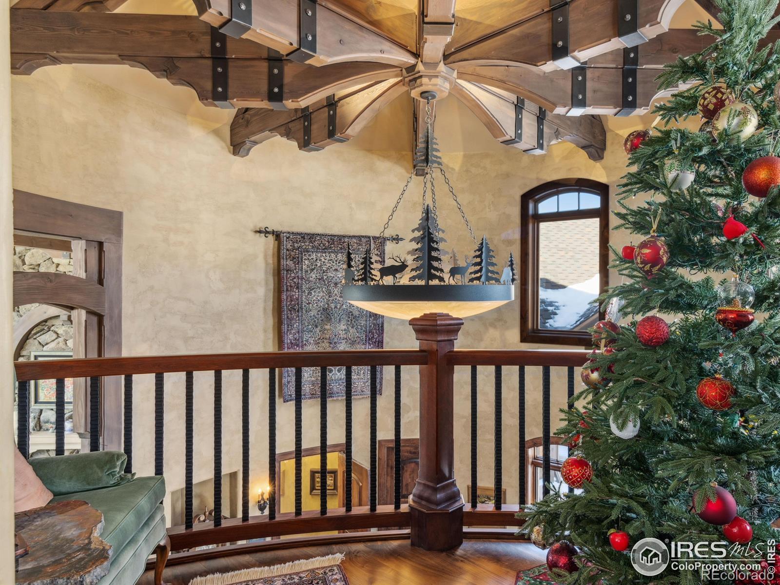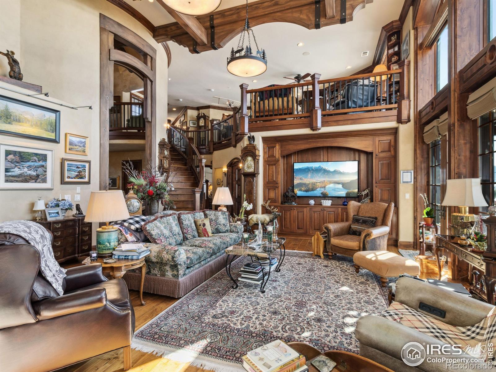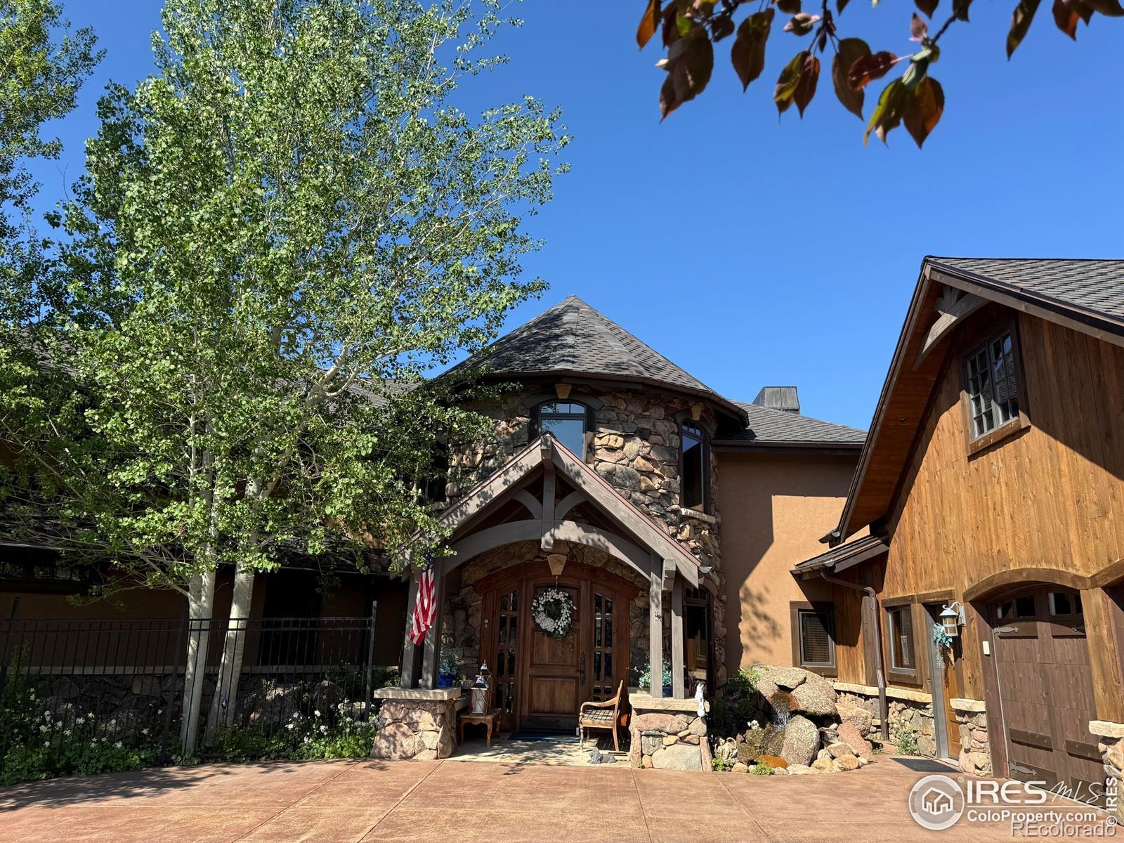 Welcome to a home of exceptional craftsmanship and timeless beauty, where luxury meets artistic design. As you drive up to the grand entrance, you're greeted by a peaceful fountain that hints at the elegance within. The grand entrance is framed by custom wood doors and elegant arches, inviting you into a foyer where high vaulted ceilings and large beams immediately draw your eyes upward, creating a sense of awe. The space is filled with natural light, accented by rich walnut flooring and intricate knotty alder woodwork, setting the stage for the luxurious experience ahead. Custom-built with European influence, the home offers panoramic views in every direction. Floor-to-ceiling windows flood the living areas with light, seamlessly blending indoor elegance with the natural beauty outside. Subtle fleur-de-lis accents add artistic charm, enhancing the home's timeless design. Five fireplaces scattered across the home add warmth and ambiance, while an integrated sound system enhances the experience, making every room feel inviting and refined. The gourmet kitchen is a chef's paradise, complete with a cozy nook where you can dine by the fireplace while enjoying breathtaking views. The primary suite offers a lavish retreat with its own gas fireplace and a luxurious bath featuring a spacious walk-in shower, heated floors, and generous bath counters for two. Every detail is designed to create a private and indulgent escape. Outdoors, relax under the prominent pergola, enjoy the outdoor kitchen, and listen to the soothing sounds of the fountain and cascading waterfall. Wrought iron fencing and mountain-style landscaping provide privacy and natural beauty. A separate, private space off the garage offers space for hobbies or entertainment. This home is the perfect blend of luxury, comfort, and artistic flair, surrounded by nature's finest views.