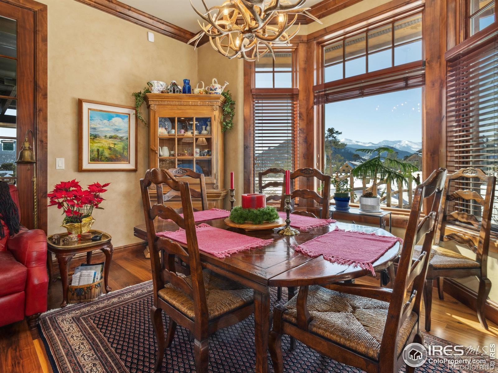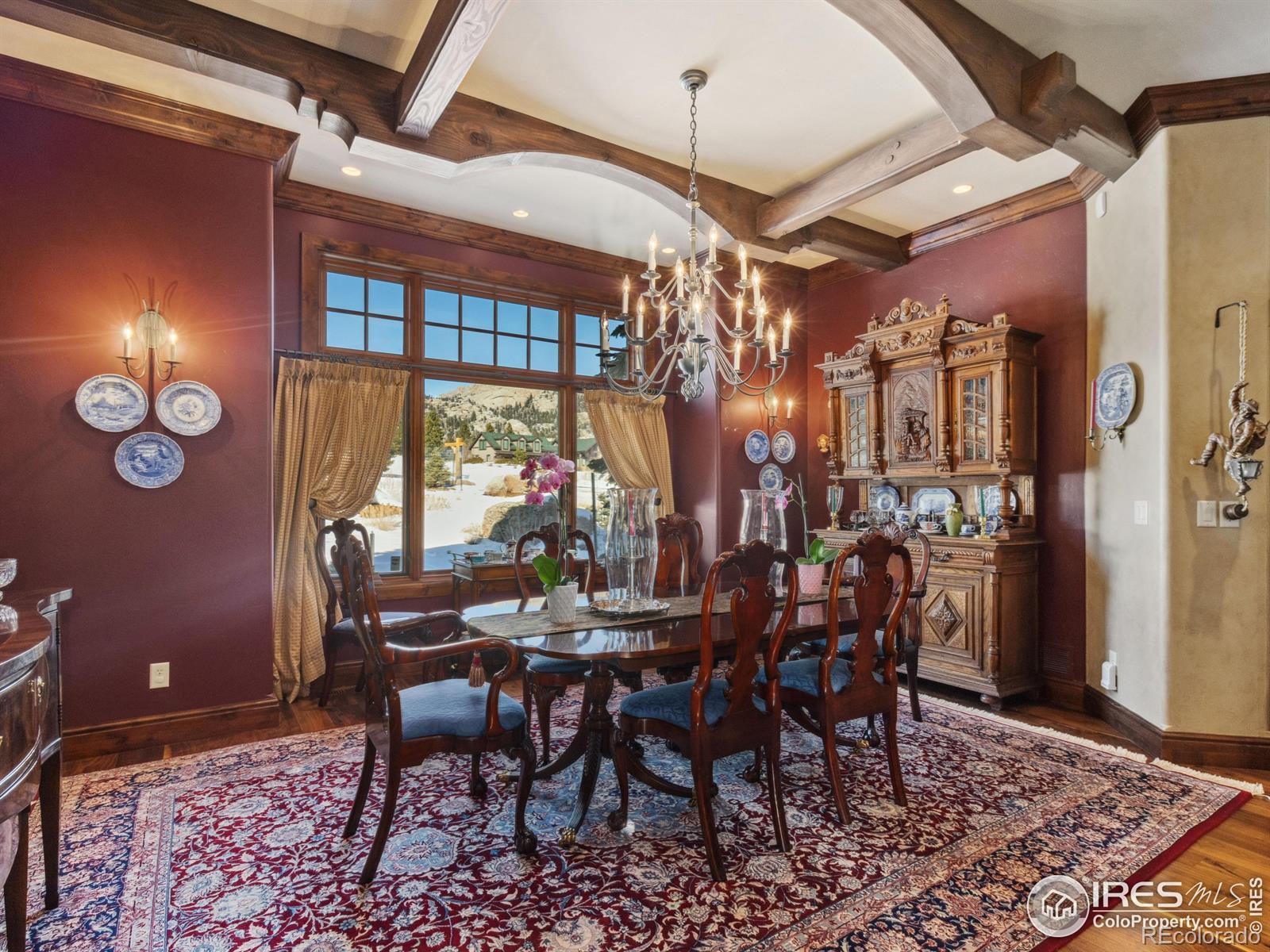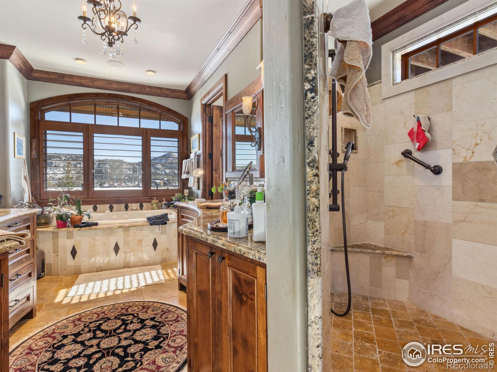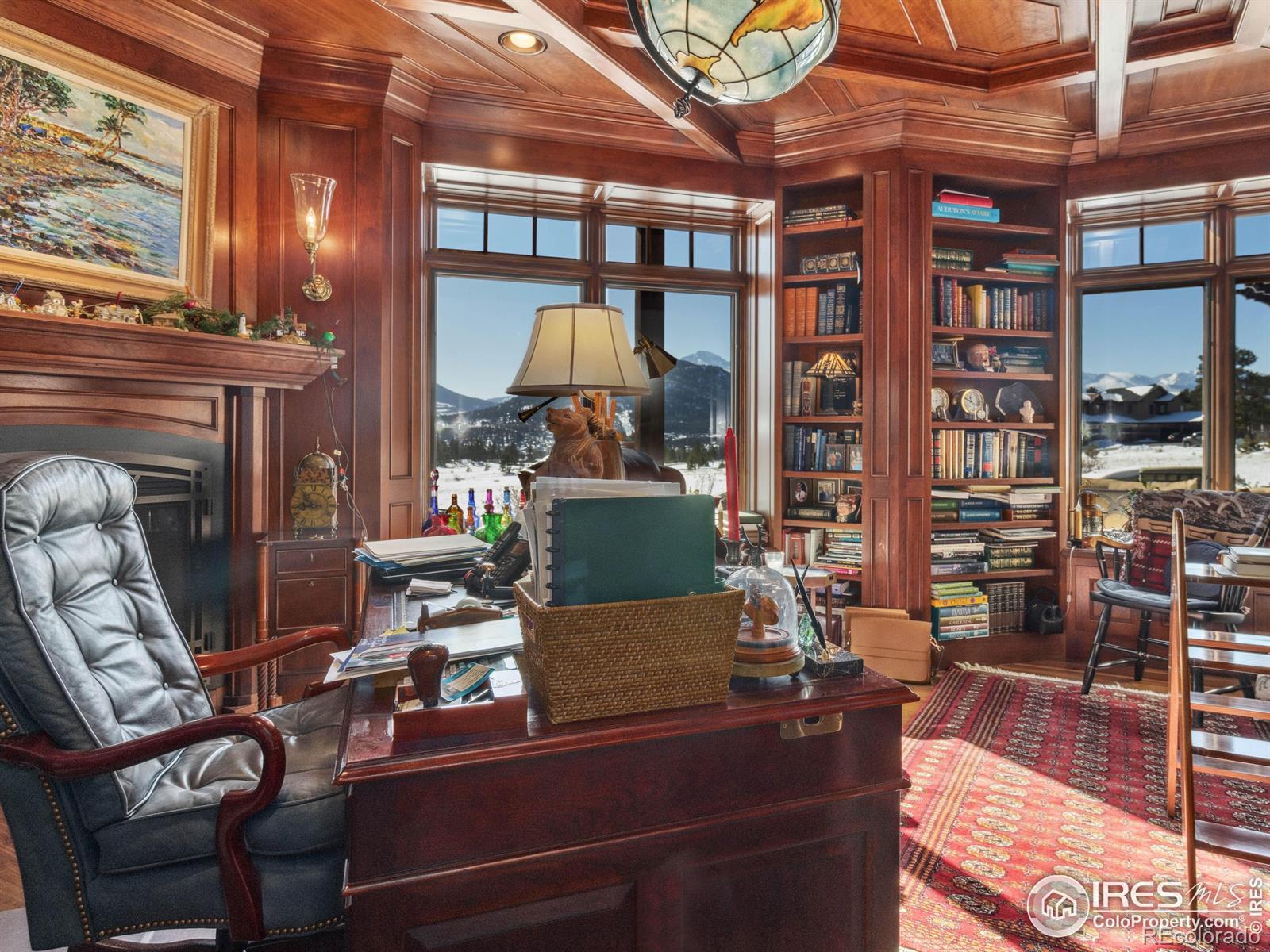 Welcome to a home of exceptional craftsmanship and timeless beauty, where luxury meets artistic design. As you drive up to the grand entrance, you're greeted by a peaceful fountain that hints at the elegance within. The grand entrance is framed by custom wood doors and elegant arches, inviting you into a foyer where high vaulted ceilings and large beams immediately draw your eyes upward, creating a sense of awe. The space is filled with natural light, accented by rich walnut flooring and intricate knotty alder woodwork, setting the stage for the luxurious experience ahead. Custom-built with European influence, the home offers panoramic views in every direction. Floor-to-ceiling windows flood the living areas with light, seamlessly blending indoor elegance with the natural beauty outside. Subtle fleur-de-lis accents add artistic charm, enhancing the home's timeless design. Five fireplaces scattered across the home add warmth and ambiance, while an integrated sound system enhances the experience, making every room feel inviting and refined. The gourmet kitchen is a chef's paradise, complete with a cozy nook where you can dine by the fireplace while enjoying breathtaking views. The primary suite offers a lavish retreat with its own gas fireplace and a luxurious bath featuring a spacious walk-in shower, heated floors, and generous bath counters for two. Every detail is designed to create a private and indulgent escape. Outdoors, relax under the prominent pergola, enjoy the outdoor kitchen, and listen to the soothing sounds of the fountain and cascading waterfall. Wrought iron fencing and mountain-style landscaping provide privacy and natural beauty. A separate, private space off the garage offers space for hobbies or entertainment. This home is the perfect blend of luxury, comfort, and artistic flair, surrounded by nature's finest views.
