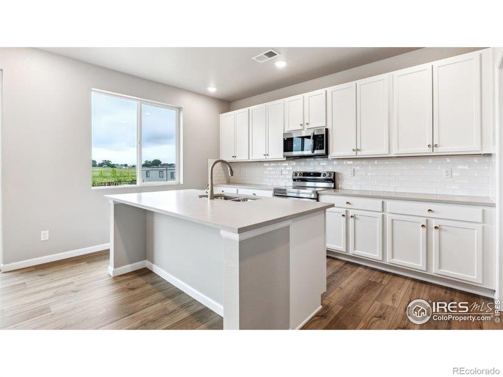 This home is eligible for a below-market fixed interest rate through Landsea Homes' preferred lender, available for a limited time. Terms and conditions apply, contact the onsite sales associate for more information! Welcome to Mead, where city and country life come together beautifully. This Beautiful 2 story home has an open floor plan with a remarkable kitchen featuring white cabinets, quartz countertops, stainless electric range, microwave, and dishwasher. A large island accommodates friends or family and there are plenty of cabinets plus a walk-in pantry to store everything you need. The primary bedroom is so roomy with lots of natural light, adjoining ensuite has double sinks, water closet and nice-sized shower with bench. The additional bedrooms also have great light and are close to the hall bath, laundry room with folding counter and loft area which is ideal for an office/tv area or game room. Large 3 car garage with a 24ft deep bay can accommodate those larger vehicles, garage door opener, a/c and whole house air purifier are also included. Highlands Preserve has easy access to I25 and Hwy 66 and is a convenient gateway to Rocky Mountain Nat'l Park. This a High-Performance Home which means it's designed to respect the planet with money-saving innovation to stay healthier and more comfortable, along with home automation technology so it's easier to take on every day. Schedule an appointment to see your future home at Highlands Preserve today!