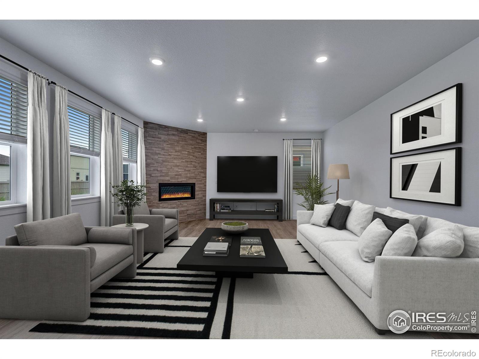 The Branson is a beautifully designed 3,187 sq. ft. home that perfectly blends elegance, comfort, and modern convenience, including all the extras such as the KitchenAid French Door Refrigerator, front loading washer and dryer with pedestals, blinds throughout, and backyard landscape! Featuring four spacious bedrooms, 2.5 bathrooms, and a three-car wide garage, this home offers plenty of space for entertaining. Upon entering, you'll be welcomed by an inviting open floor plan with luxury plank vinyl flooring throughout the main level. The gas fireplace serves as a stunning focal point in the living area, creating a warm and cozy atmosphere. The gourmet kitchen is a chef's dream, boasting white cabinetry, quartz countertops, double ovens, a gas cooktop, and high-end KitchenAid stainless steel appliances. One of the standout features of the Branson is its absolutely massive bonus room upstairs, offering endless possibilities-whether you envision a media room, playroom, home gym, or office space. The Vantage neighborhood includes a unique set of features and amenities such as TPC Colorado privileges including use of their world-class Fitness Center, Resort Style Pool with swim-up bar and hot tub, and restaurants. Use of Vantage Pool, Splashpad, Grilling Area, Playground and 2 Dog Parks in the 5-acre, on-site complex are also all included in the annual HOA. ***Photos are representative and not of actual property***