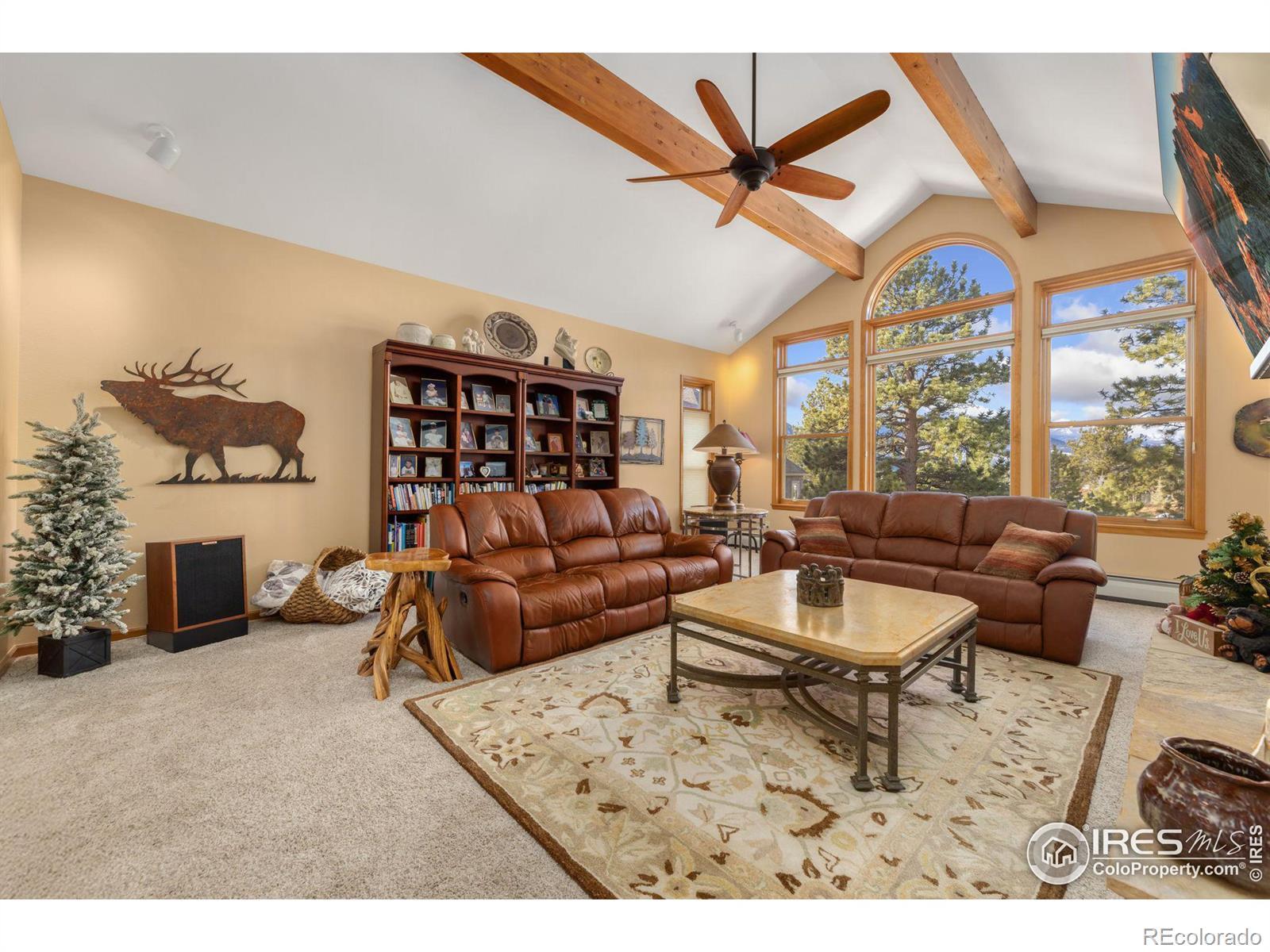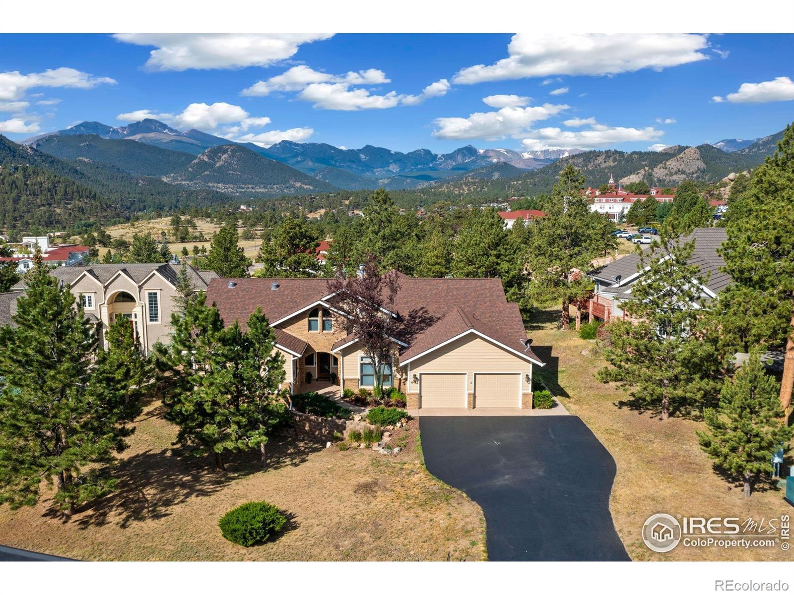 Welcome to 641 Findley Court, a custom-built residence in the prestigious Stanley Historic District of Estes Park, Colorado. This home captures panoramic snow-capped mountain views from nearly every room. The expansive outdoor deck is an entertainer's dream, providing the ideal space for dining, relaxing, and enjoying the beauty of Colorado's Rocky Mountains. Step inside to find a spacious and elegant layout, featuring three inviting living areas, a dedicated office, and a private gym. The gourmet kitchen is a chef's dream, complete with an oversized kitchen island with a breakfast bar, two stovetops, two ovens, custom cabinetry, and expansive counter space - perfect for hosting and everyday living. The lower level serves as the ultimate entertainment and relaxation hub, featuring a large recreation room with a pool table, a private in-home gym, and an indoor hot tub to enjoy after a hard workout. An additional bedroom on this level include a guest suite with a private bathroom and walk-in closet. Head up to the upper level, where a cozy family room, additional bedroom, and full bathroom provide the ideal space for guests or extended stays. The property's exterior is equally impressive, featuring upgraded landscaping with several blue spruce, aspen, and maple trees. Recent enhancements include the installation of fifteen high-efficiency solar panels in June 2022, reducing the home's electricity consumption to net zero dependence, and a new roof and hot water heater added in 2023. Enjoy year-round outdoor adventures with nearby trails around Lake Estes and Estes Park's charming downtown just a short drive away. Whether you're seeking a permanent residence or a vacation retreat, this home offers a unique opportunity to experience the best of Colorado living. Don't miss the chance to own this remarkable property that truly has it all.